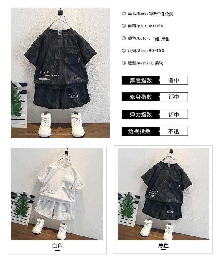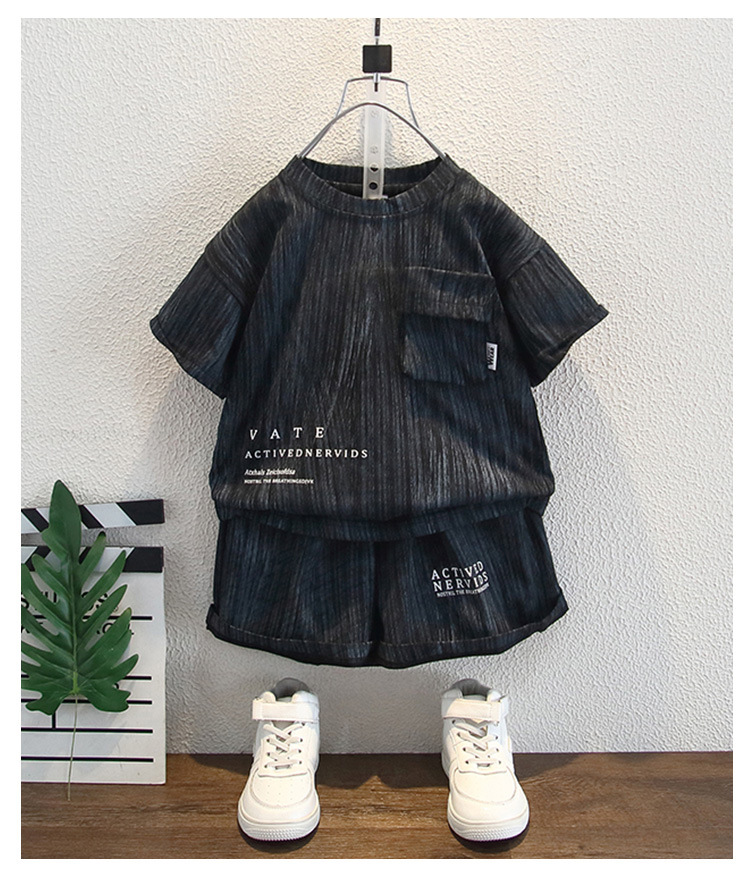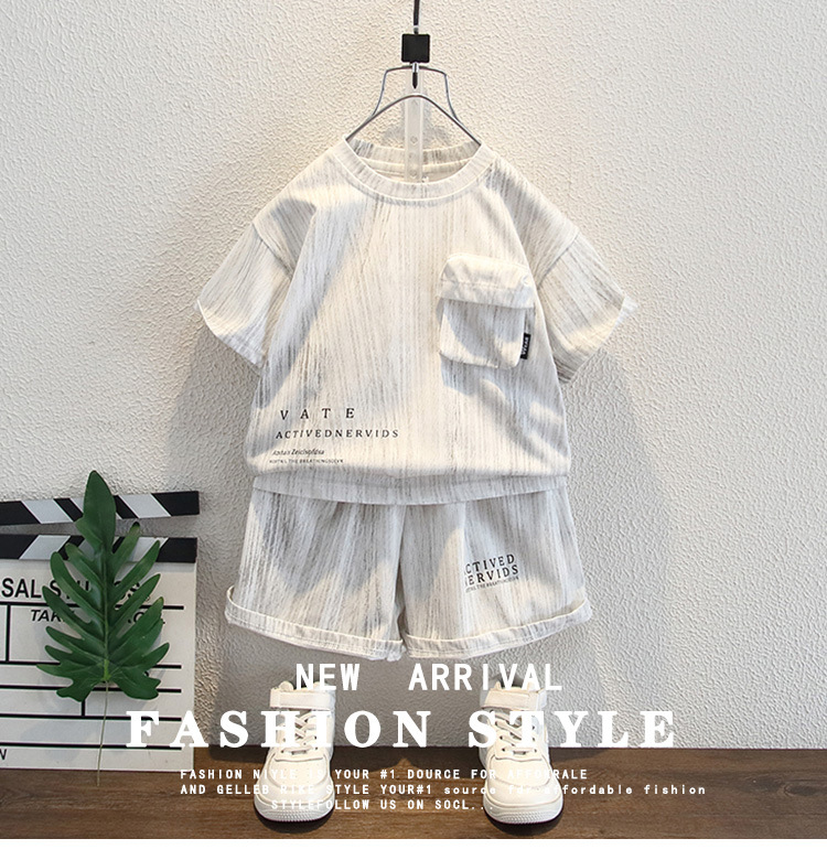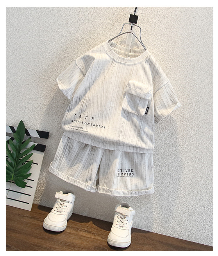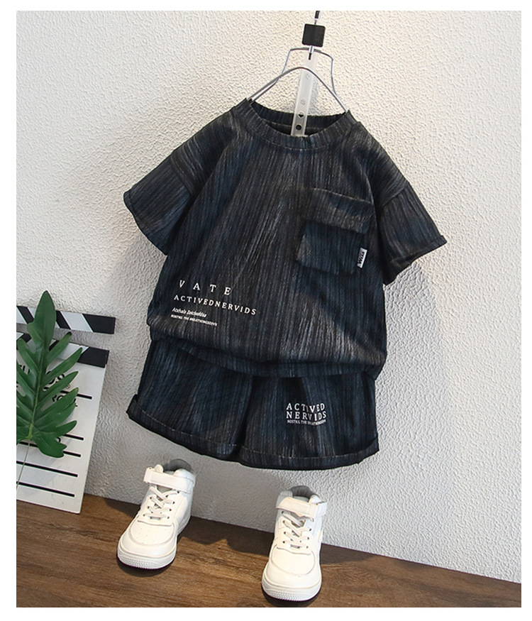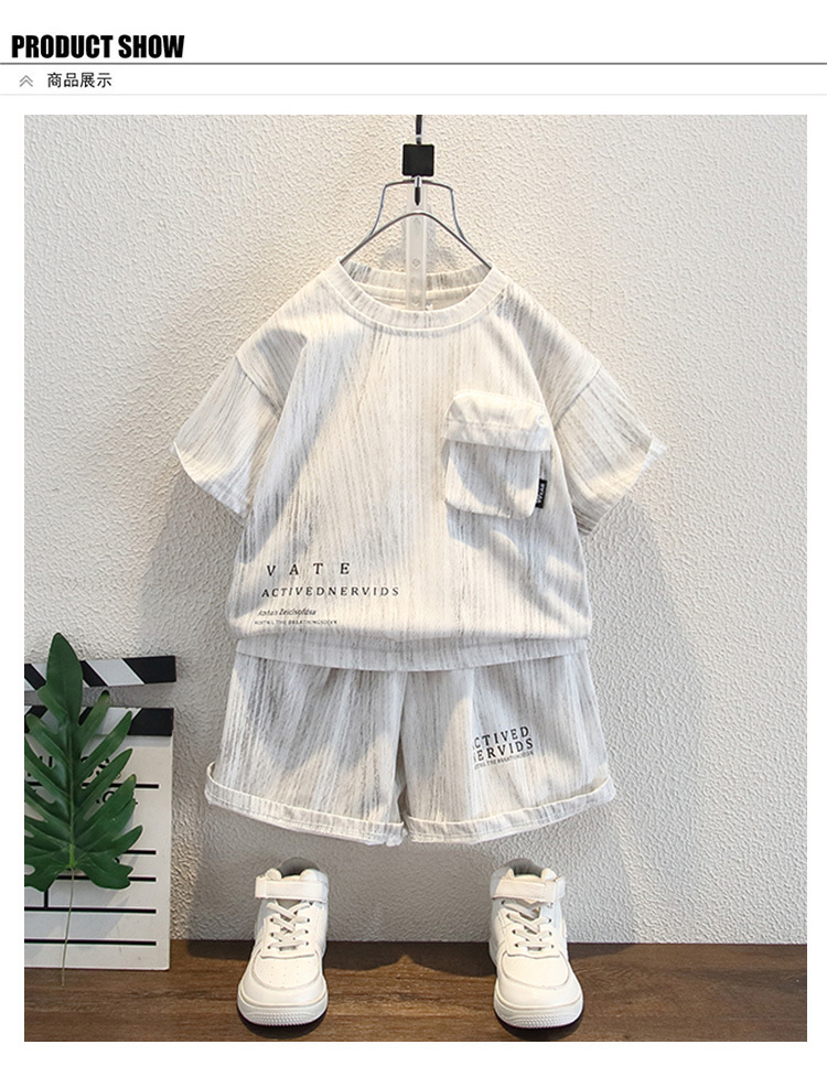 7989 traje de camiseta de manga corta de verano para niños 2025 nuevo traje de dos piezas de verano para niños pequeños y medianos