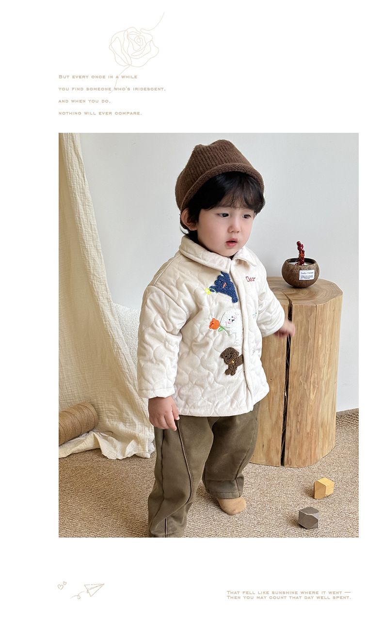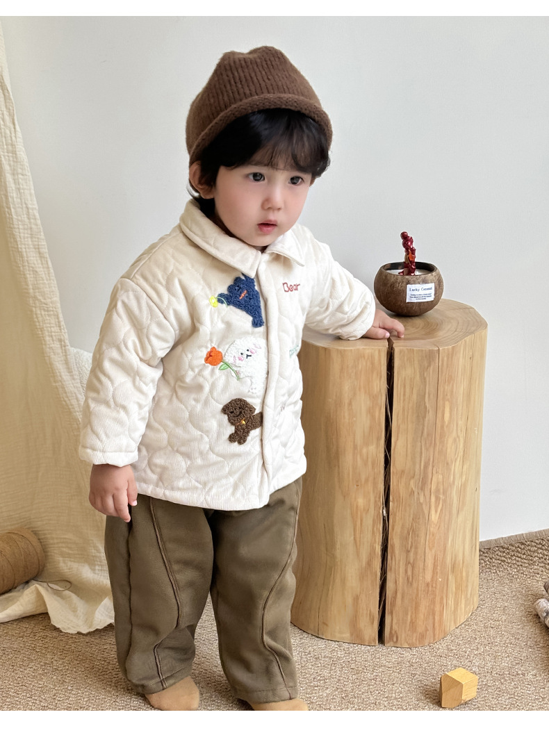 Abrigo cálido engrosado de otoño e invierno para niños Ropa de invierno acolchada linda chaqueta de algodón para bebés más traje de jeans de terciopelo