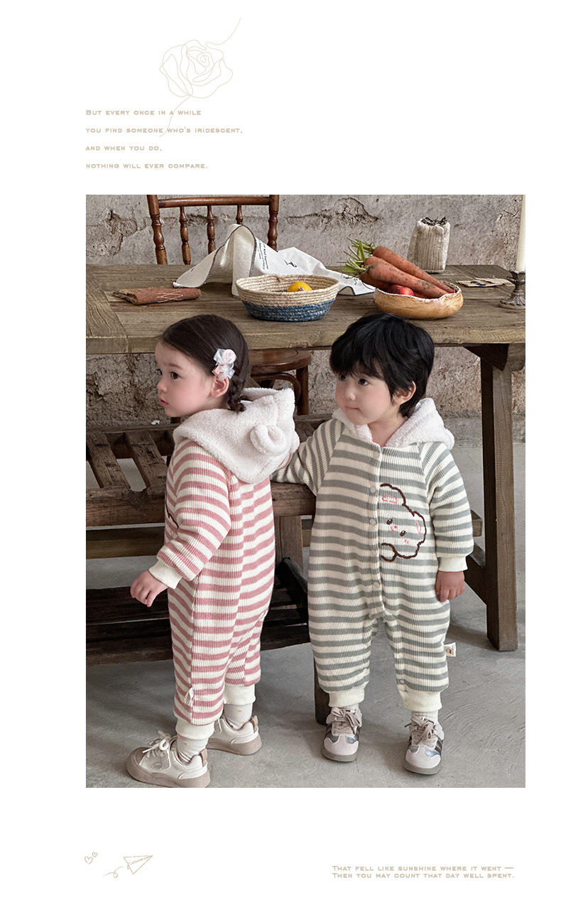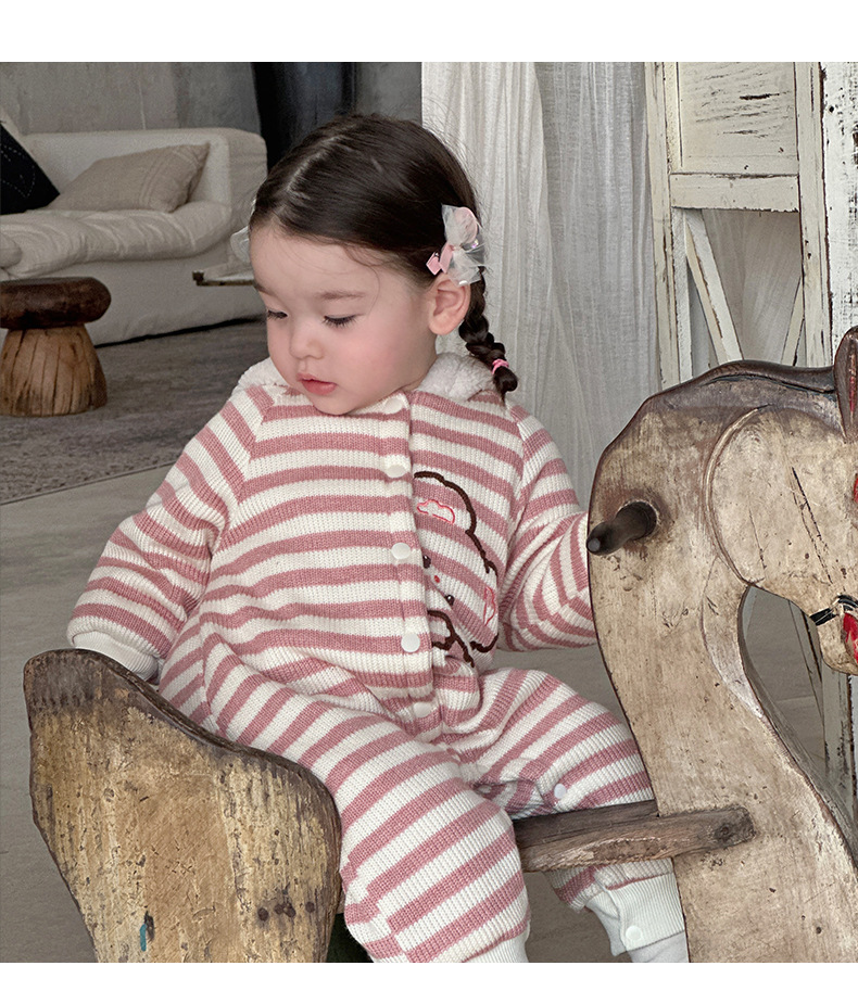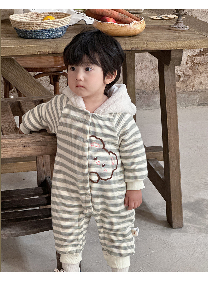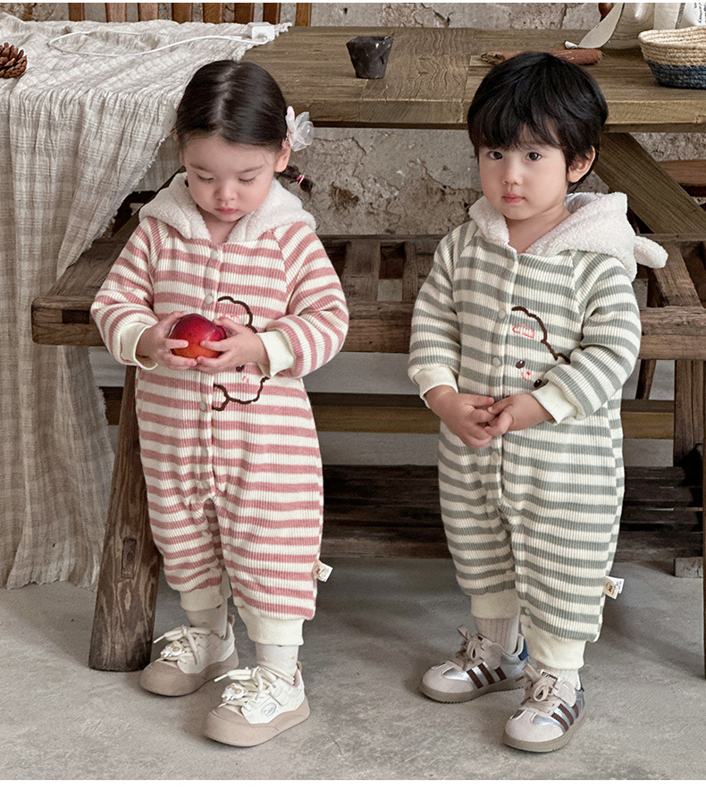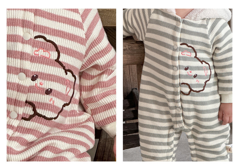 Ropa de bebé otoño e invierno oso a rayas mono clip de bebé escalada de algodón ropa de invierno super lindo y grueso cálido mameluco