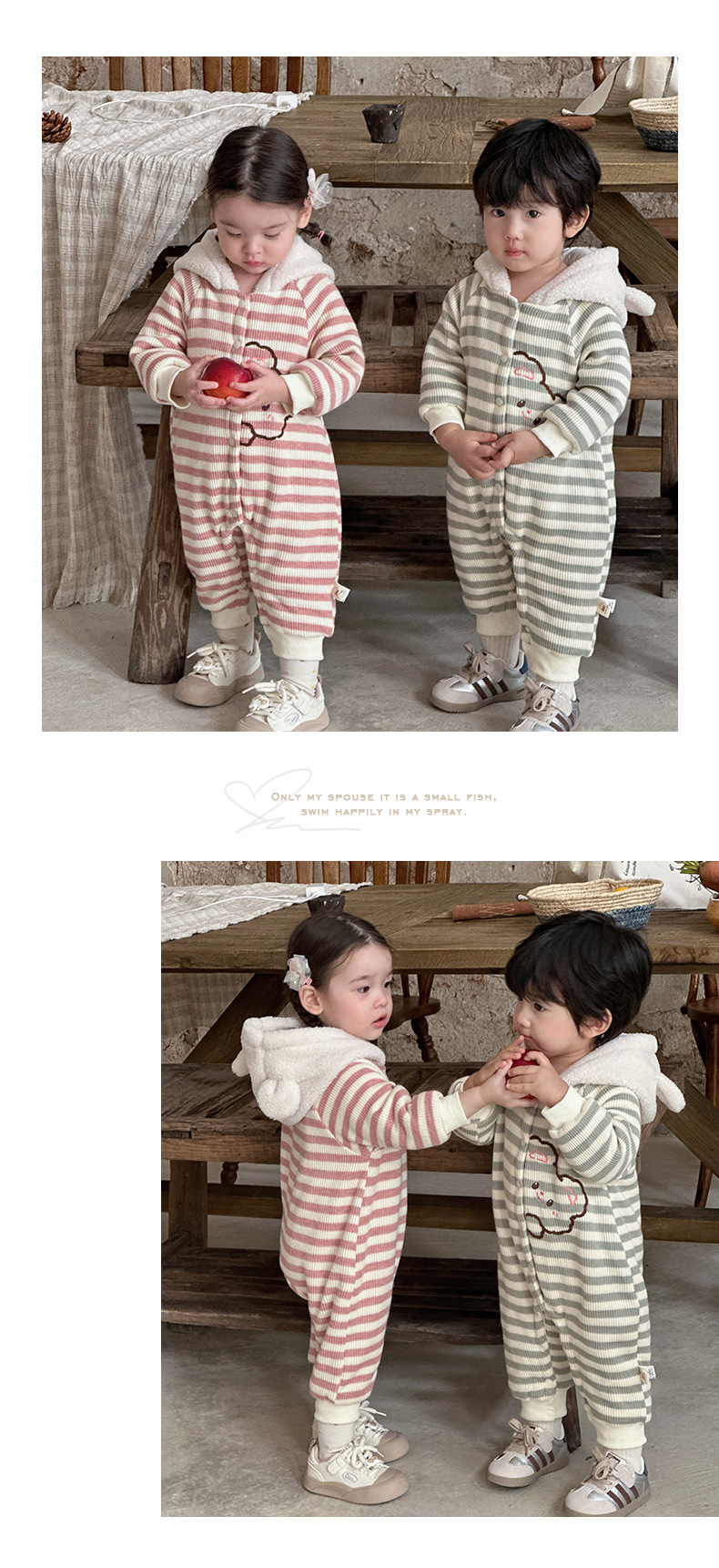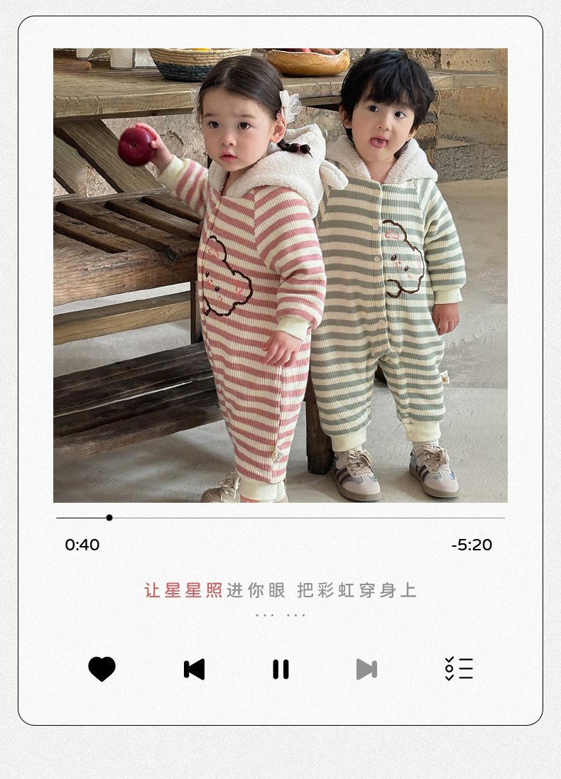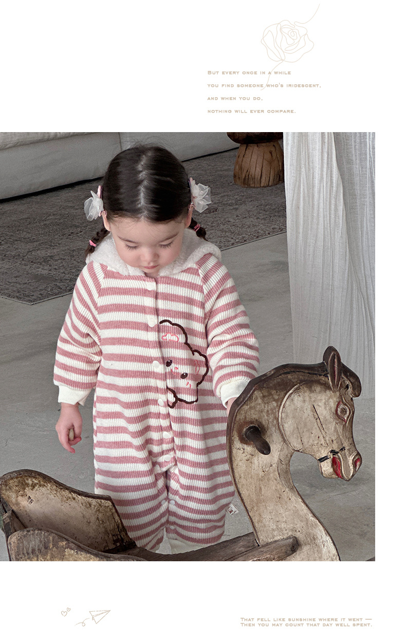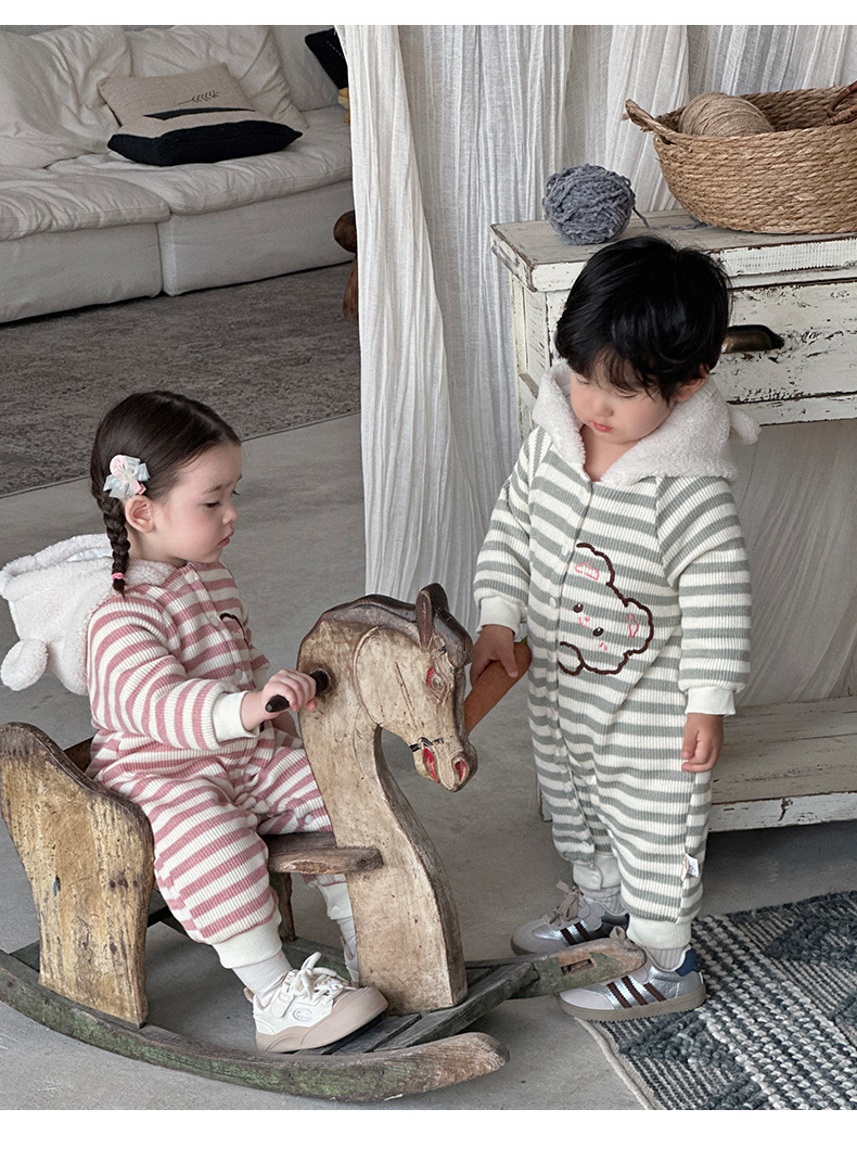 Ropa de bebé otoño e invierno oso a rayas mono clip de bebé escalada de algodón ropa de invierno super lindo y grueso cálido mameluco