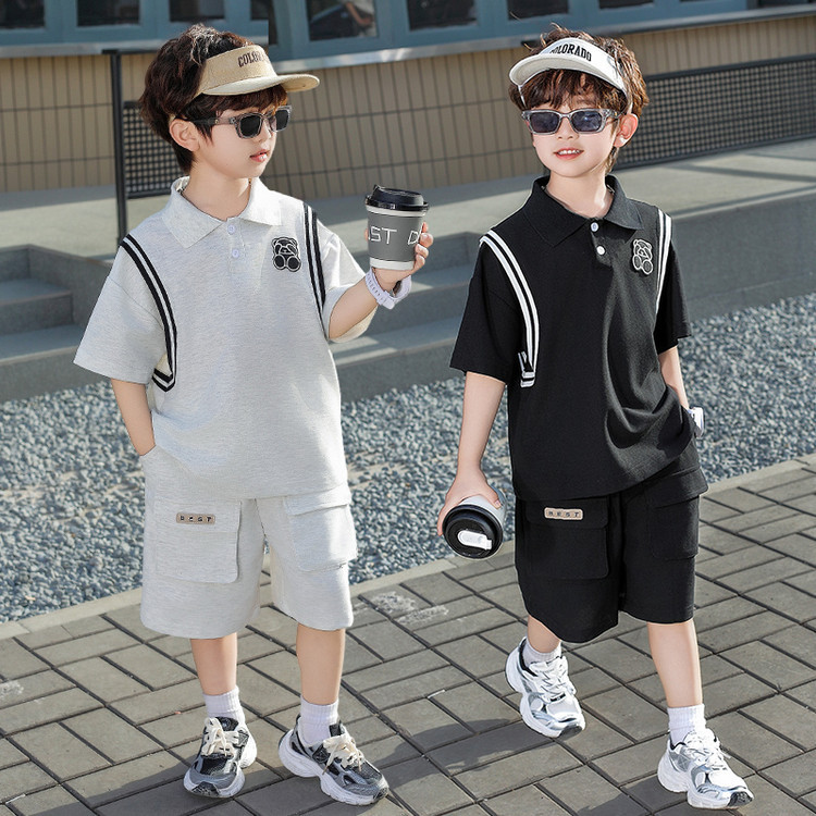 7956 Traje para niños Deportes y ocio Ropa para niños Niños 2025 Nuevo traje de dos piezas de moda coreana de verano para bebés