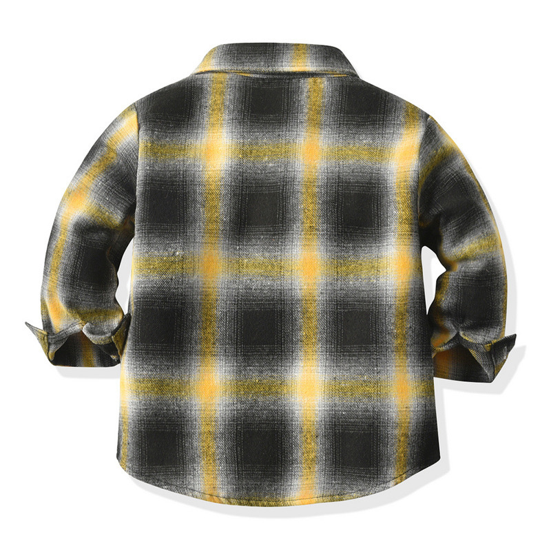Camisas de manga larga para niños de otoño coreano para niños y niñas botón único casual chaqueta de algodón a cuadros al por mayor de ropa infantil transfronteriza