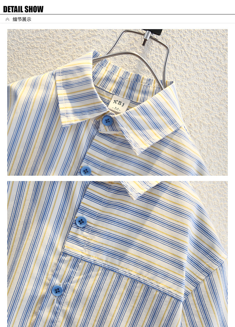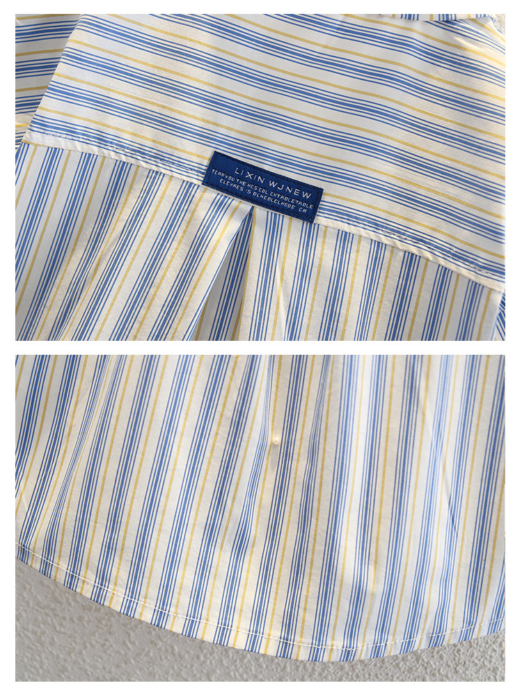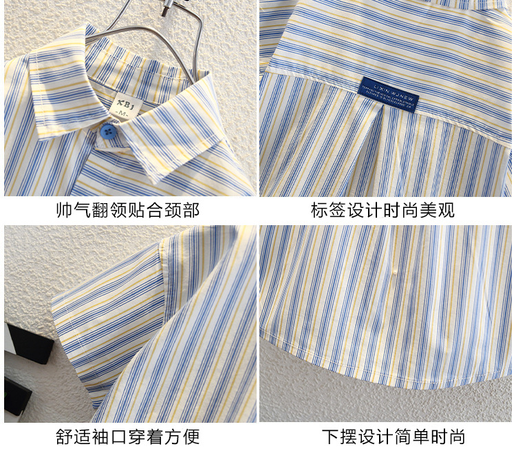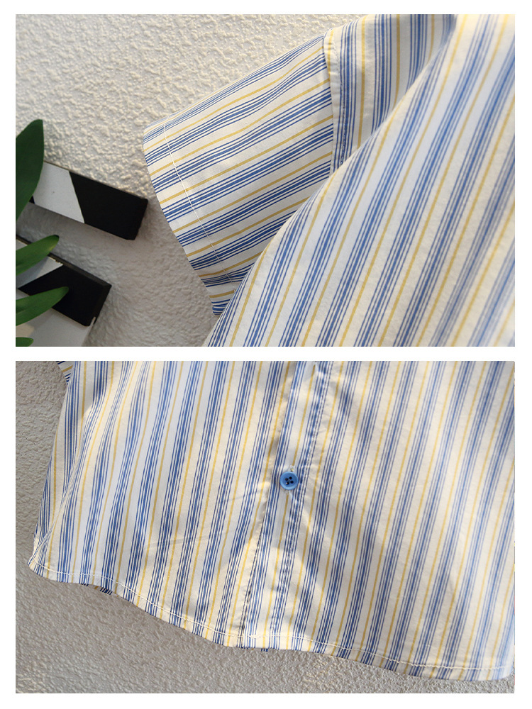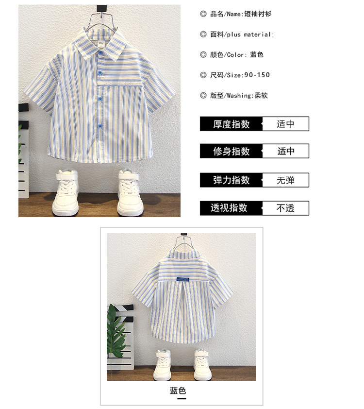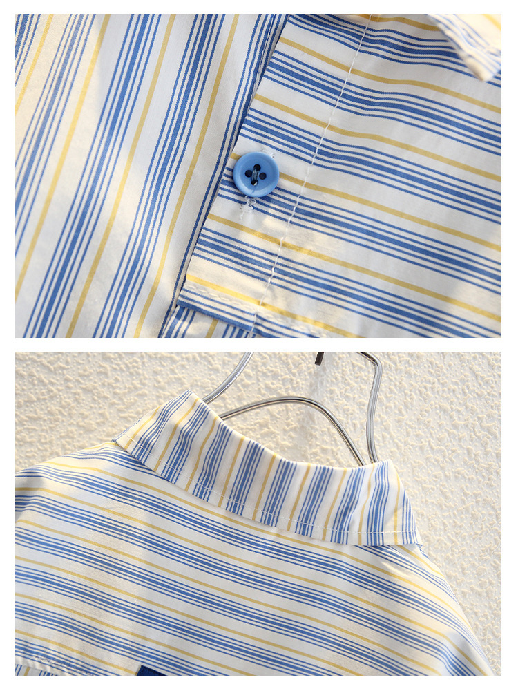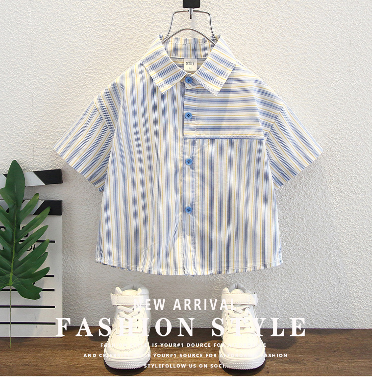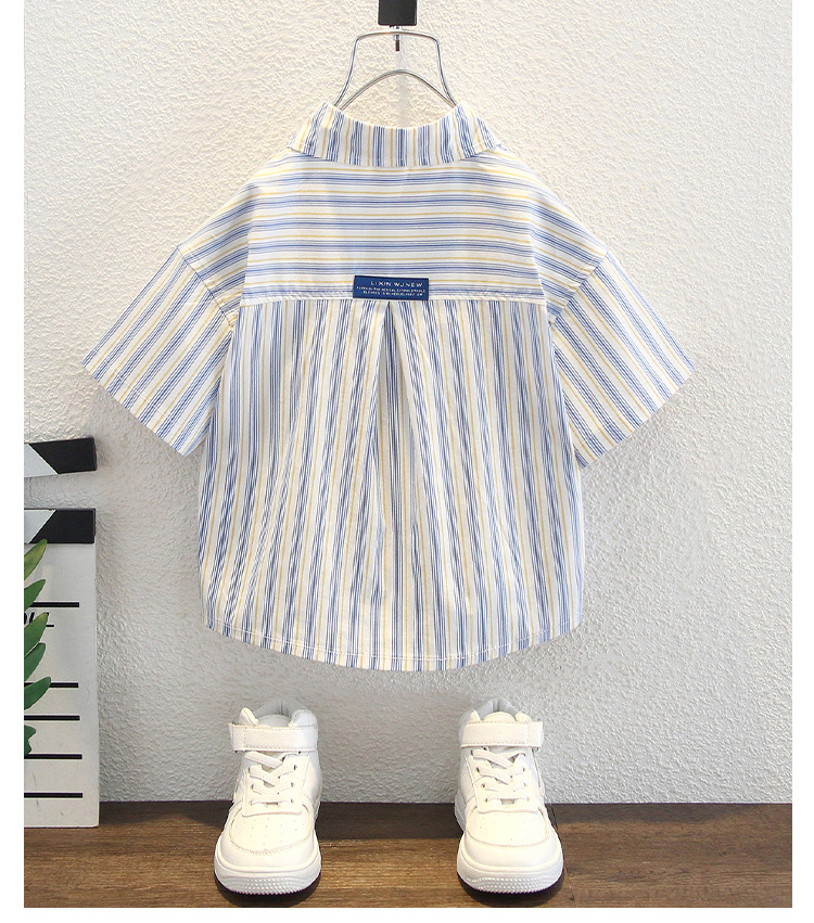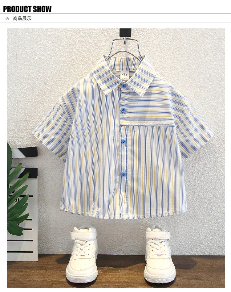7960 Camisa de manga corta para niños de verano, hermosa blusa de solapa a rayas verticales para niños, camisa para niños pequeños y medianos, estilo de moda de verano