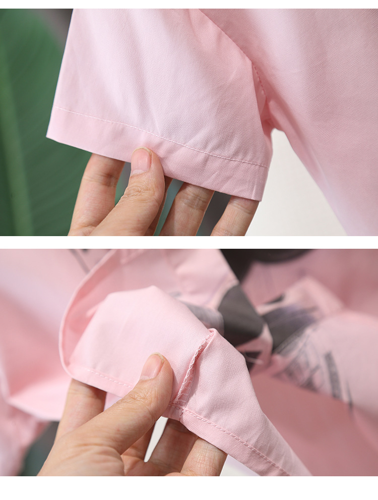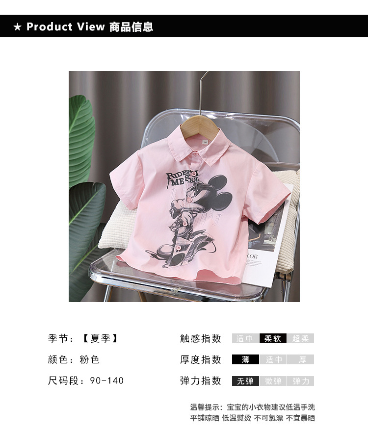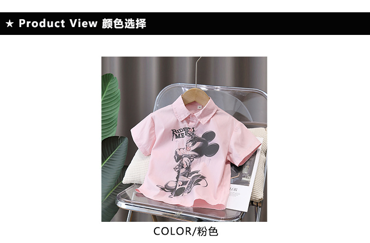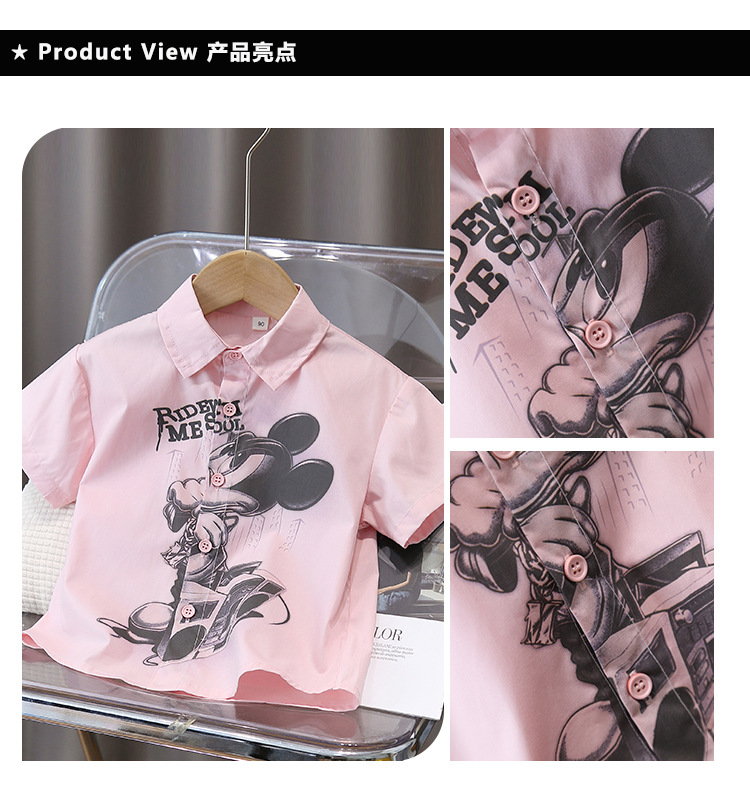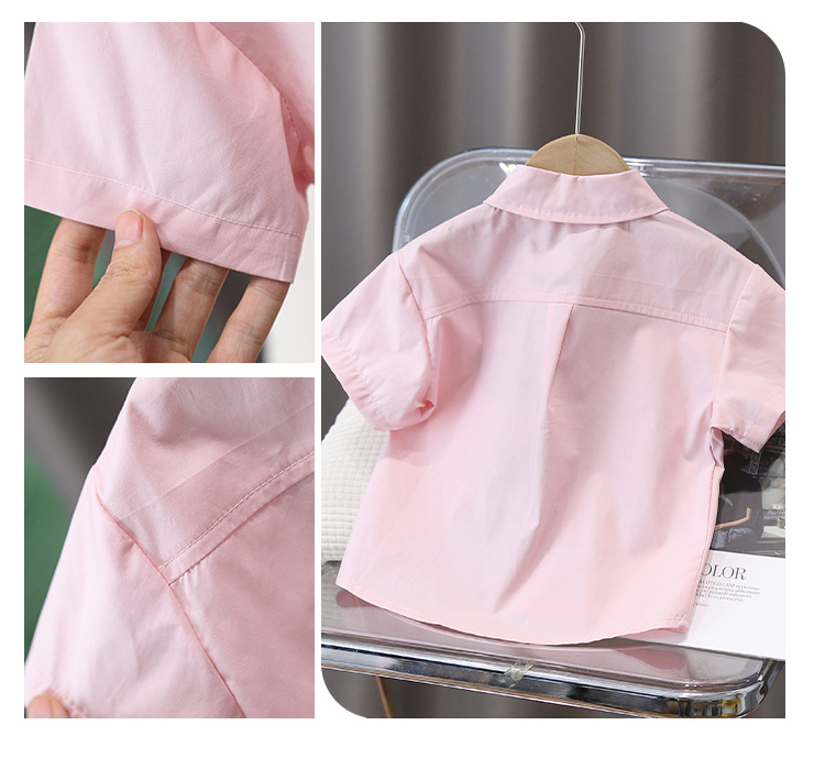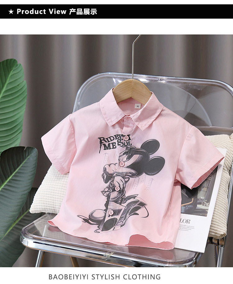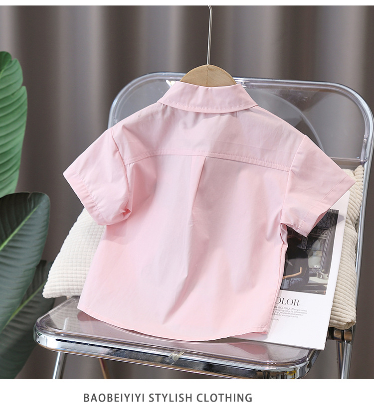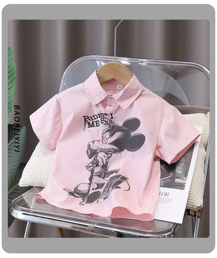 7273 Camisa rosa para niños 2025 nueva camisa de manga corta con estampado coreano para niños de verano