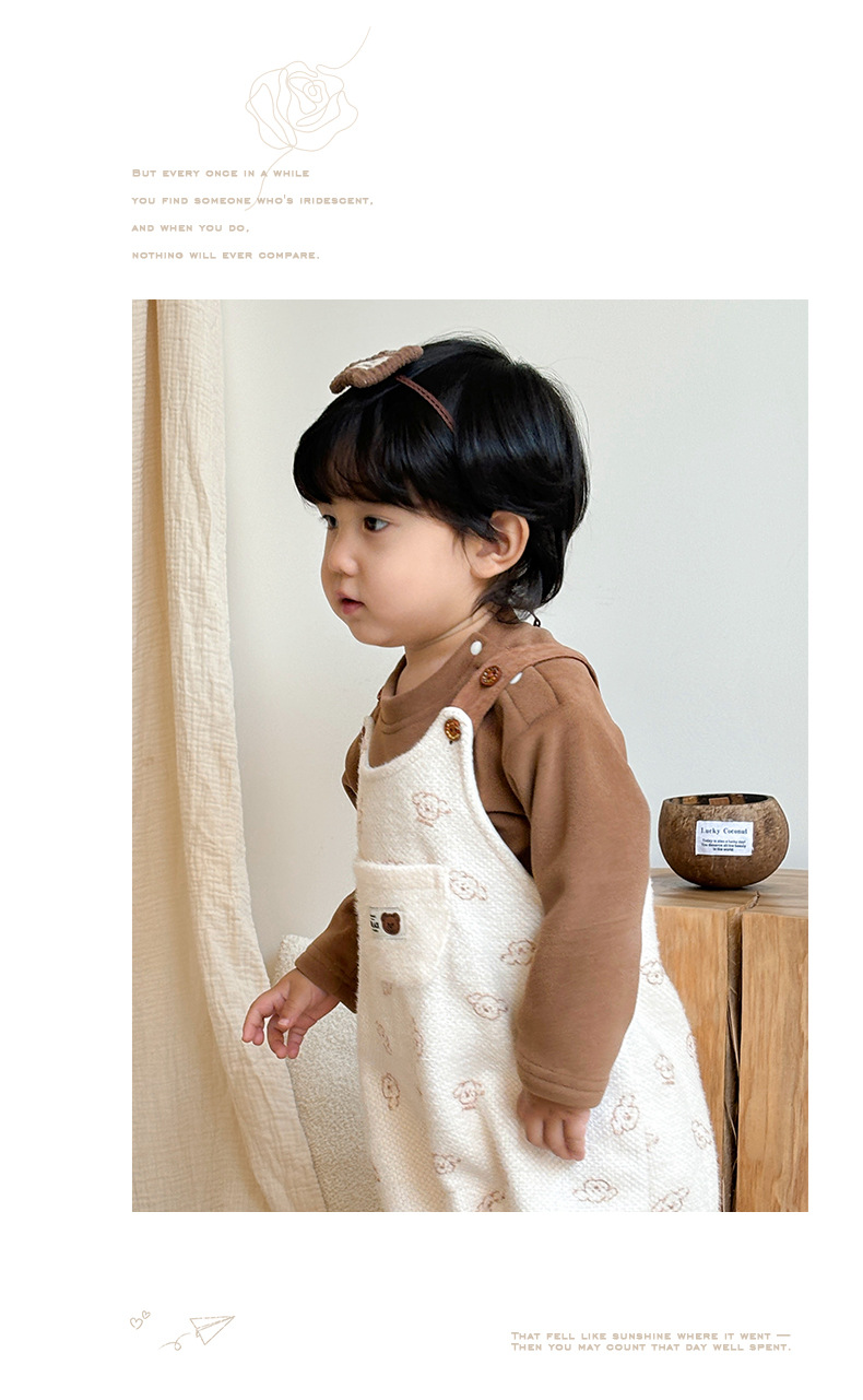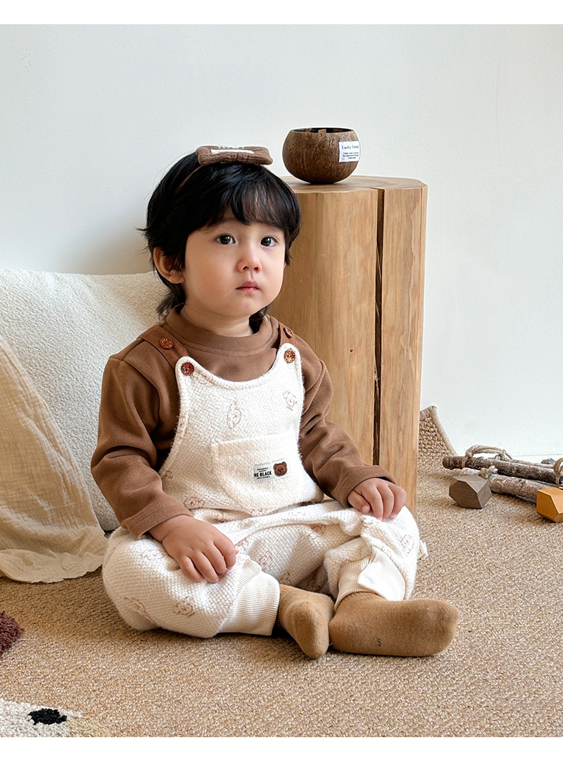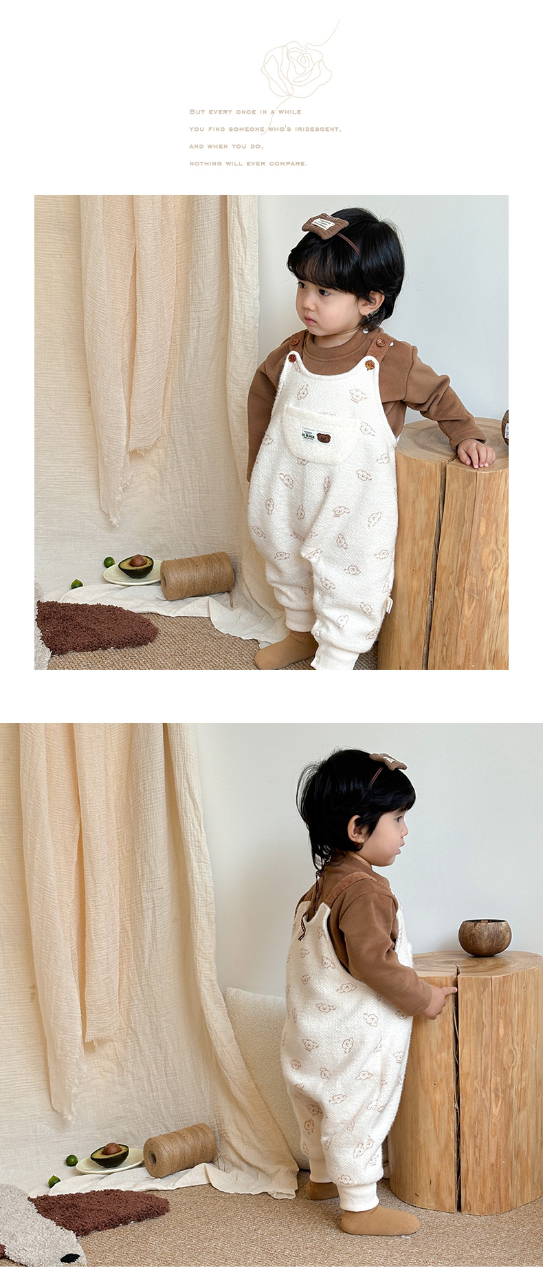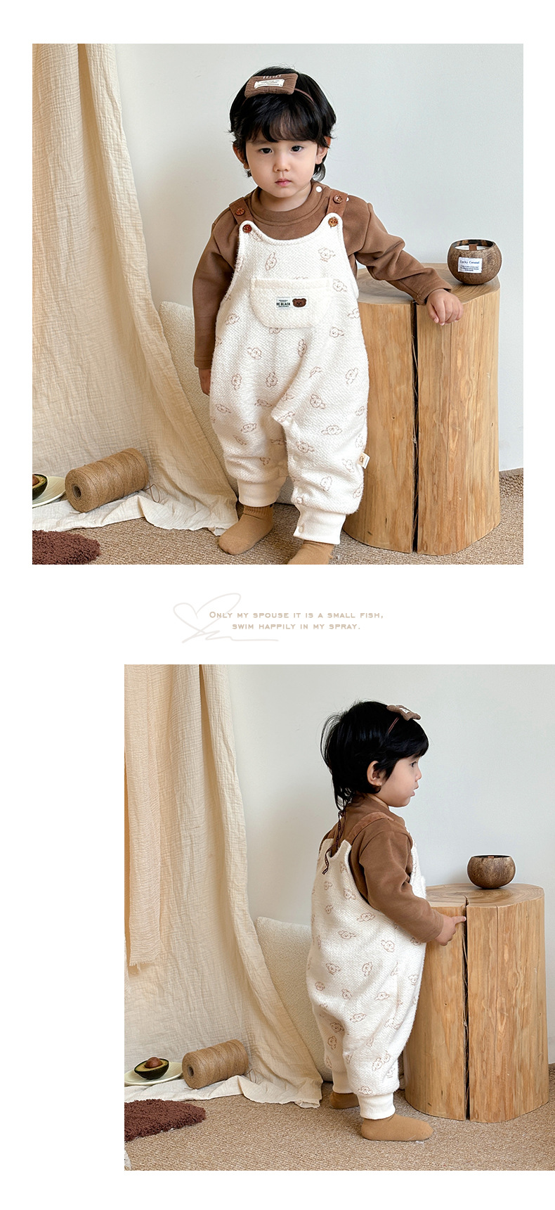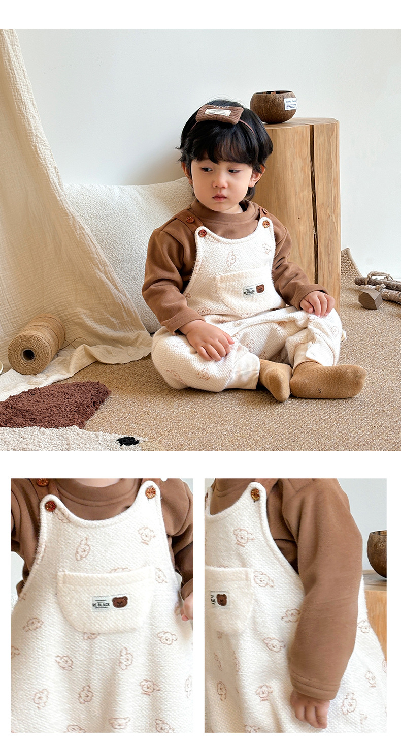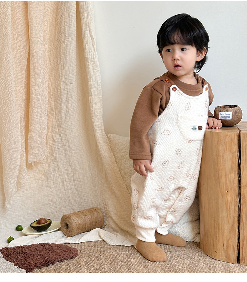 Nuevo traje de otoño e invierno para bebés, vestido con una camisa de fondo de manga larga de dibujos animados de bebé masculino, mono de dos piezas con estampado completo lindo