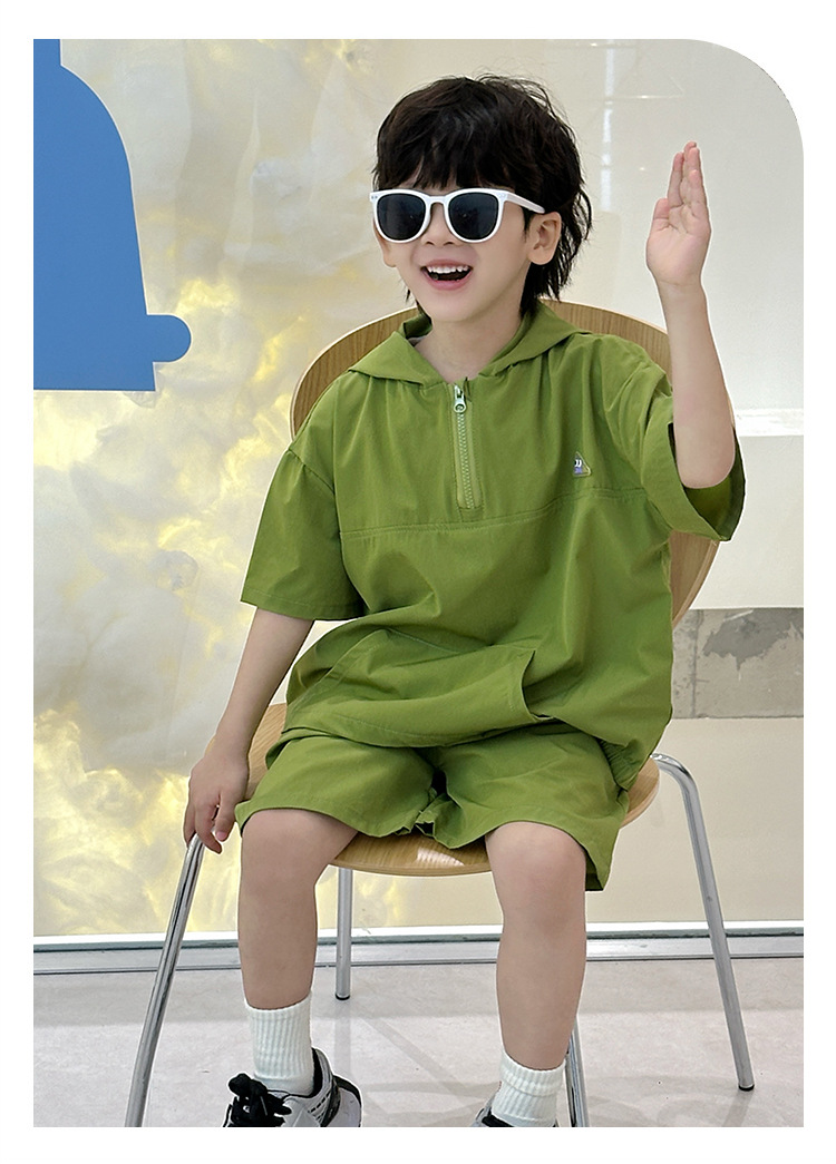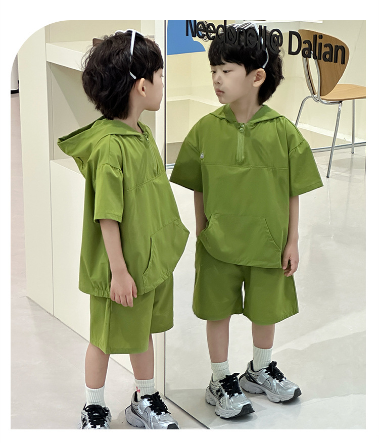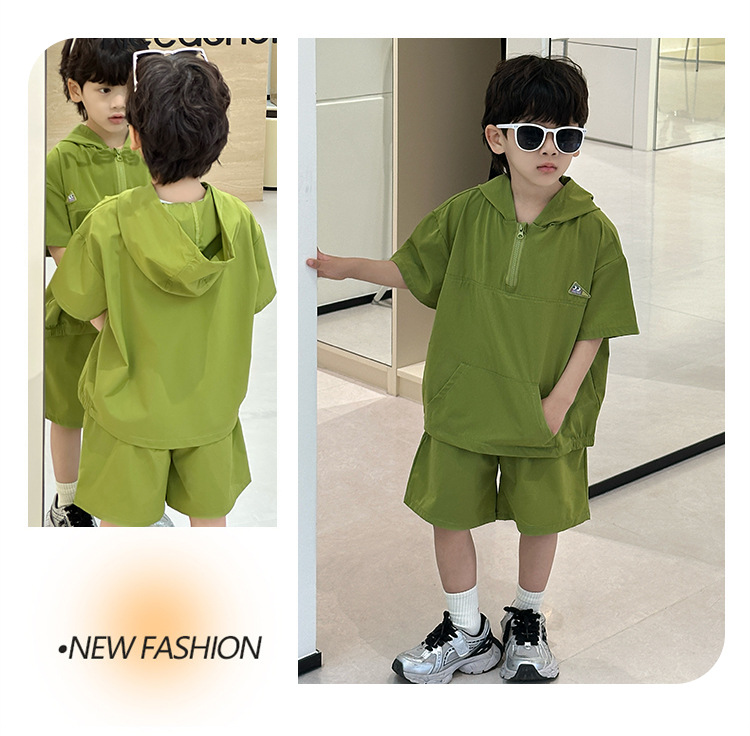 7935 traje de manga corta de verano para niños 2025 nuevo estilo para niños estilo occidental de moda verano delgado traje de dos piezas para niños bebé