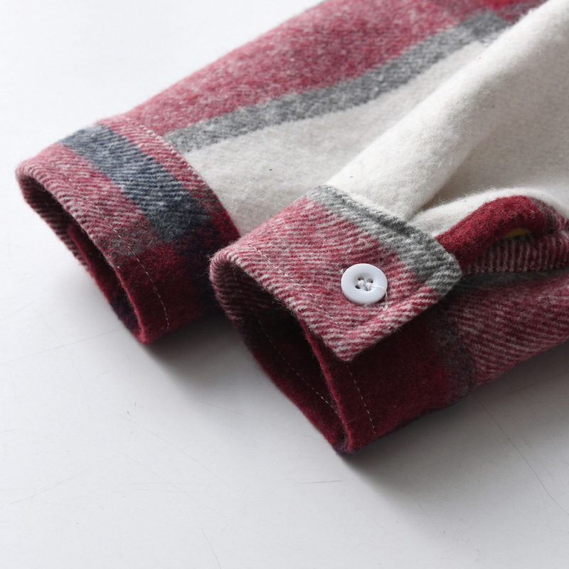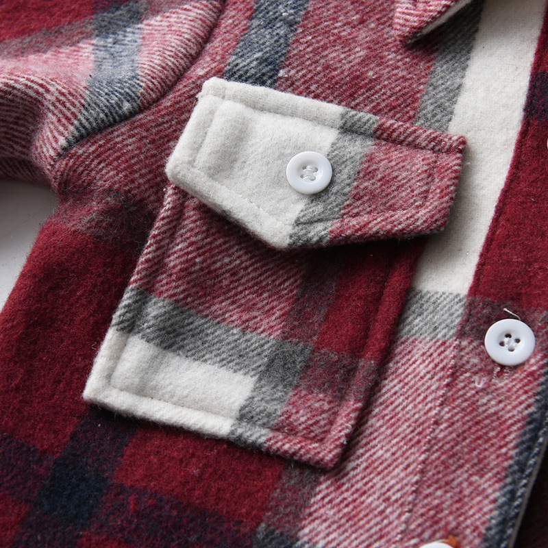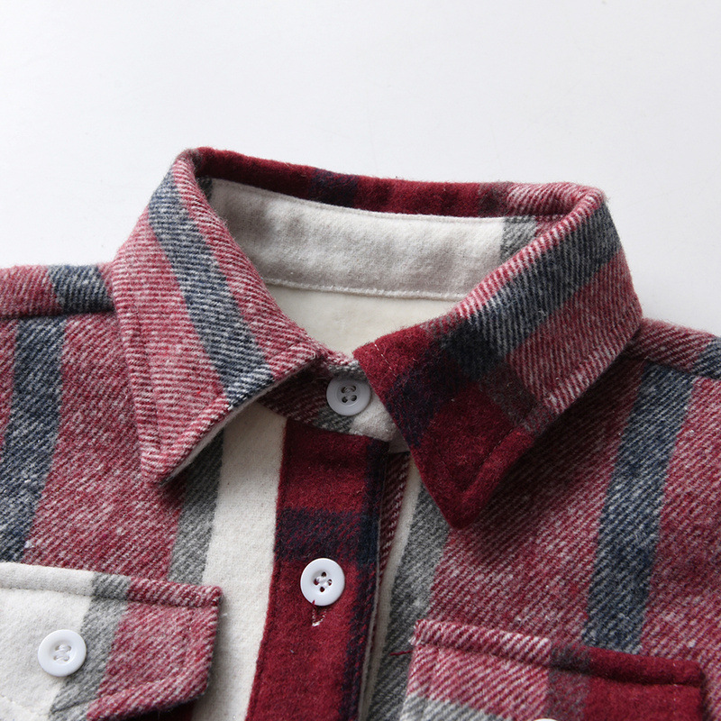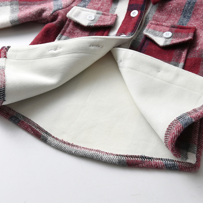 Camisas de celosía europeas y americanas para niños y niñas, botones de una sola fila, solapa de terciopelo gruesa, cardigan de manga larga caliente, moda