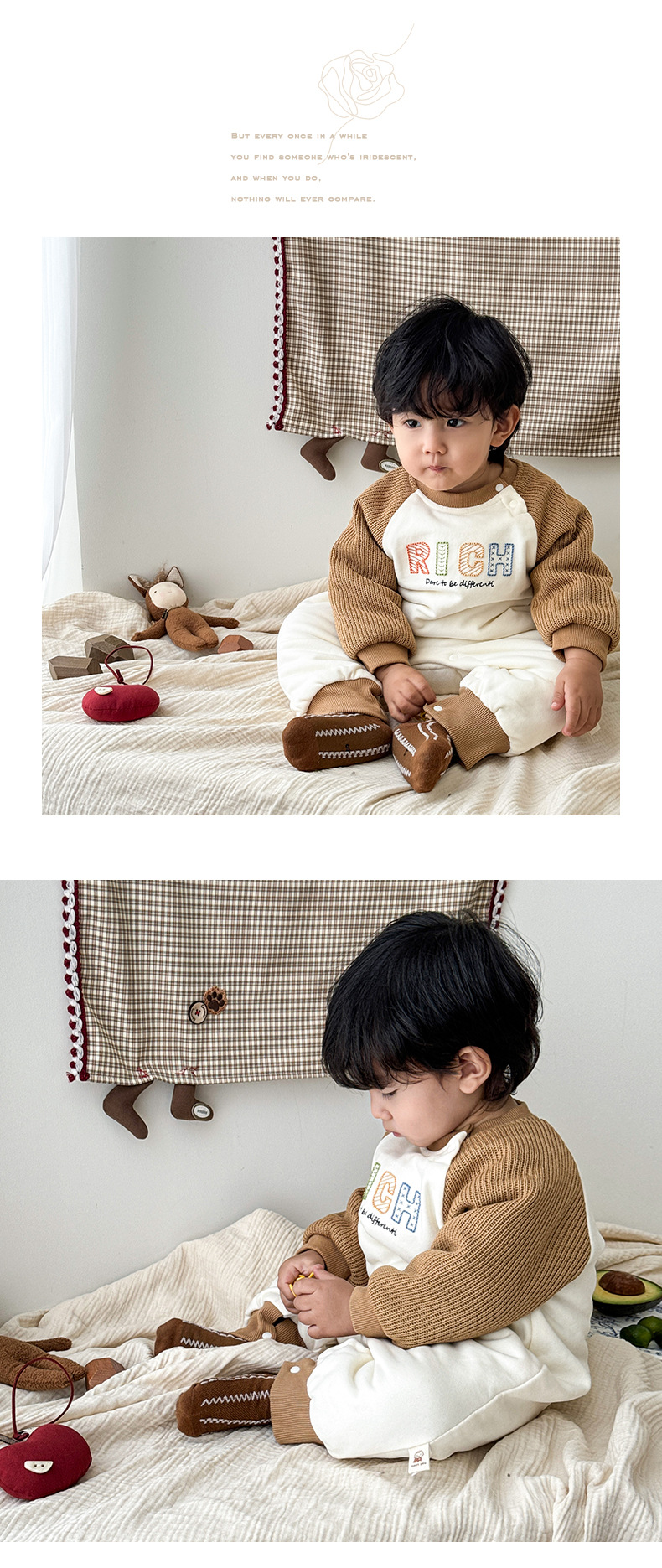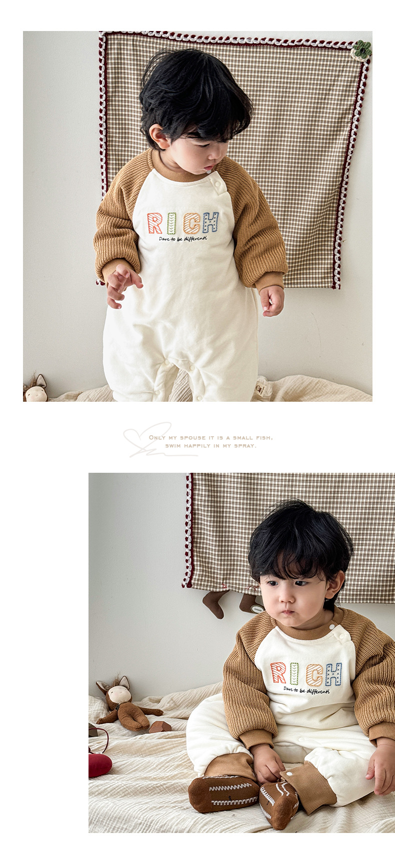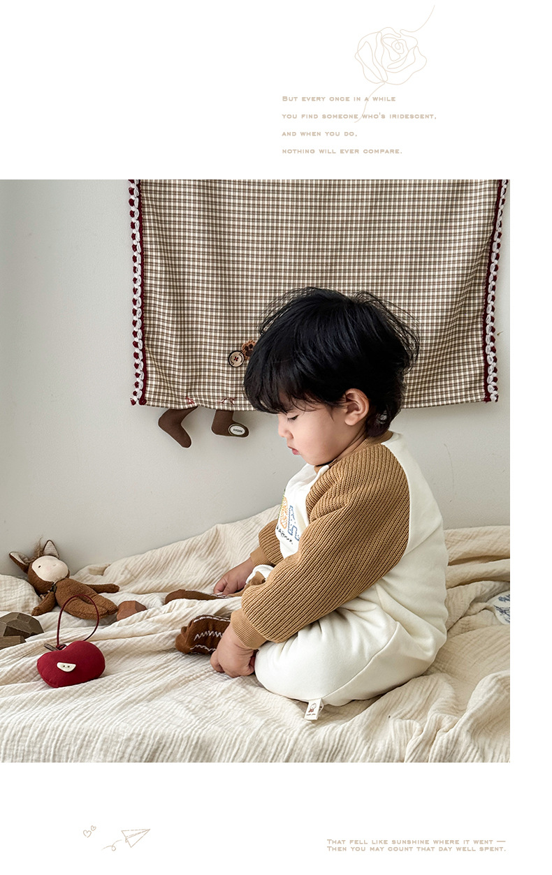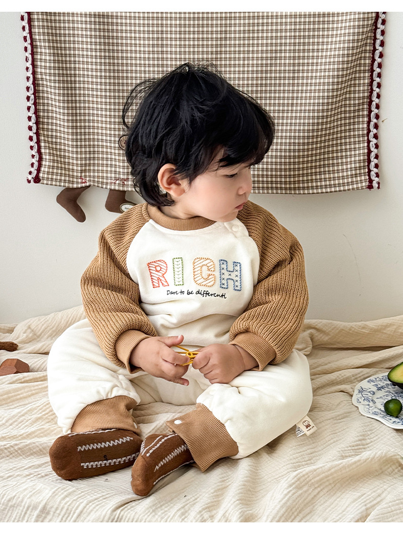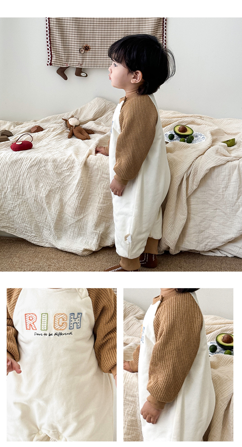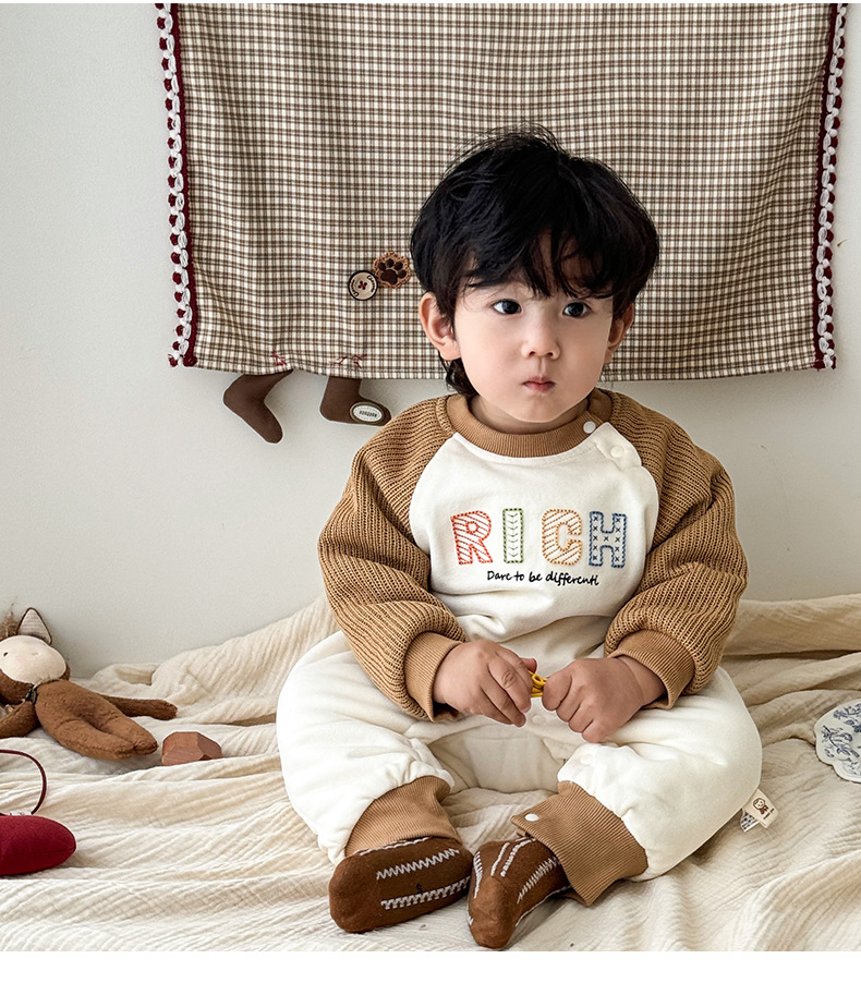 Versión coreana del bebé que sale en otoño e invierno mono recién nacido color de contraste más mameluco de terciopelo-0,2 años de edad bebé traje de escalada de finales de otoño