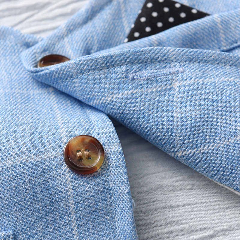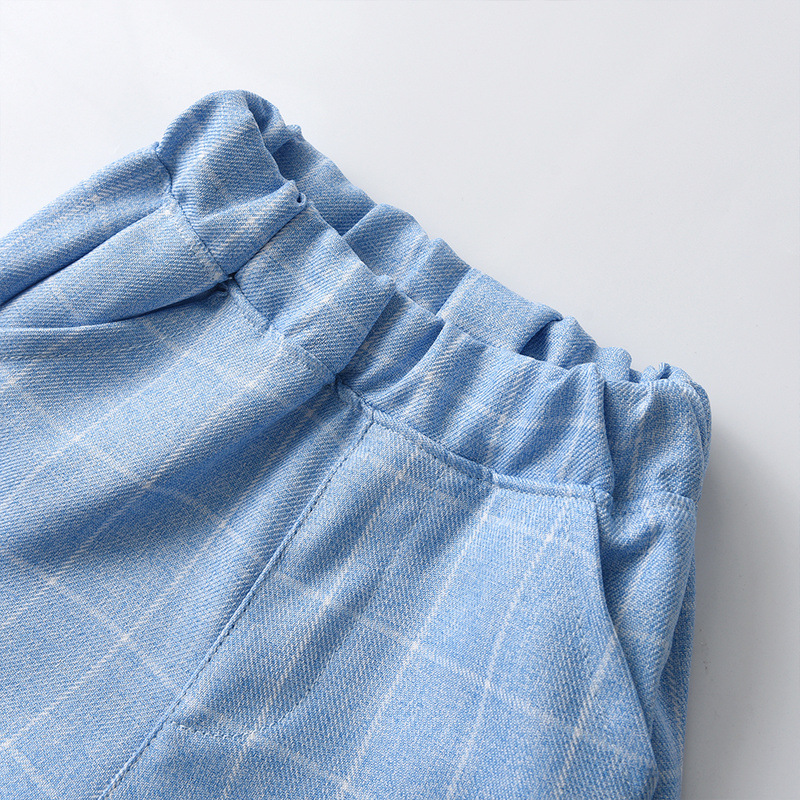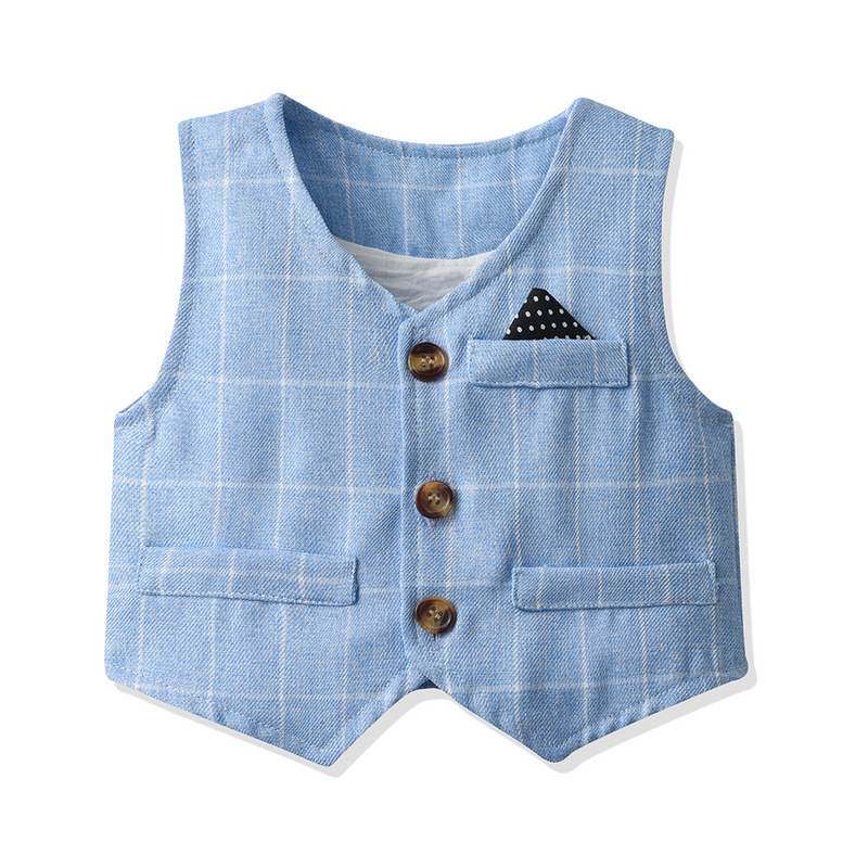 Verano bebés y niños de manga corta arco unido paquete de cadera chaleco de moda a cuadrícula chaleco traje pantalones cortos tres piezas set
