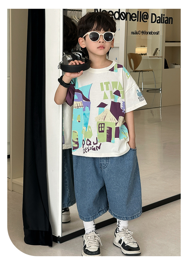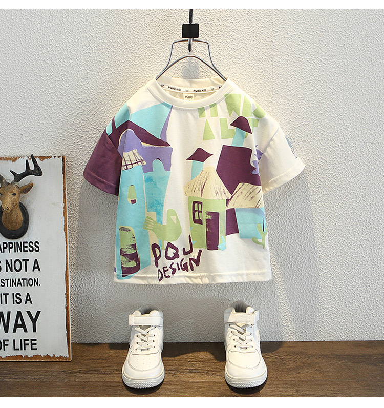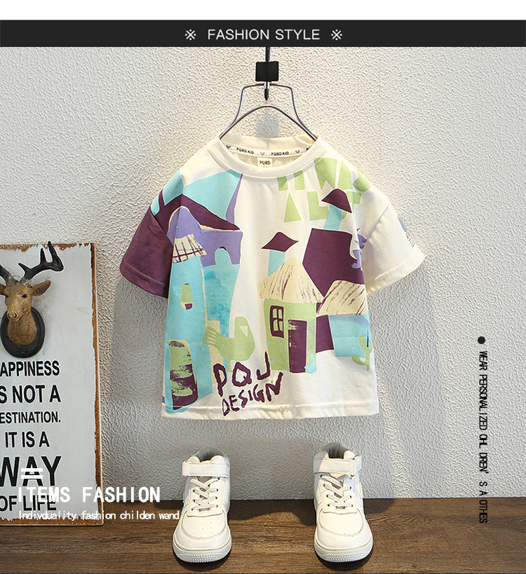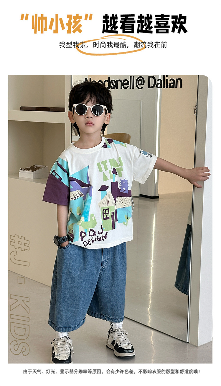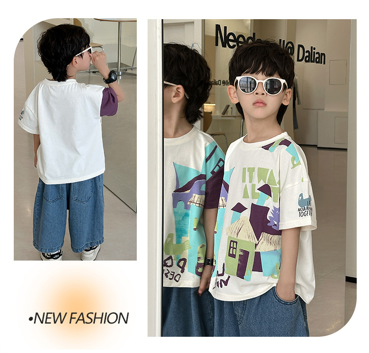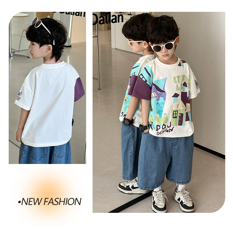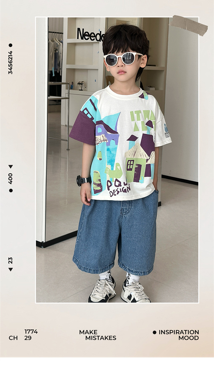7933 Camiseta de manga corta para niños Ropa de verano Ropa para niños Bebé para niños Ropa delgada de verano de media manga para niños