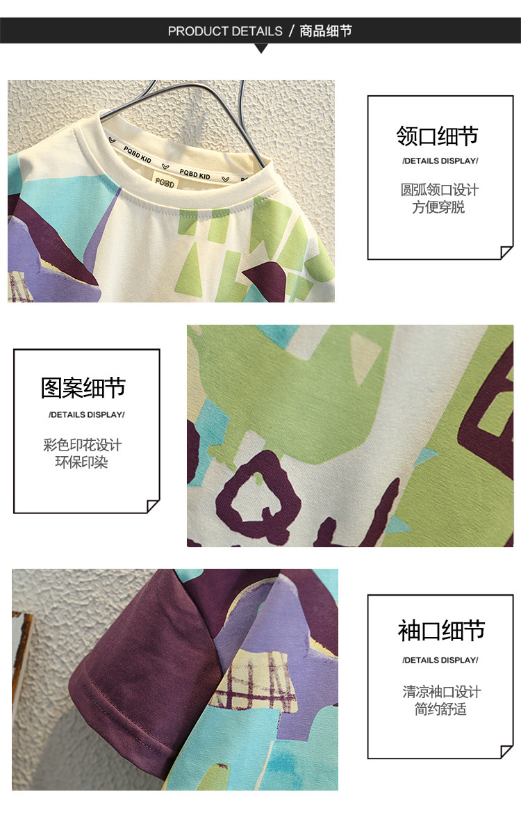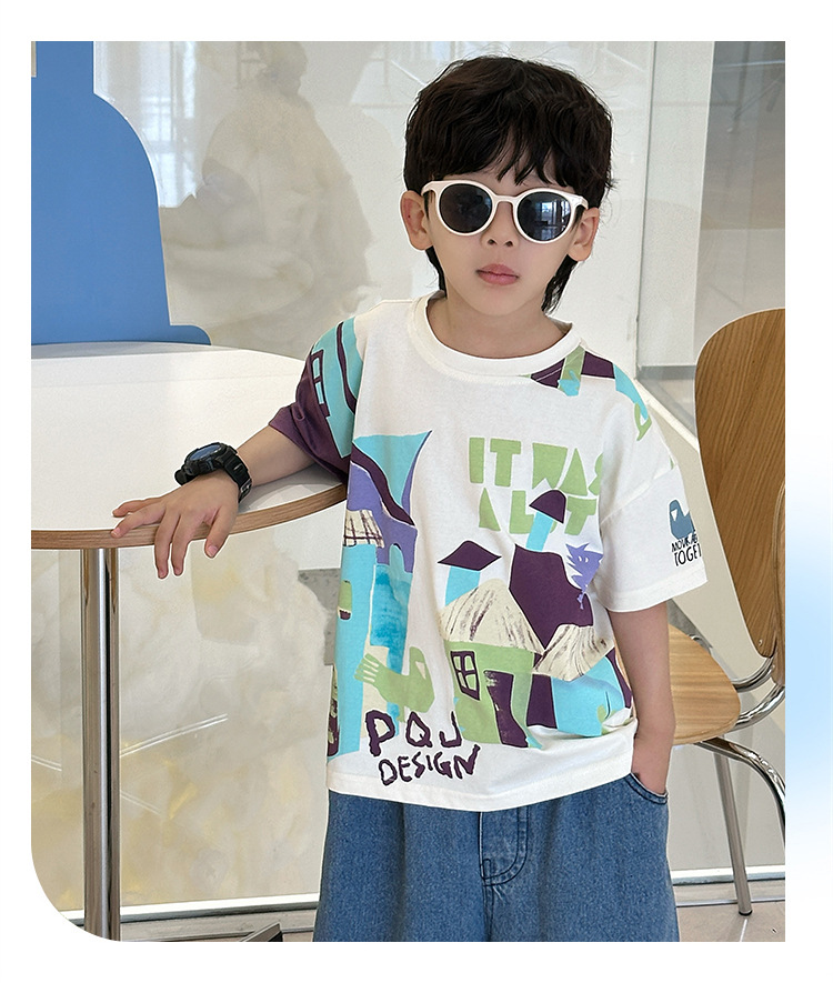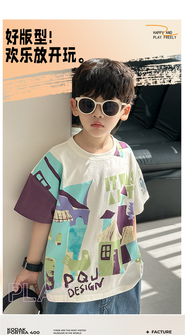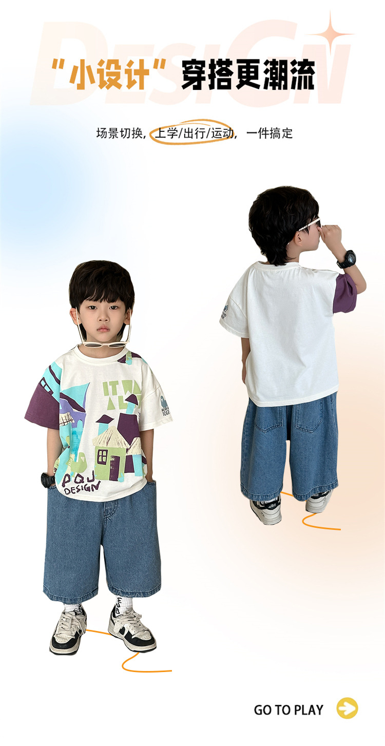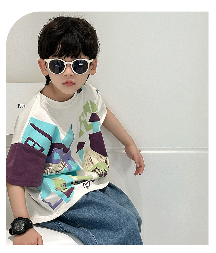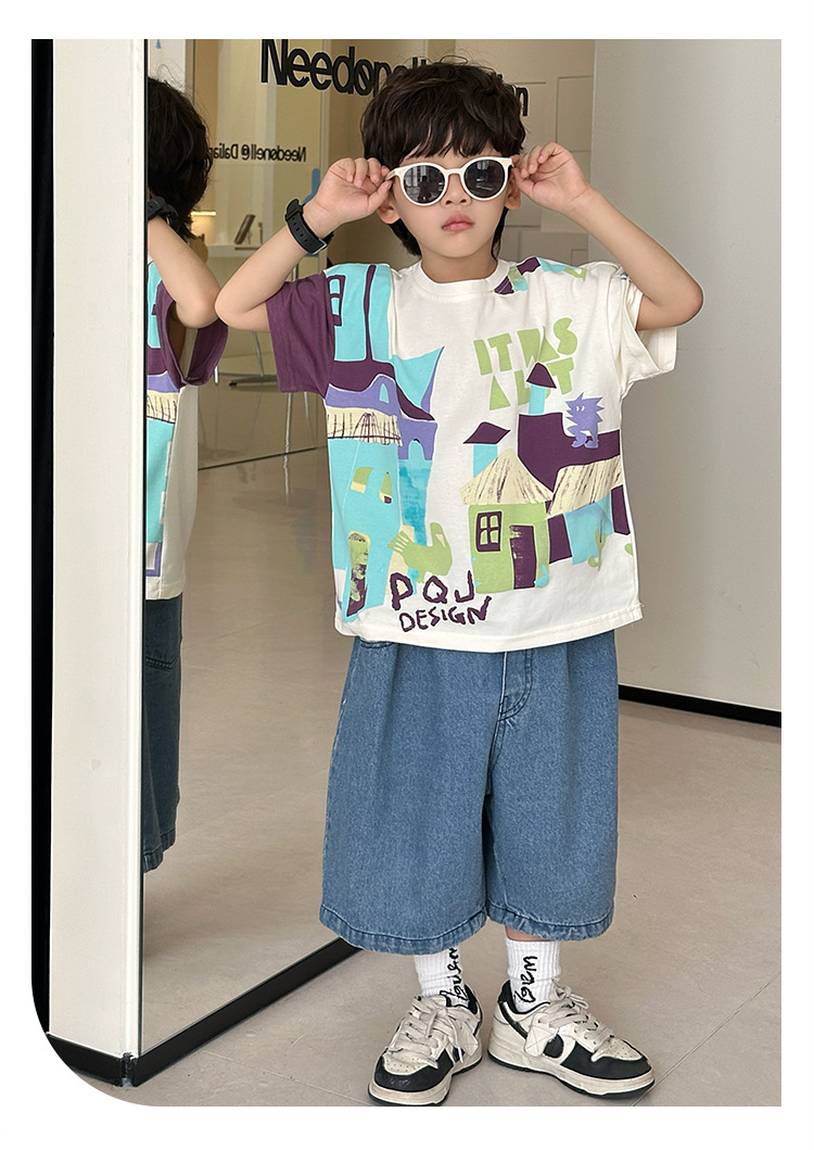 7933 Camiseta de manga corta para niños Ropa de verano Ropa para niños Bebé para niños Ropa delgada de verano de media manga para niños