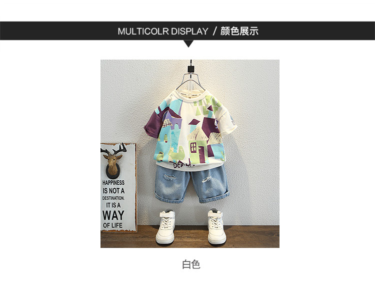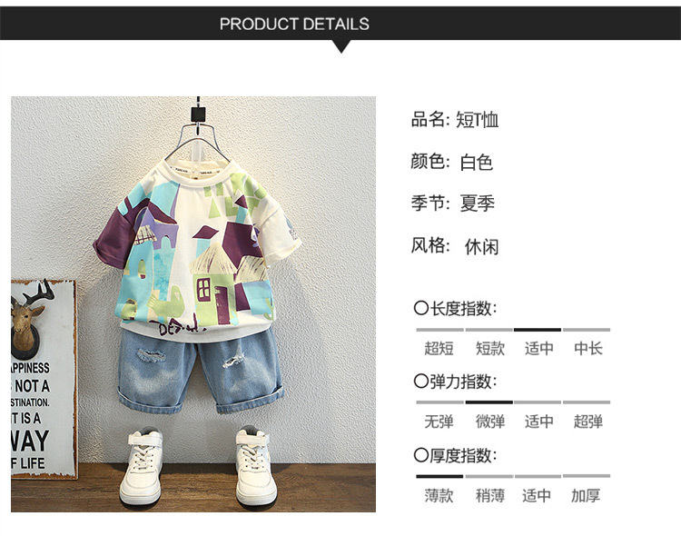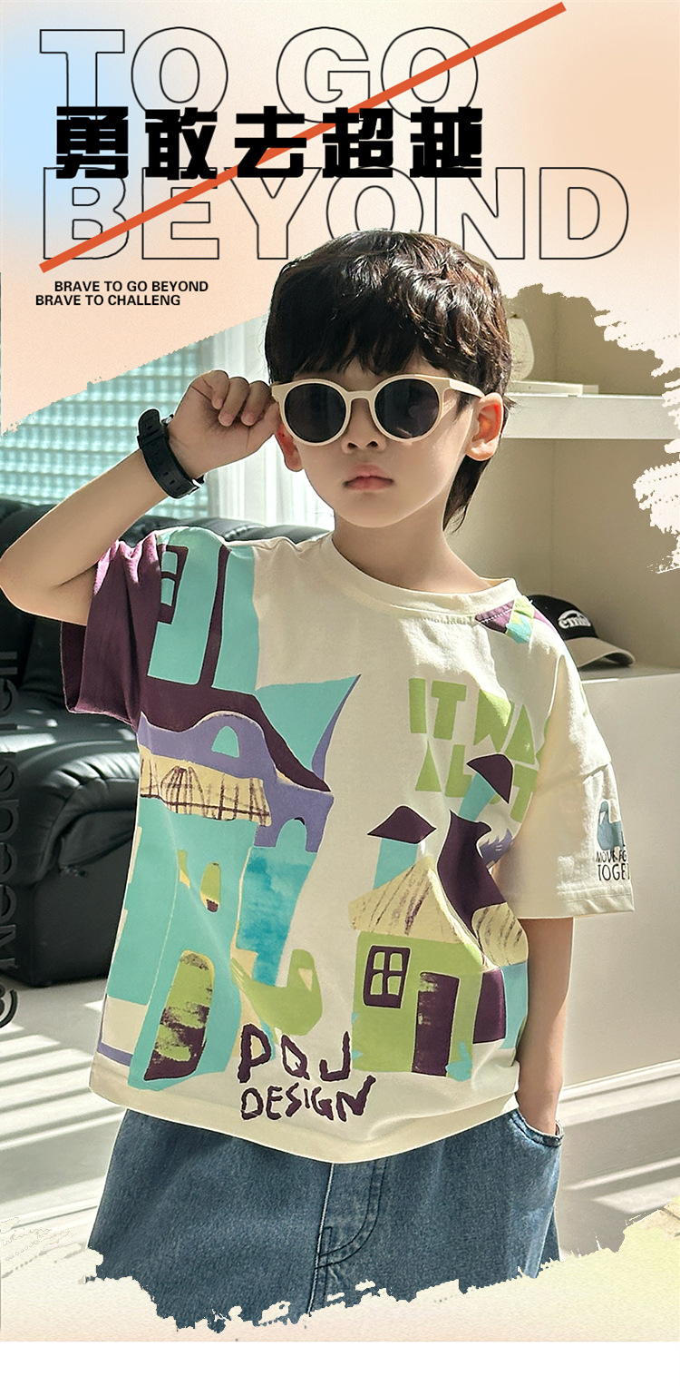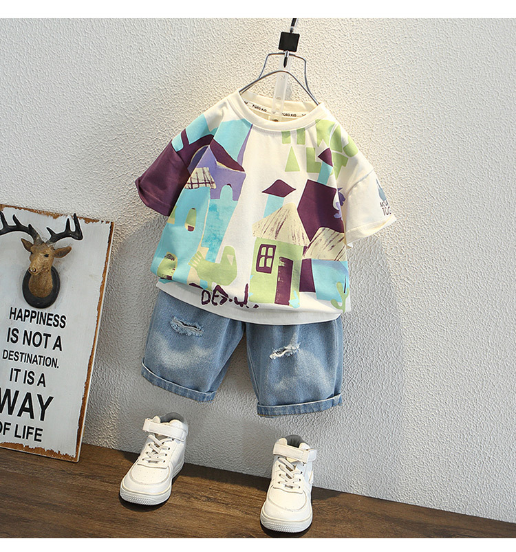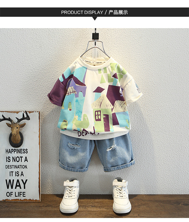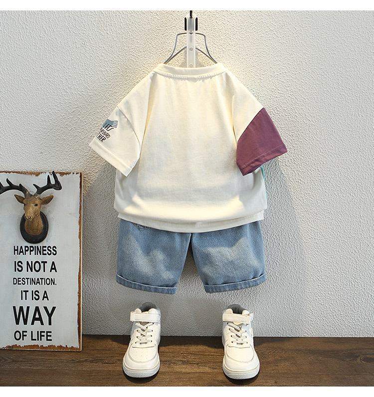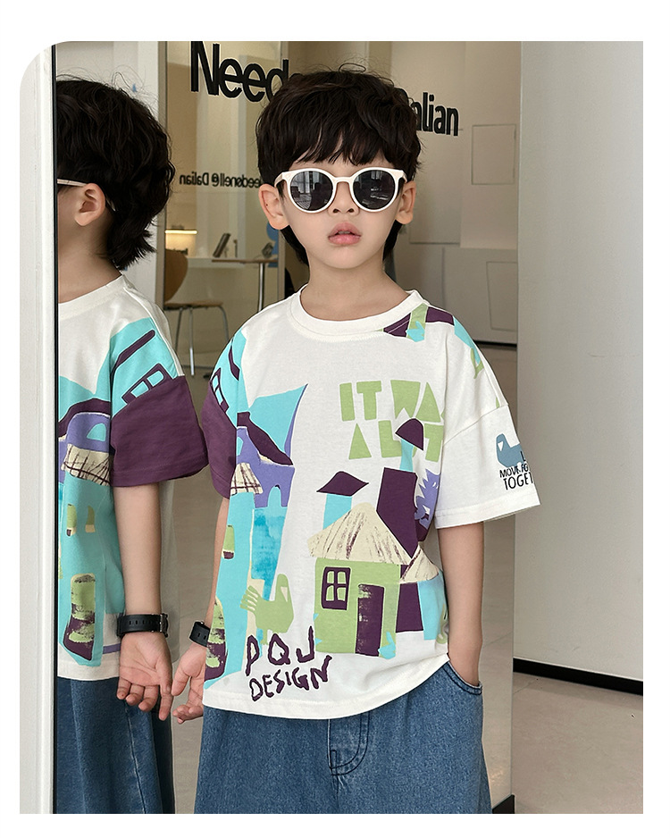 7933 Camiseta de manga corta para niños Ropa de verano Ropa para niños Bebé para niños Ropa delgada de verano de media manga para niños