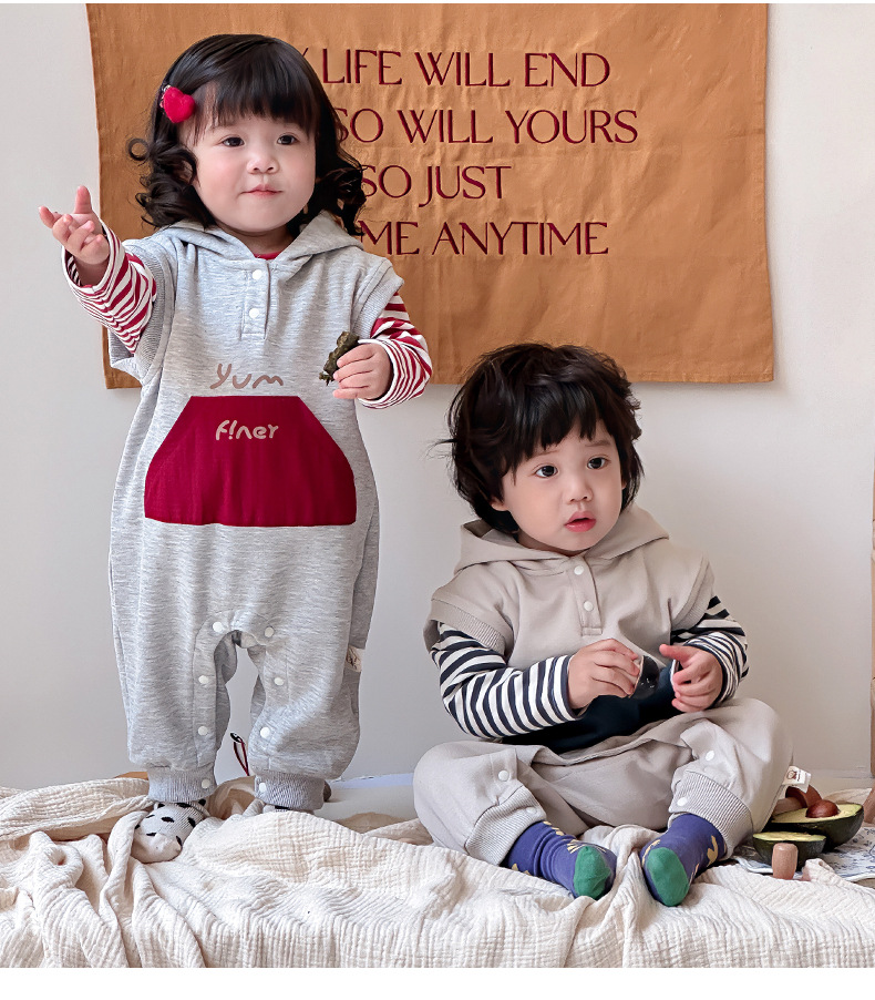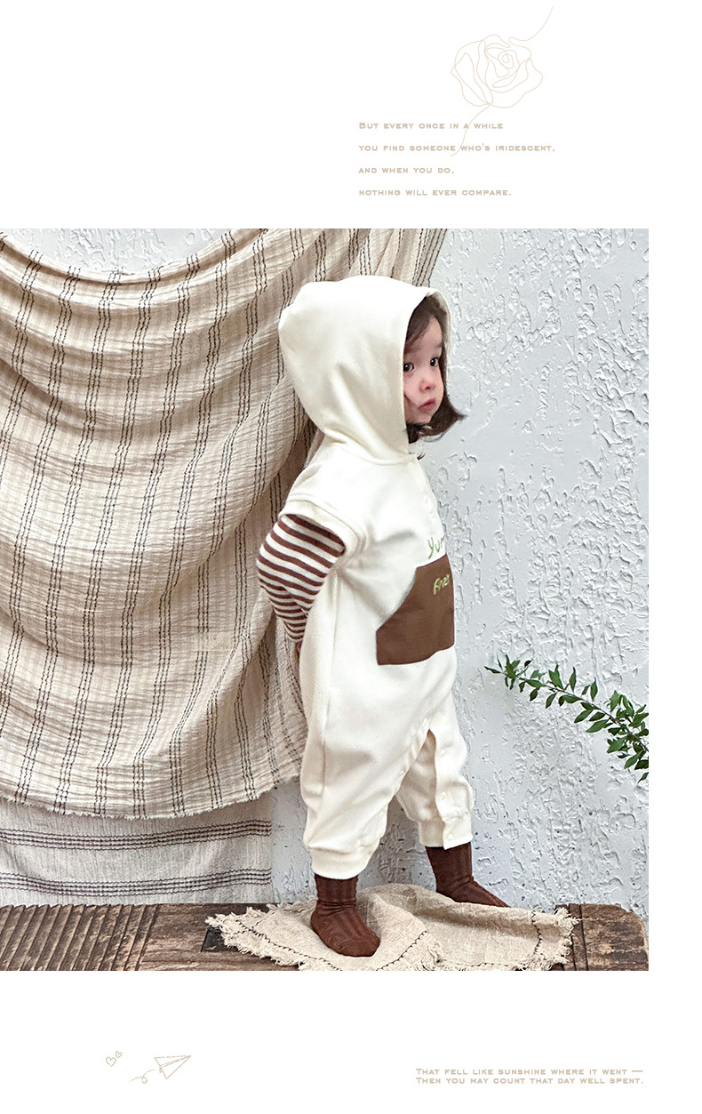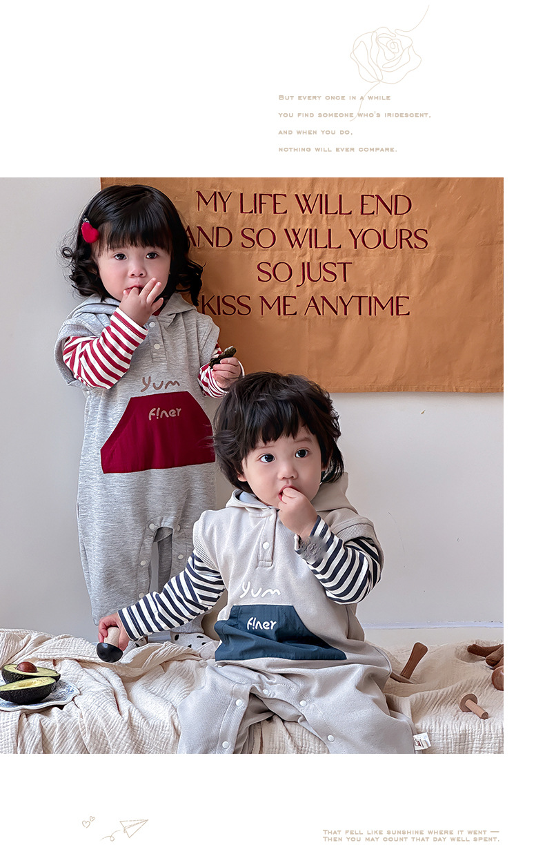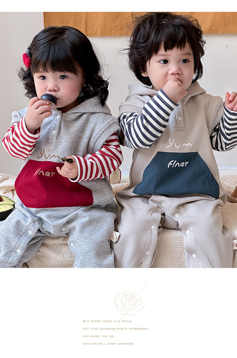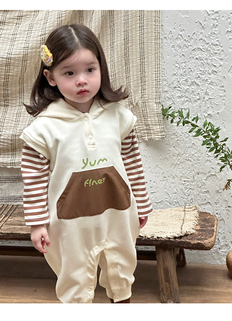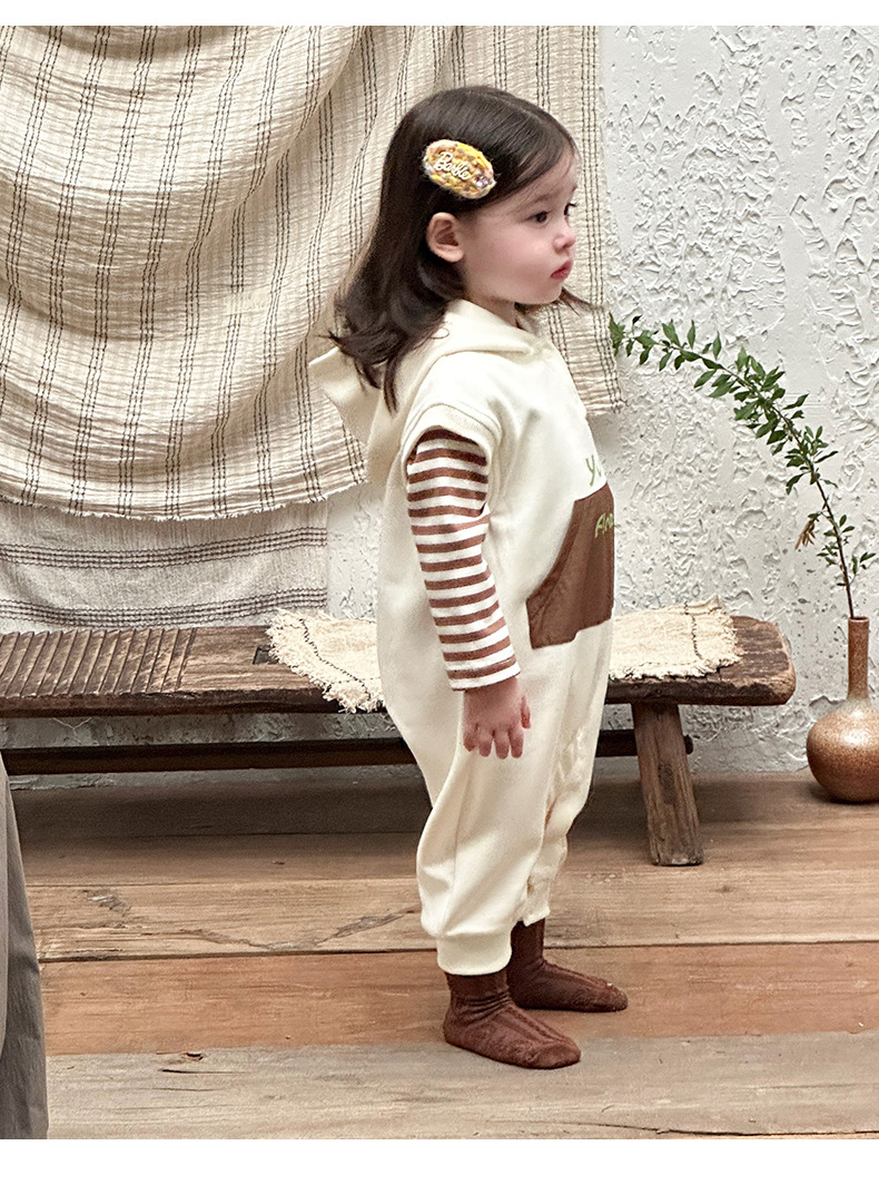 Ropa para niños coreanos, ropa para bebés, traje de otoño, traje de una pieza, traje de escalada 0-3, camiseta a rayas, mameluco con capucha, traje de dos piezas