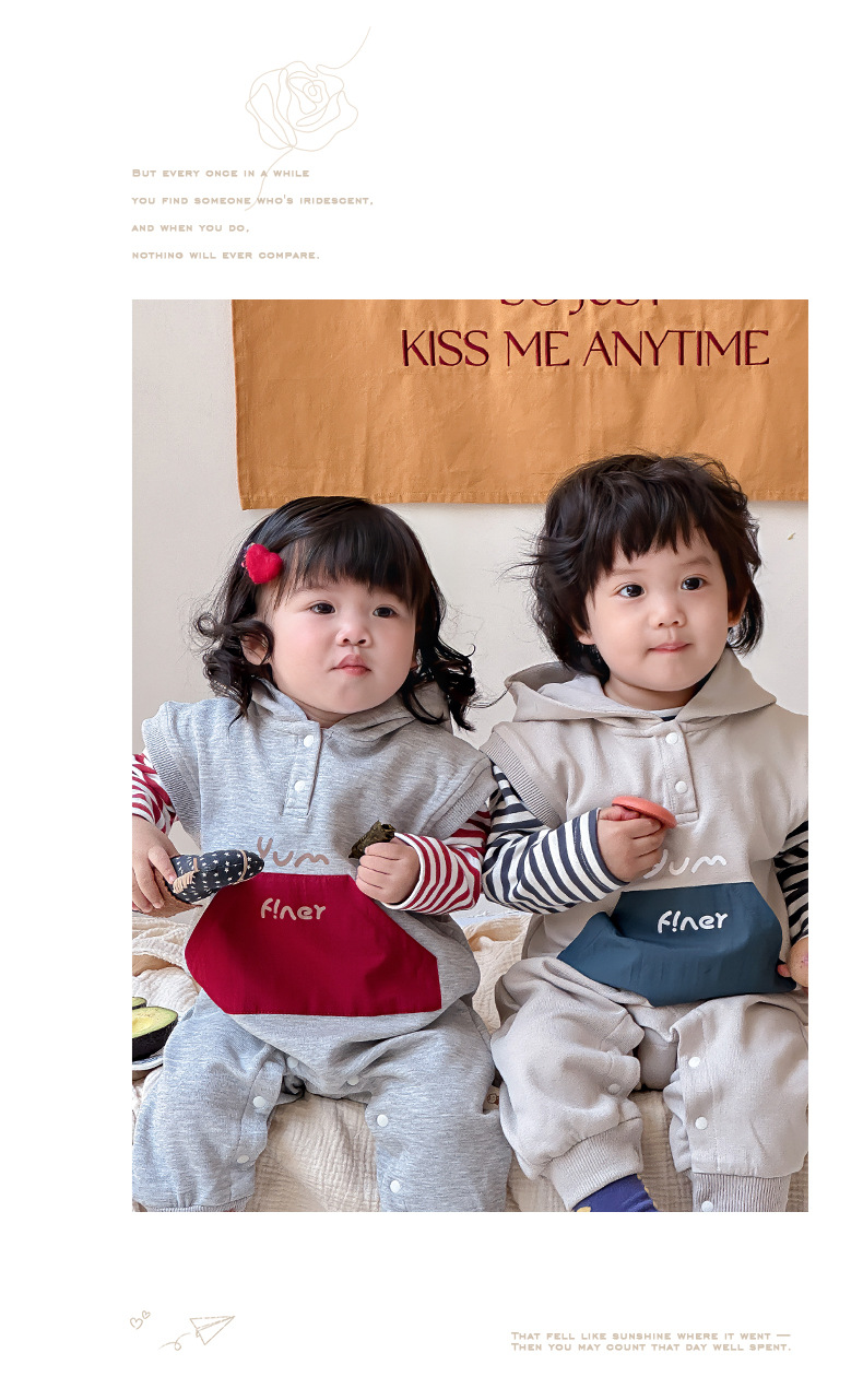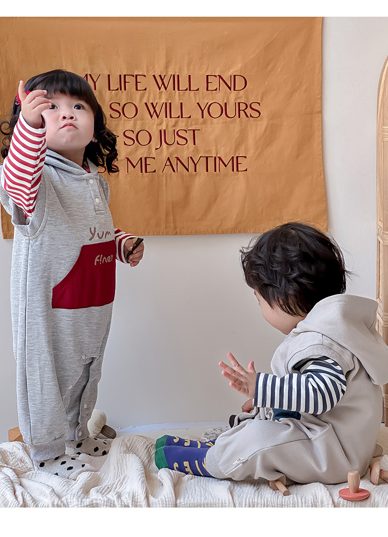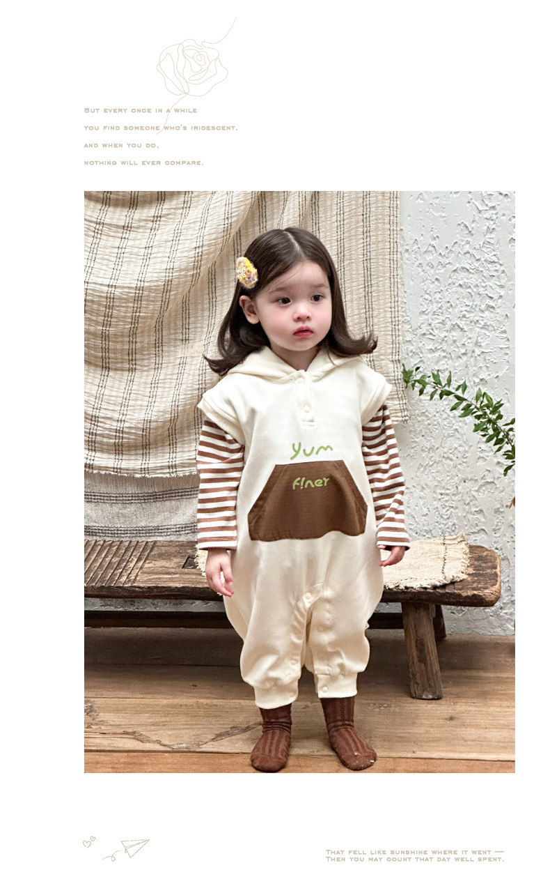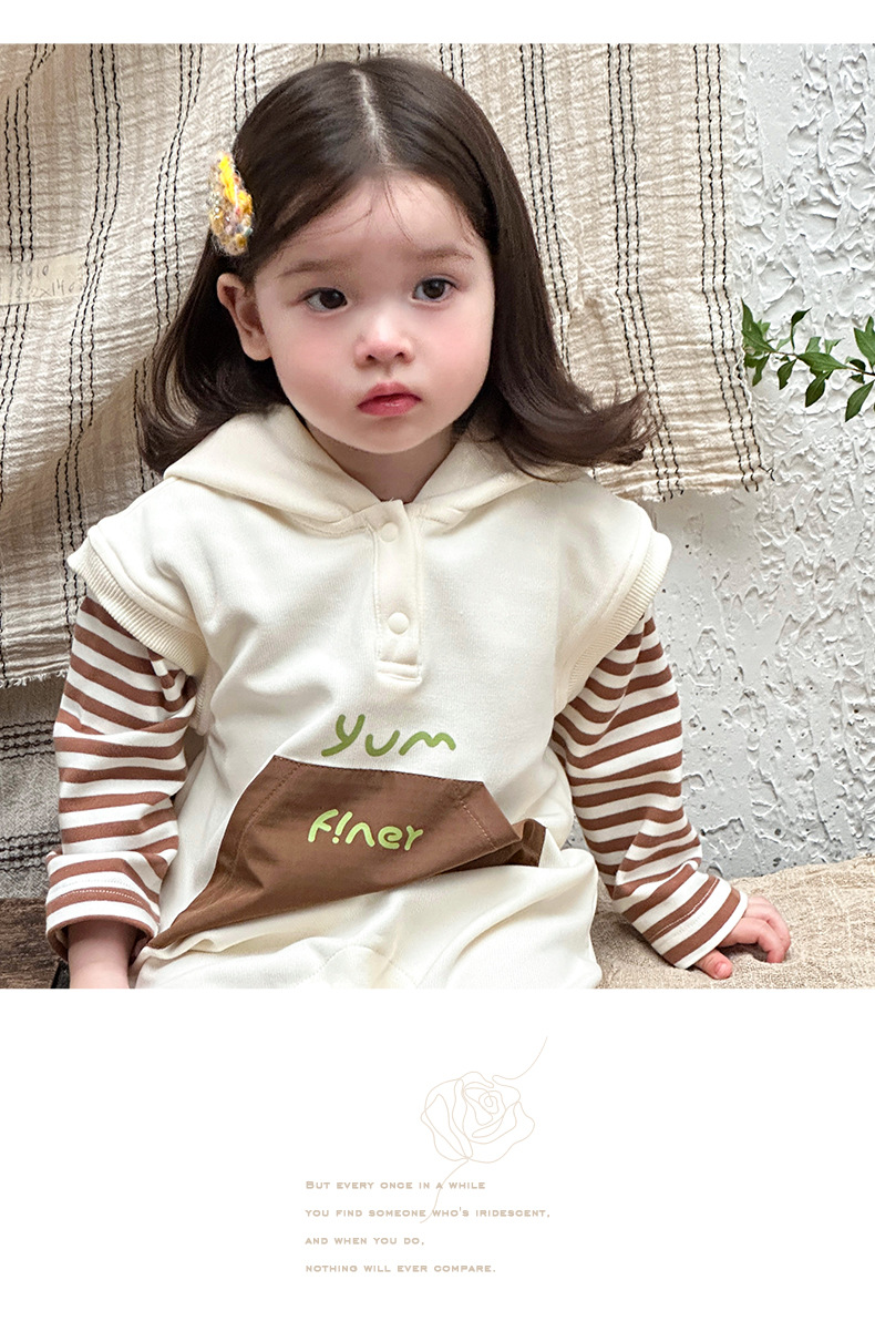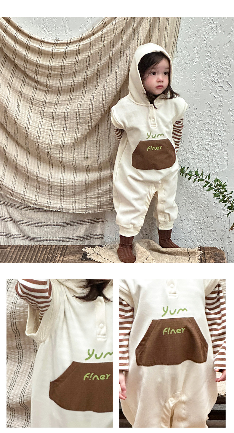Ropa para niños coreanos, ropa para bebés, traje de otoño, traje de una pieza, traje de escalada 0-3, camiseta a rayas, mameluco con capucha, traje de dos piezas
