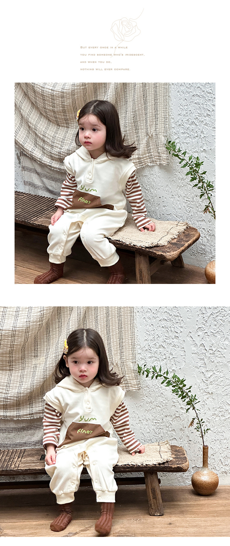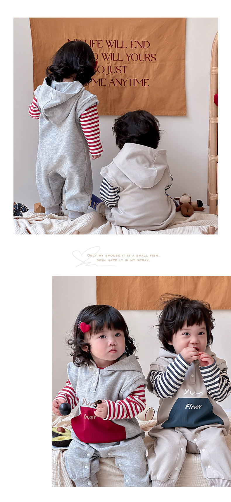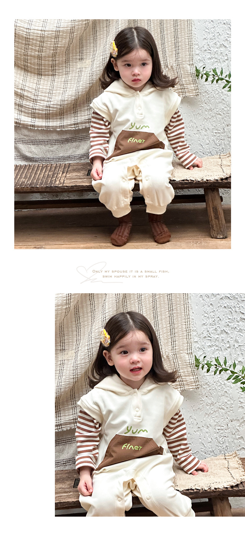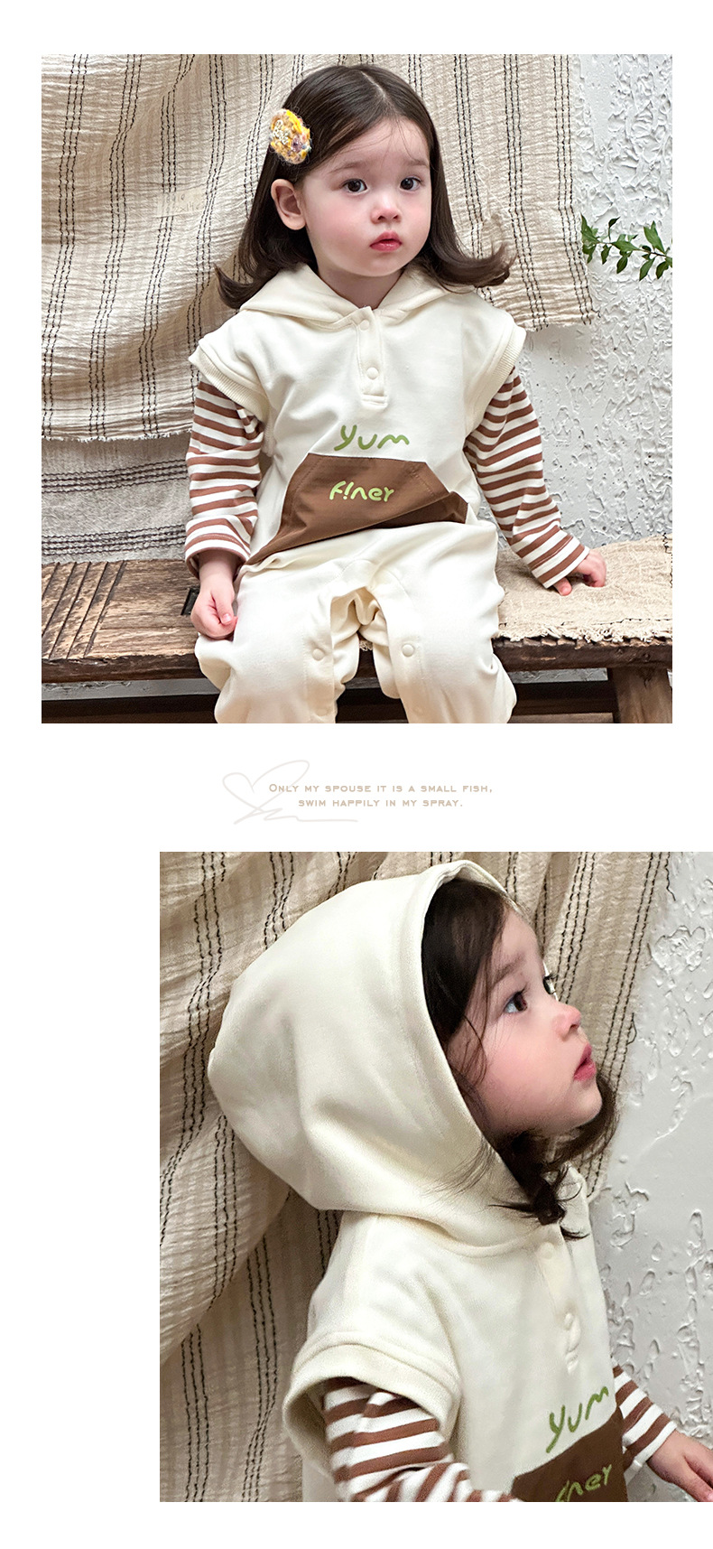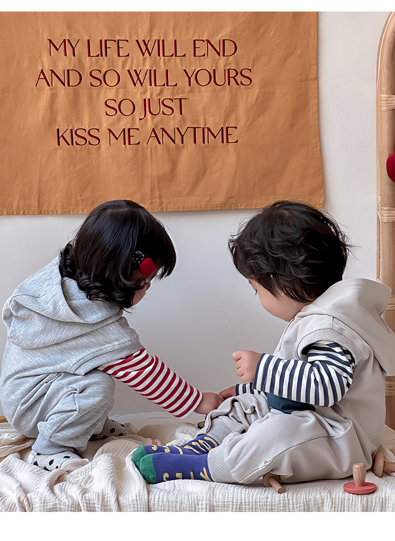 Ropa para niños coreanos, ropa para bebés, traje de otoño, traje de una pieza, traje de escalada 0-3, camiseta a rayas, mameluco con capucha, traje de dos piezas