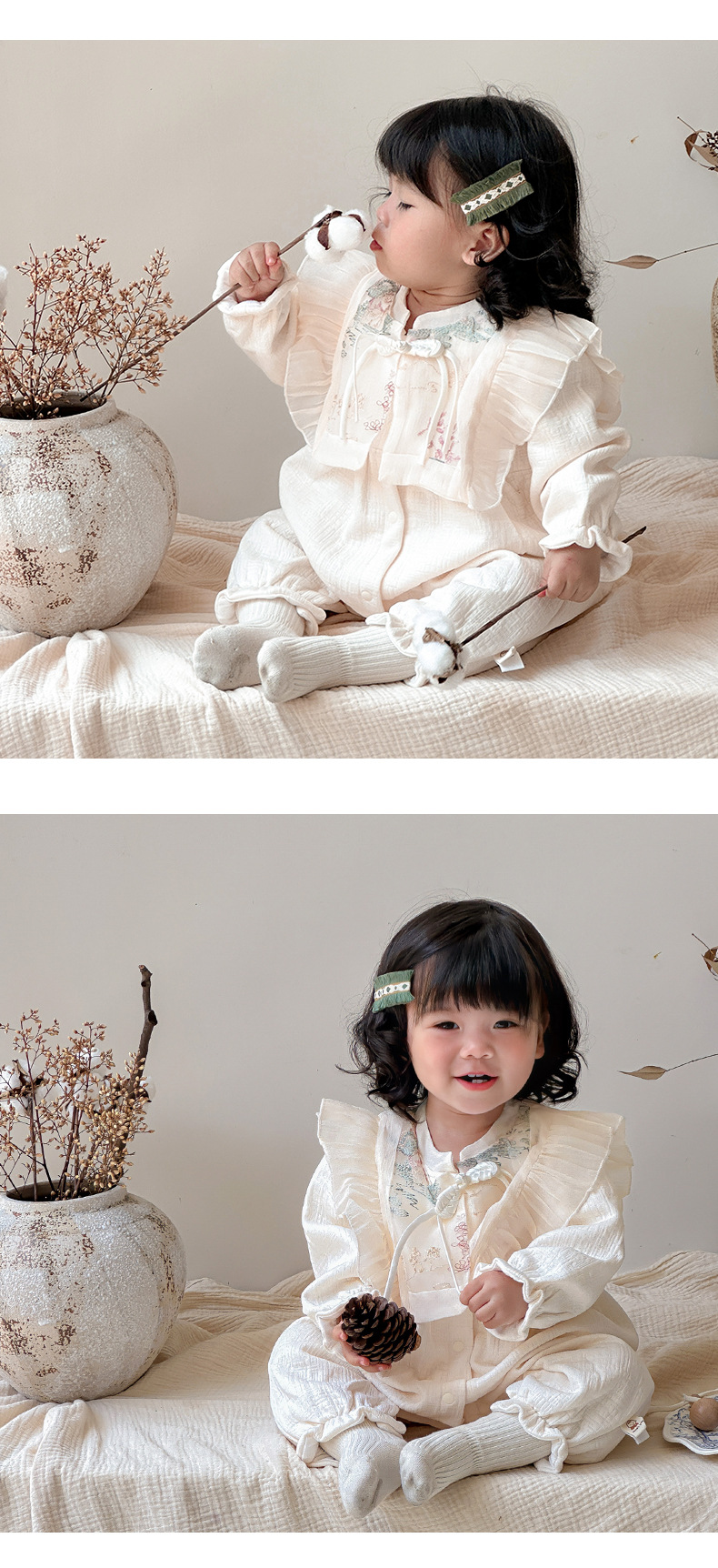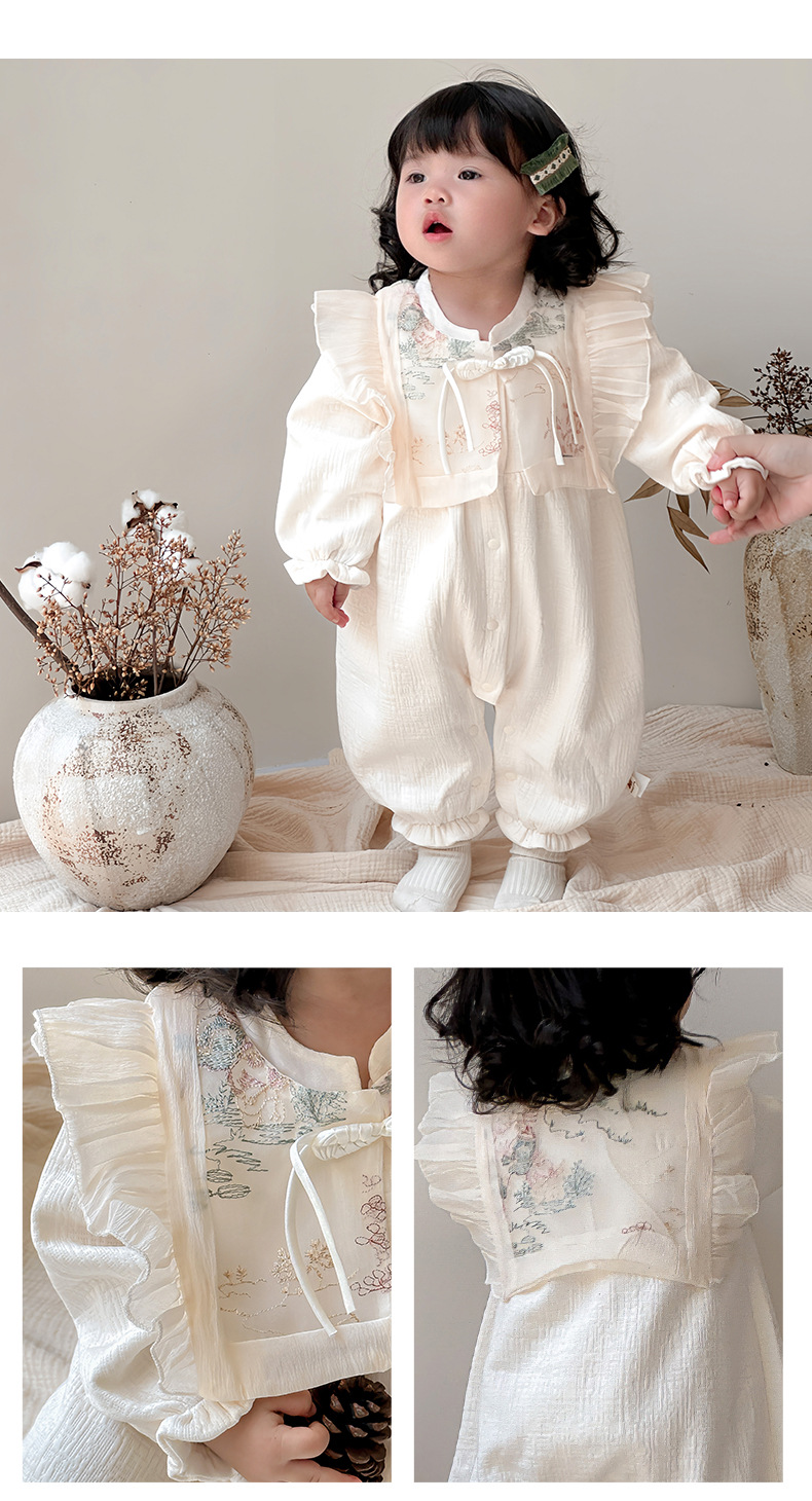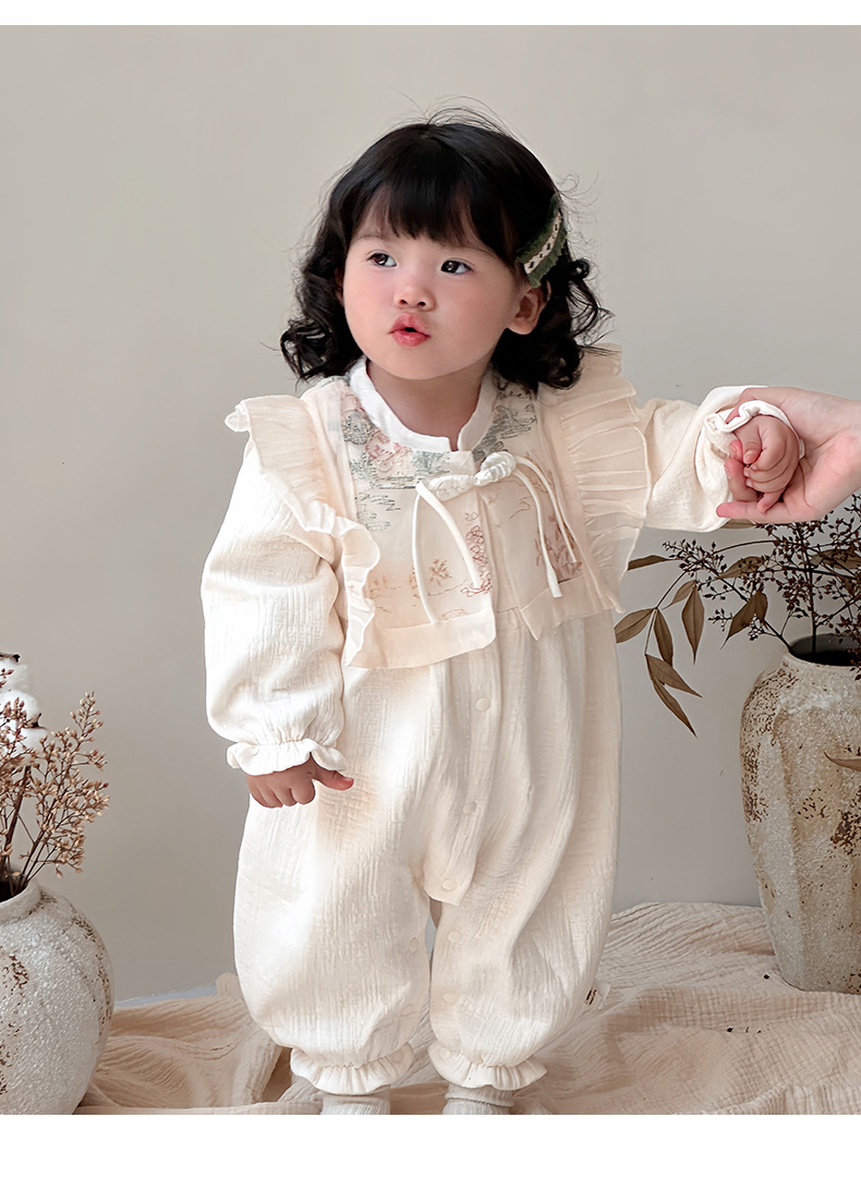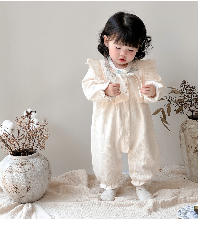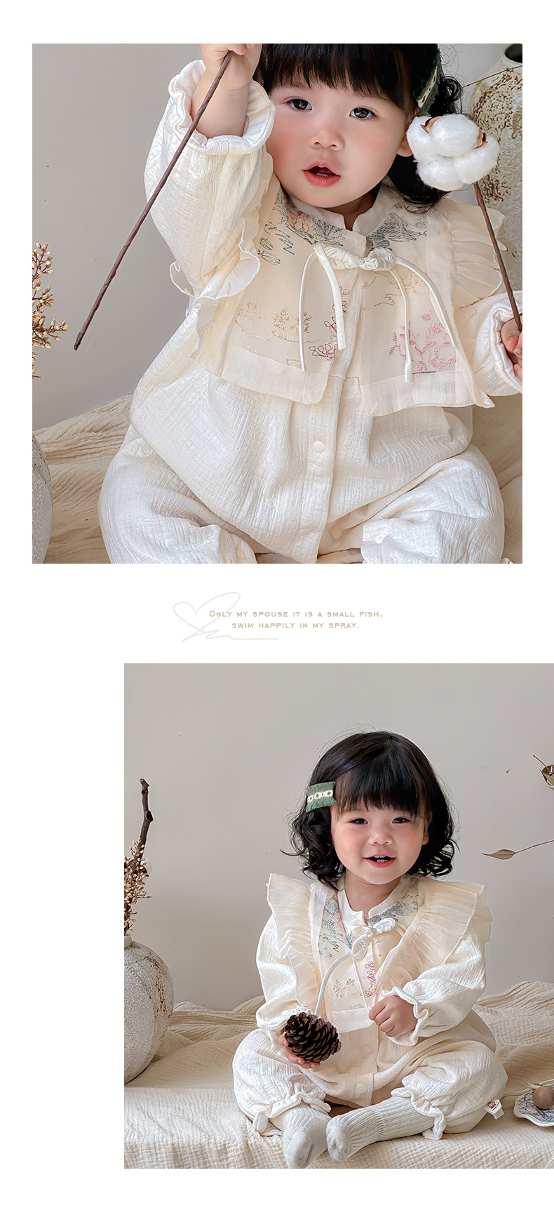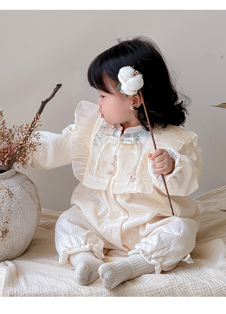 Bebé luna llena cien días ropa ropa de primavera y otoño estilo chino Hanfu niña bebé de un año princesa estilo extranjero fuera de una pieza