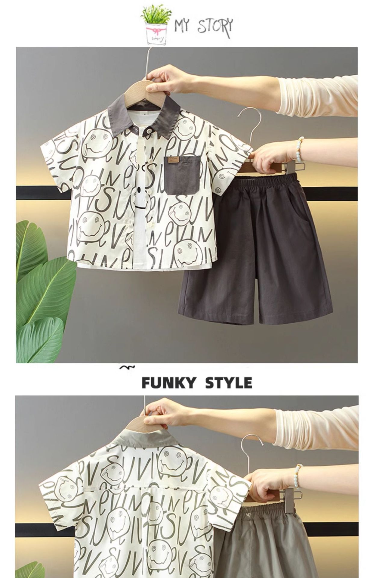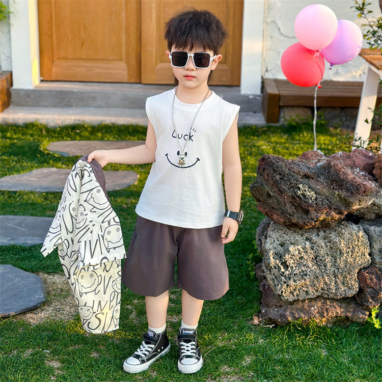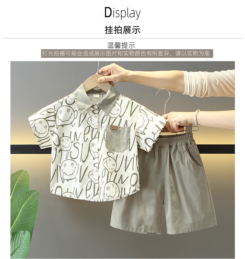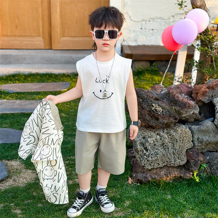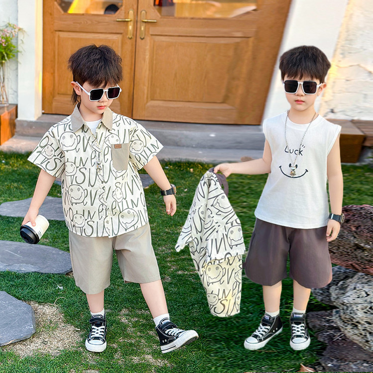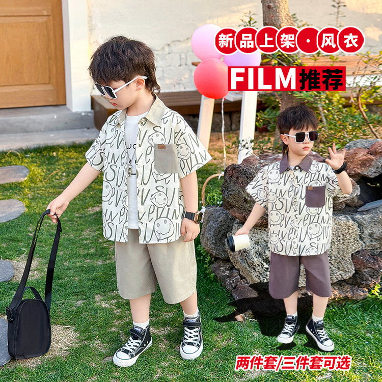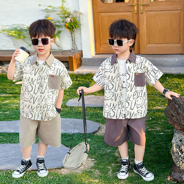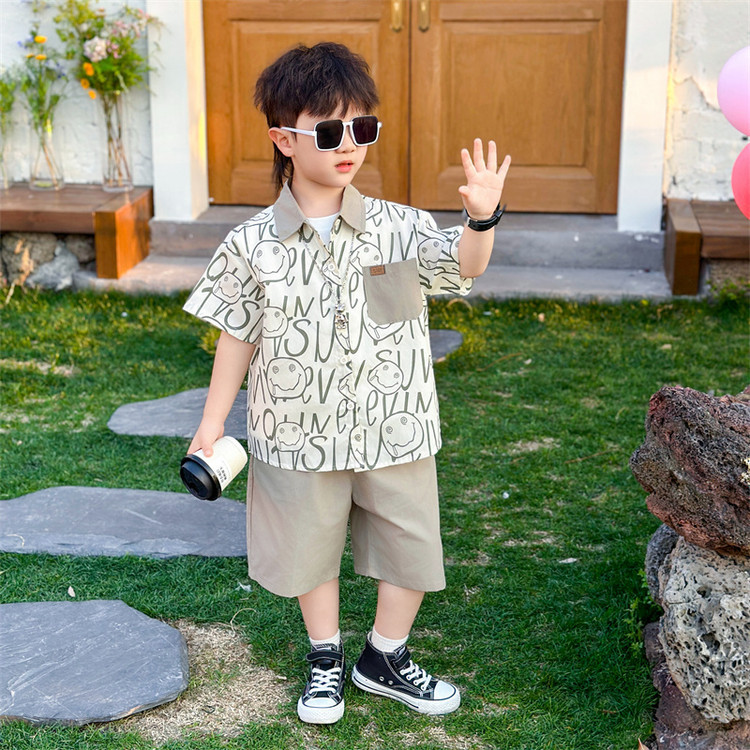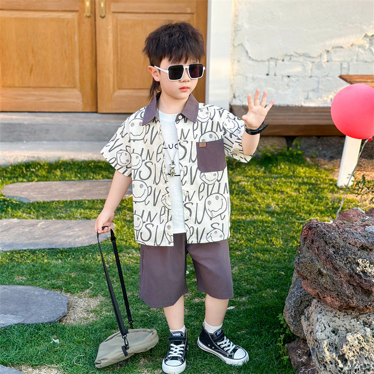 7869 Traje de verano para niños 2025 Nuevo estilo hermoso Camisa de verano para niños de tres piezas de manga corta para niños