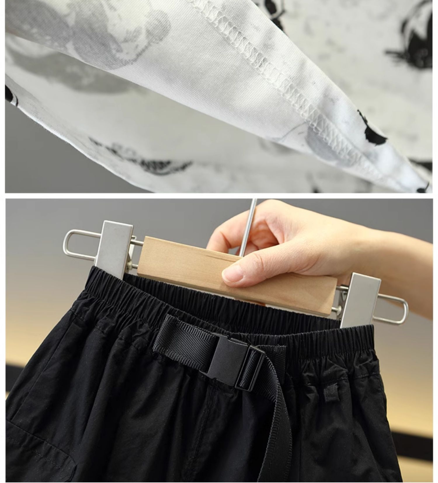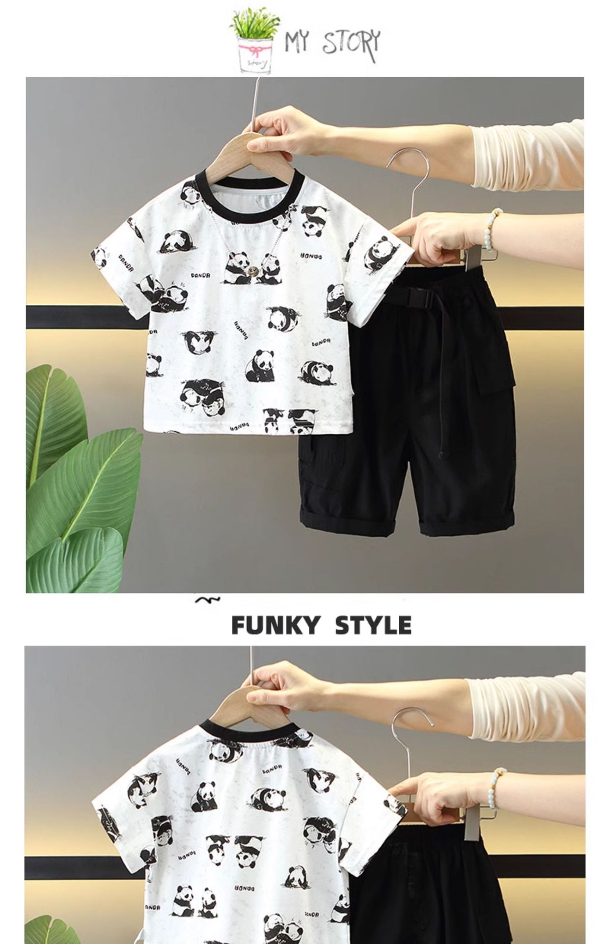 7860 traje de verano para niños 2025 nuevo estilo para niños de manga corta de dos piezas ropa de moda de verano para bebés