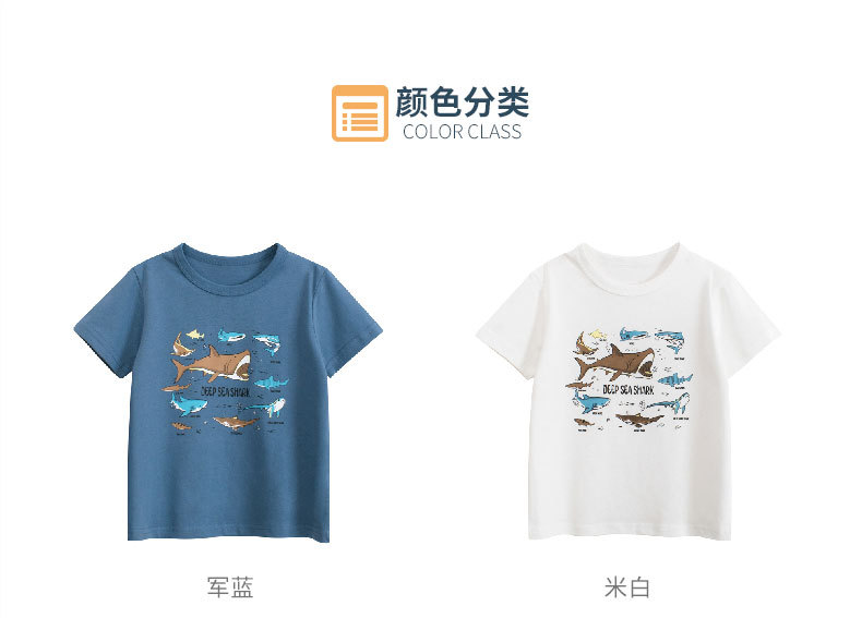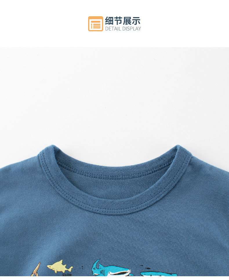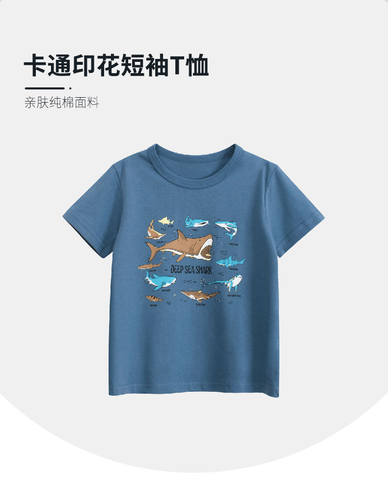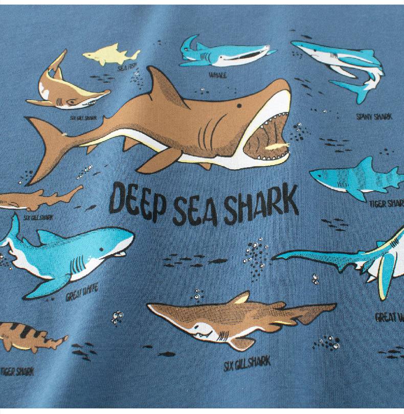 27kids ropa para niños versión coreana 2025 nueva camiseta de manga corta para niños niño bebé tiburón ropa camisa de fondo al por mayor