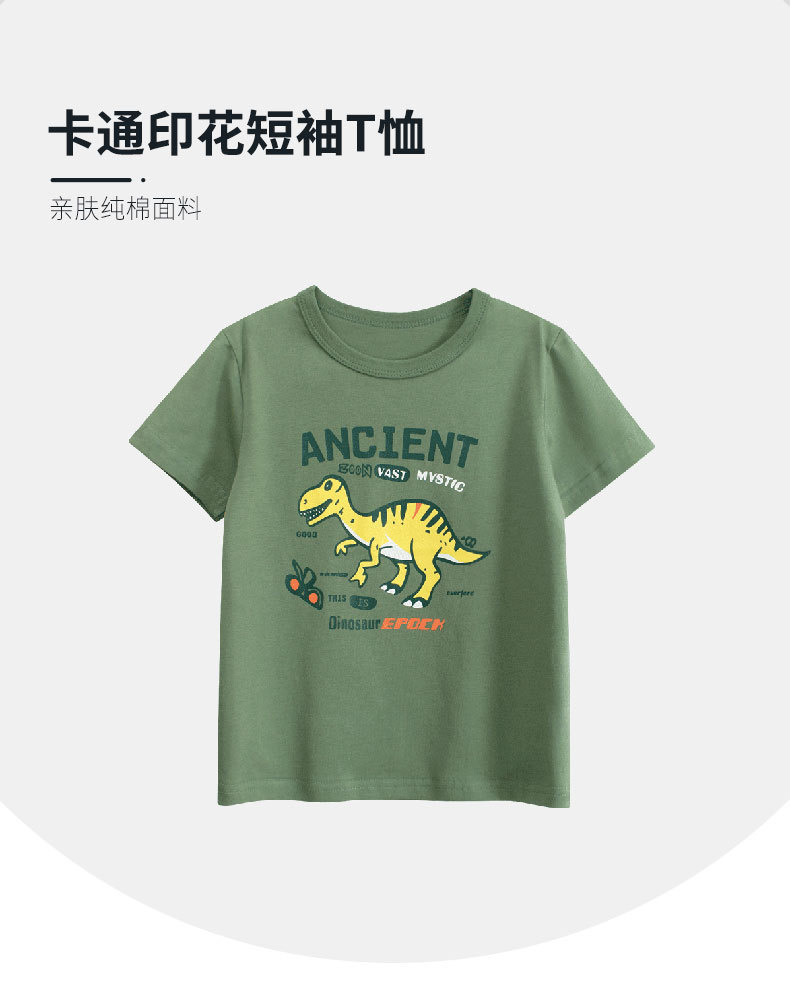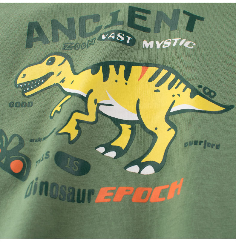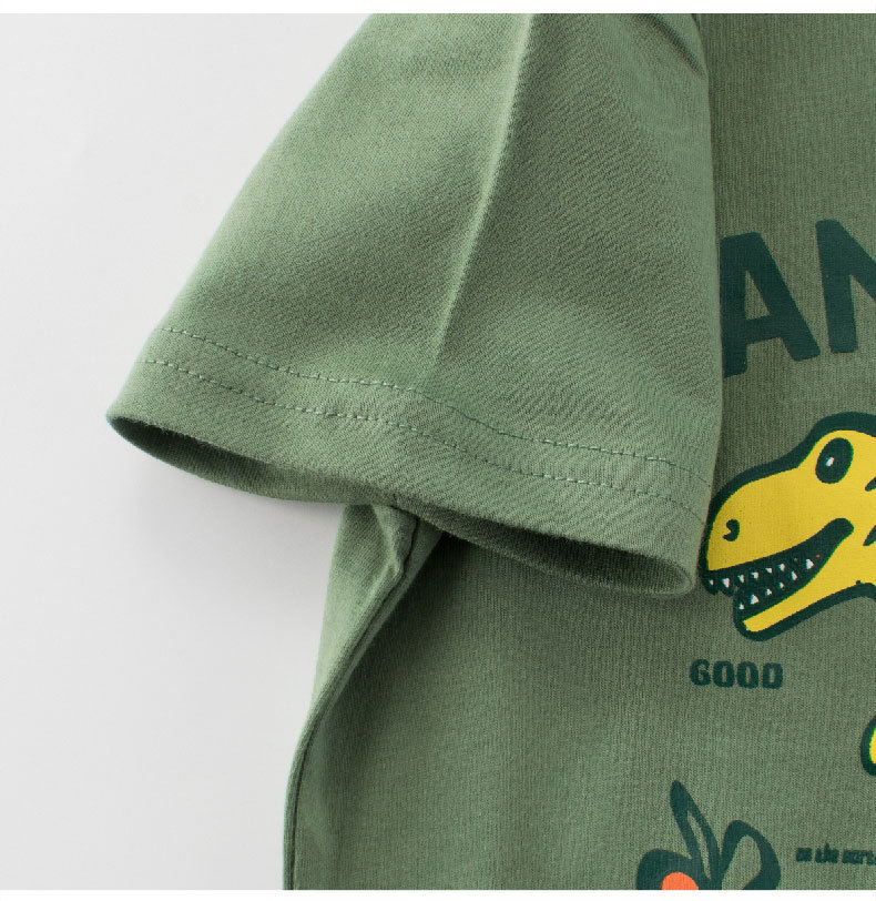 27kids marca de moda ropa para niños 2025 verano nuevos productos niños dinosaurio dibujos animados camiseta de manga corta al por mayor ropa para bebés
