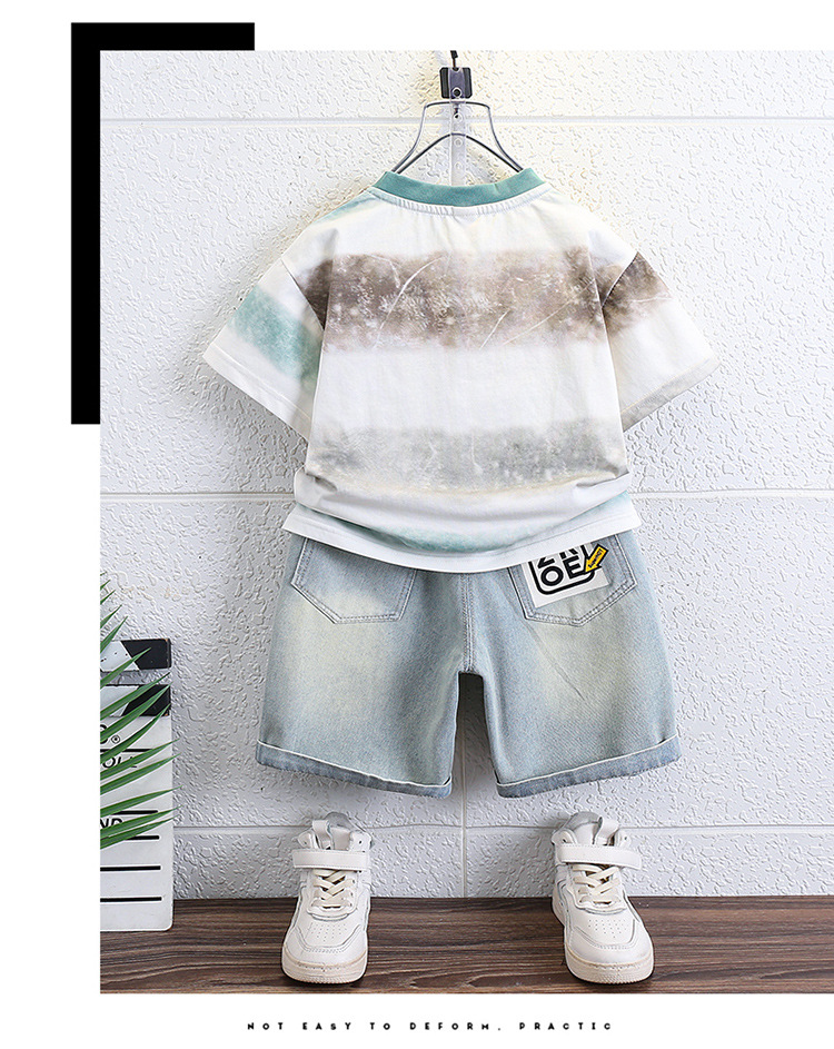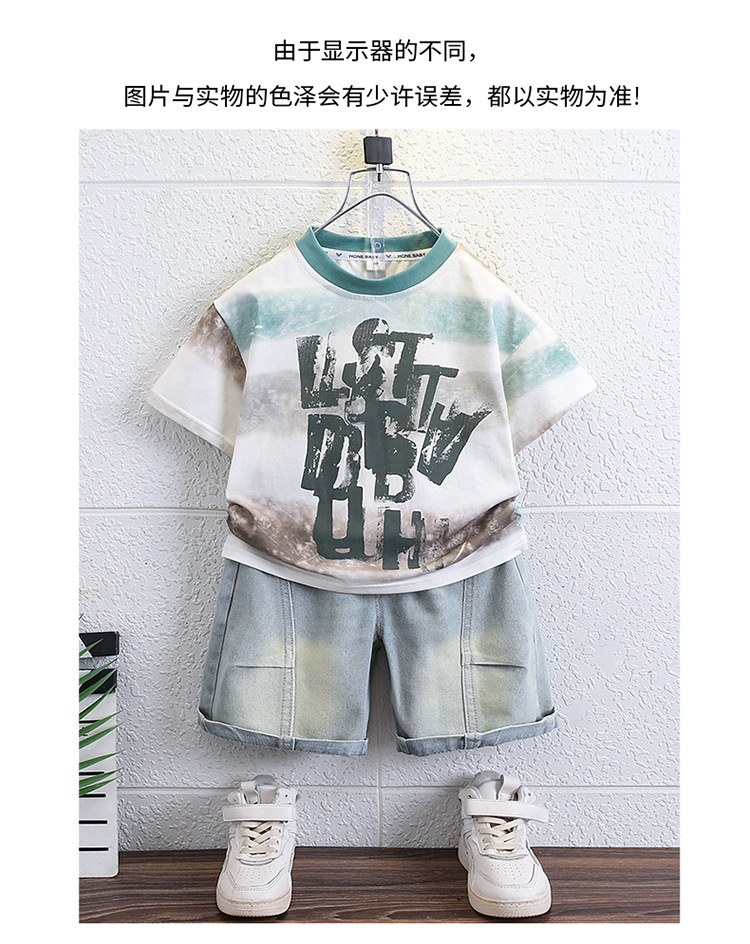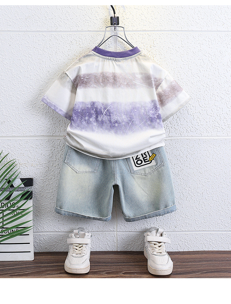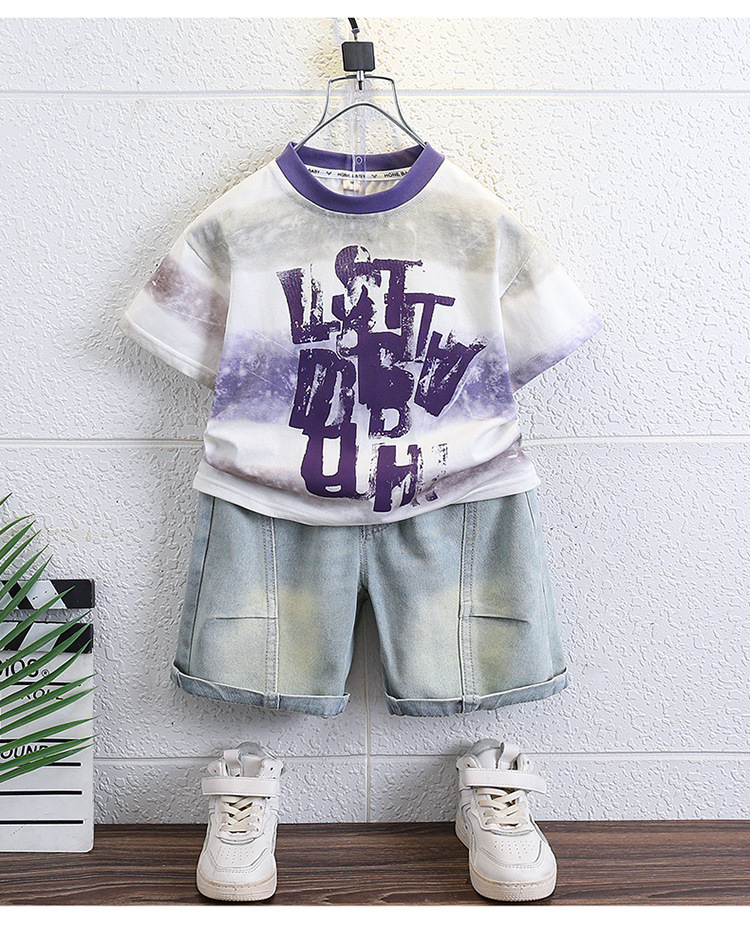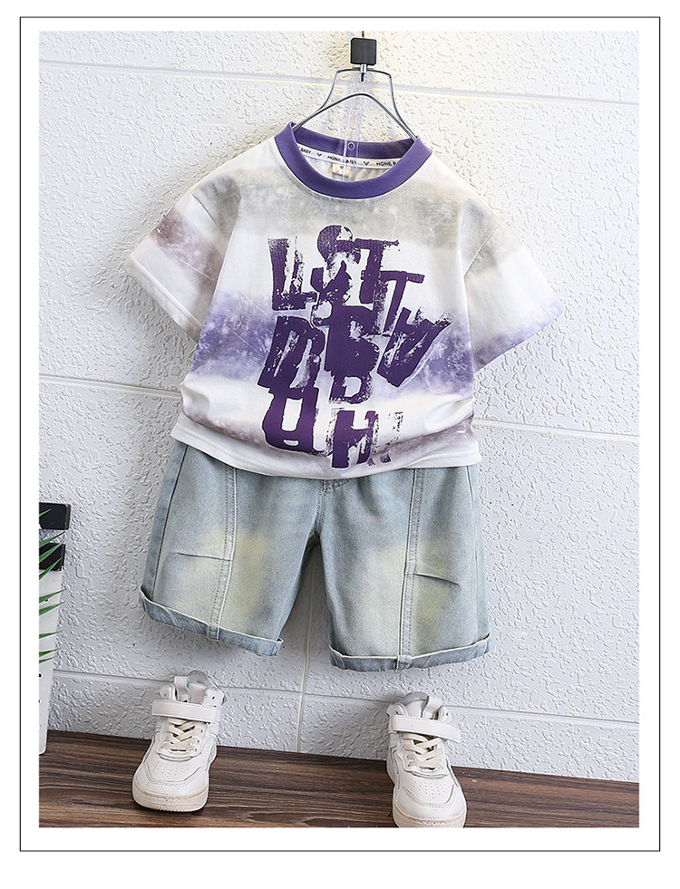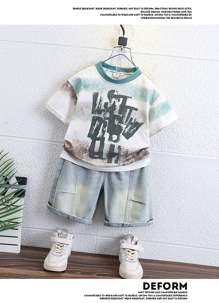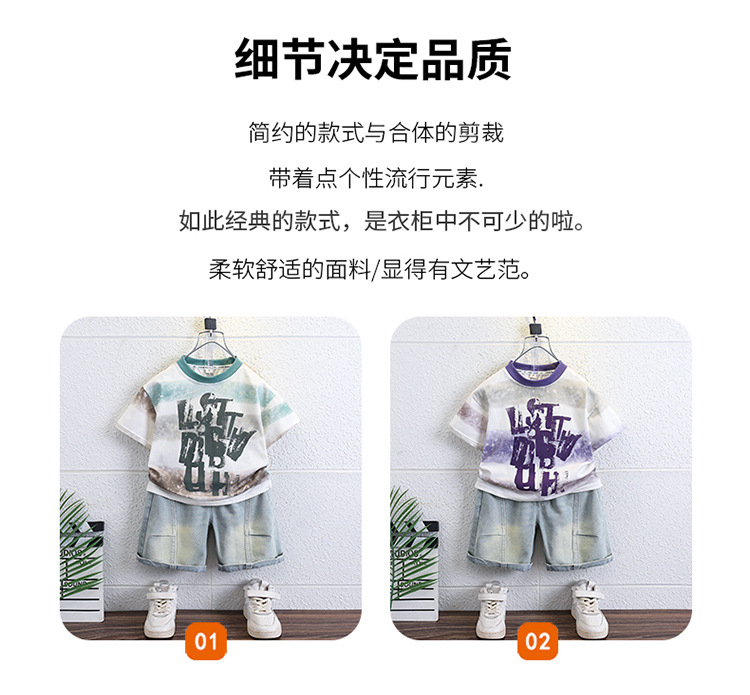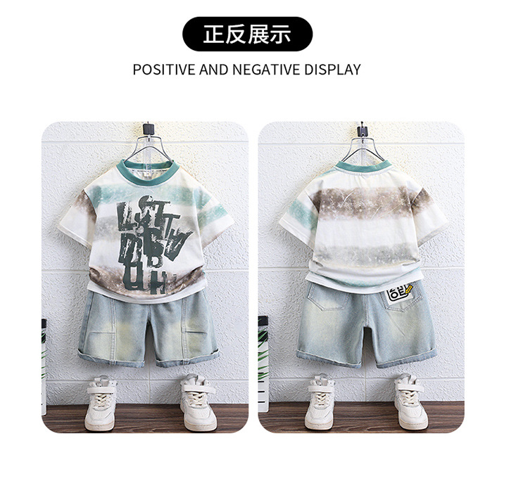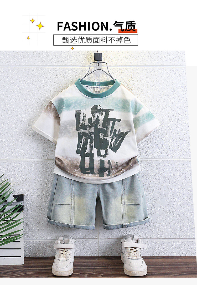 7209 Traje de manga corta para niños 2025 nueva ropa para niños de moda verano para bebés, traje de dos piezas de verano para niños guapos