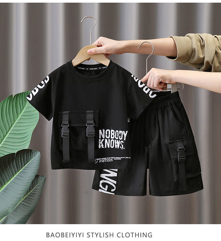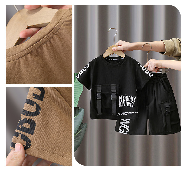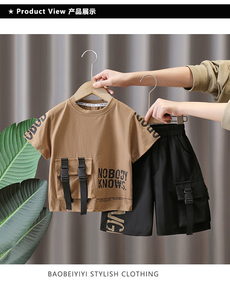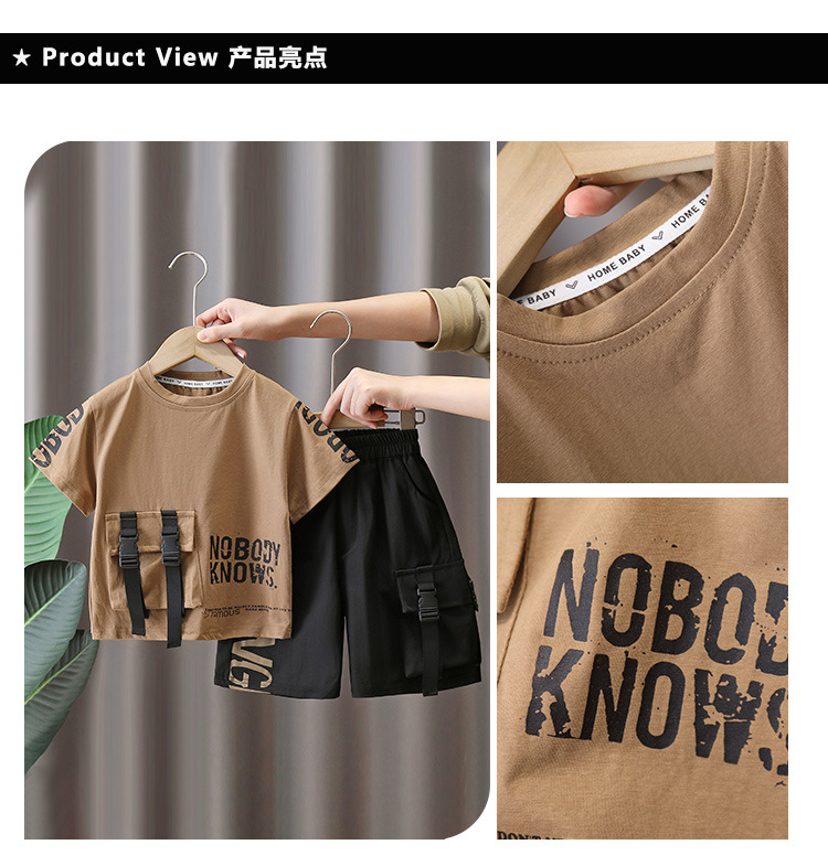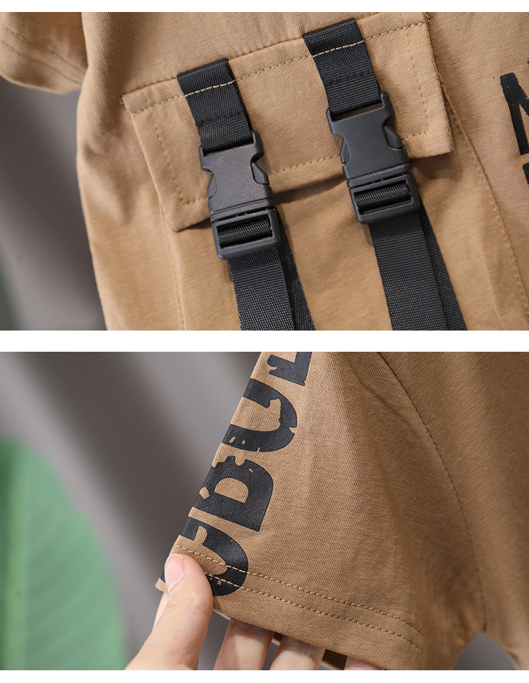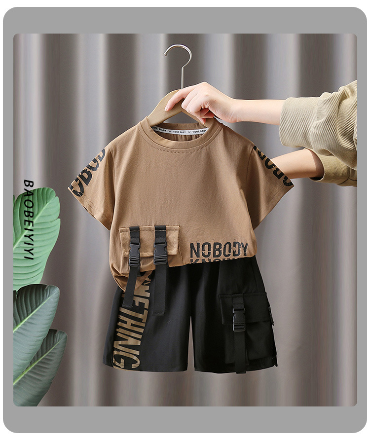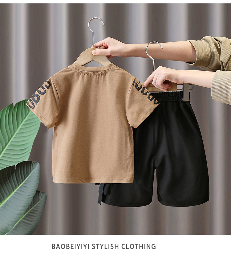 7225 Traje de manga corta para niños Camiseta de moda para niños estilo occidental Estilo de verano Red de Internet Ropa de calle frita 2025 Nuevo estilo