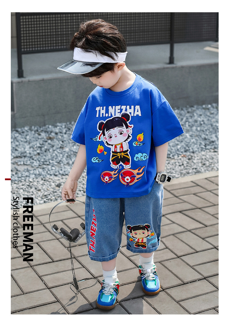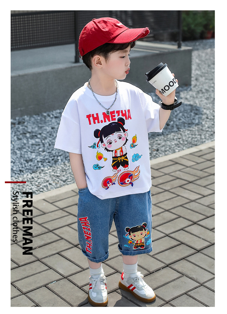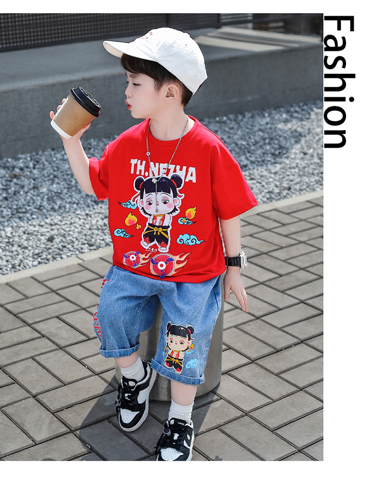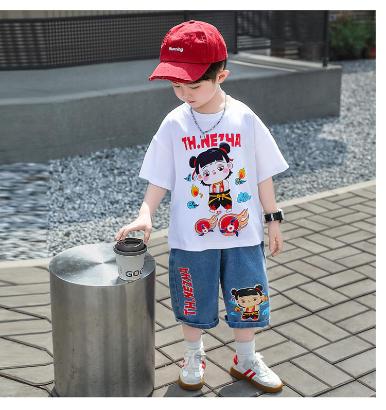 7856 Ropa para niños Traje de manga corta de moda de manga corta de verano para niños 2025 Nuevo vestido de verano para bebés Ropa de celebridades de Internet