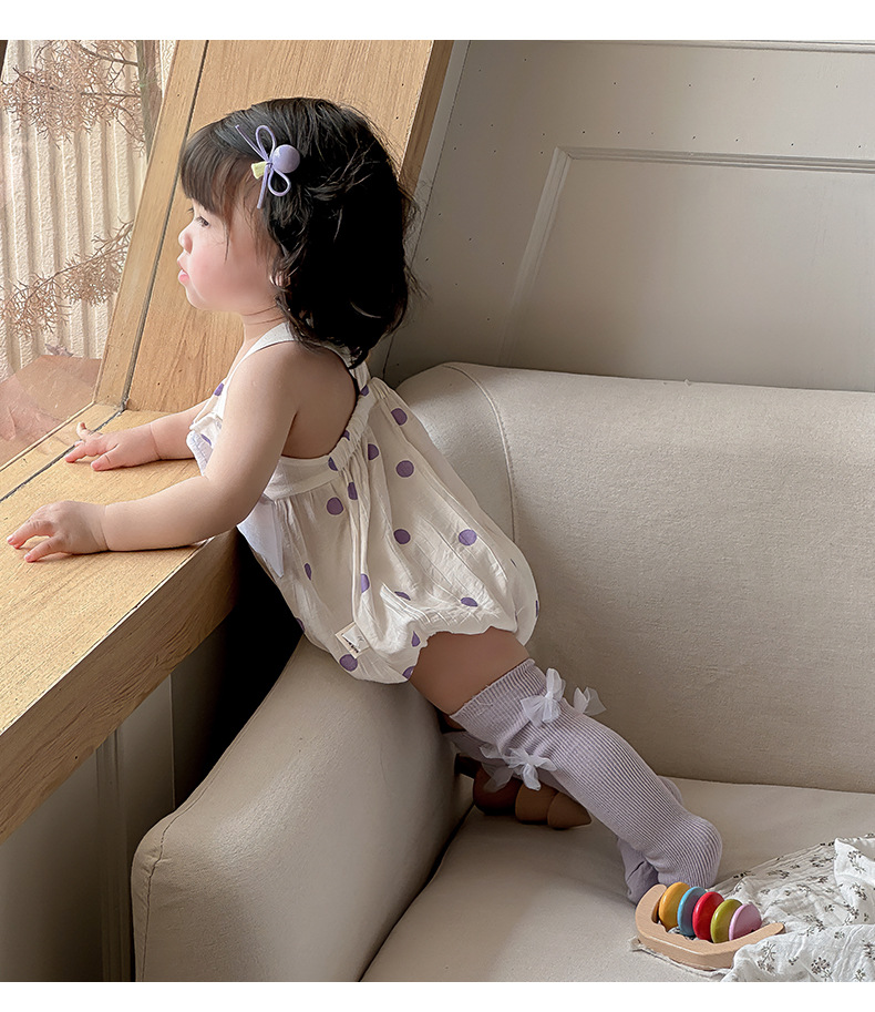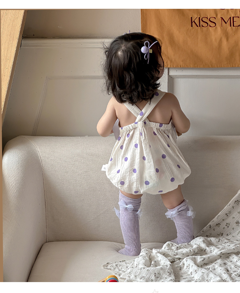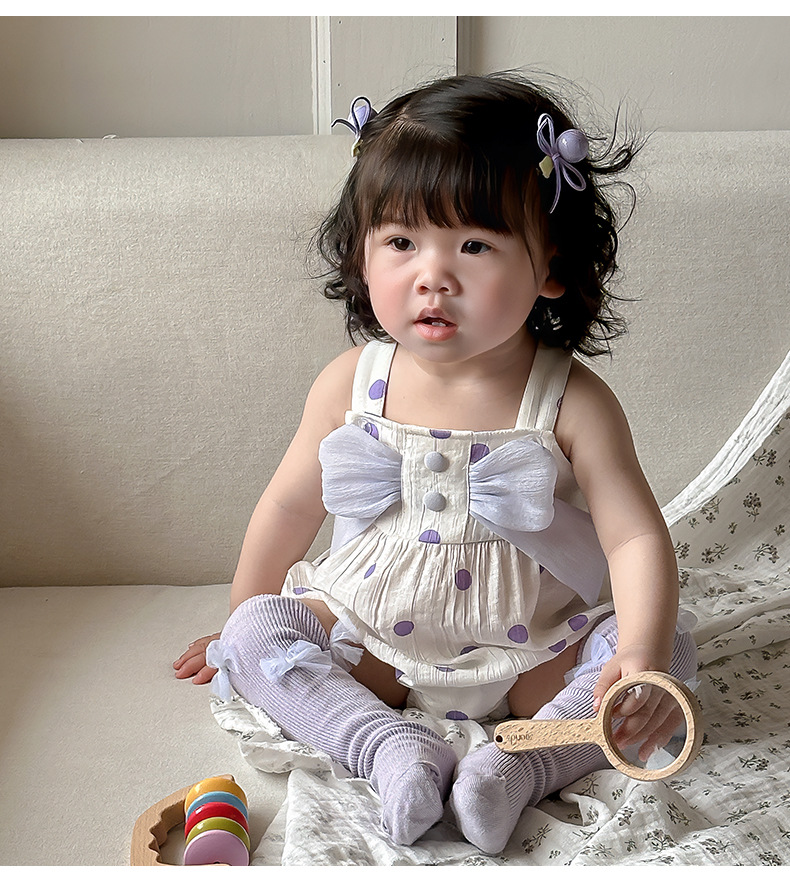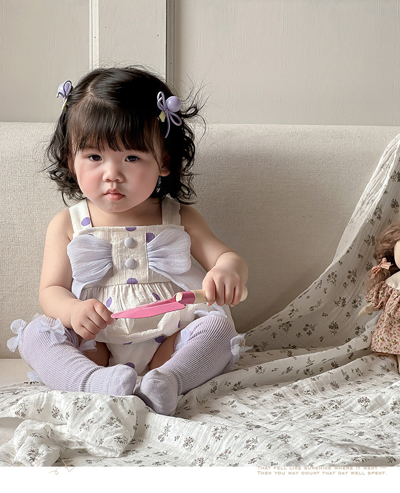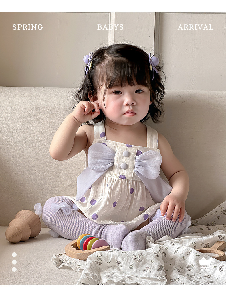 Verano Corea del Sur diseño de nicho ropa para bebés ropa para niños púrpura de alta gama lazo de bebé cabestrillo sin mangas traje de escalada
