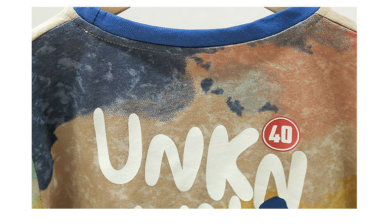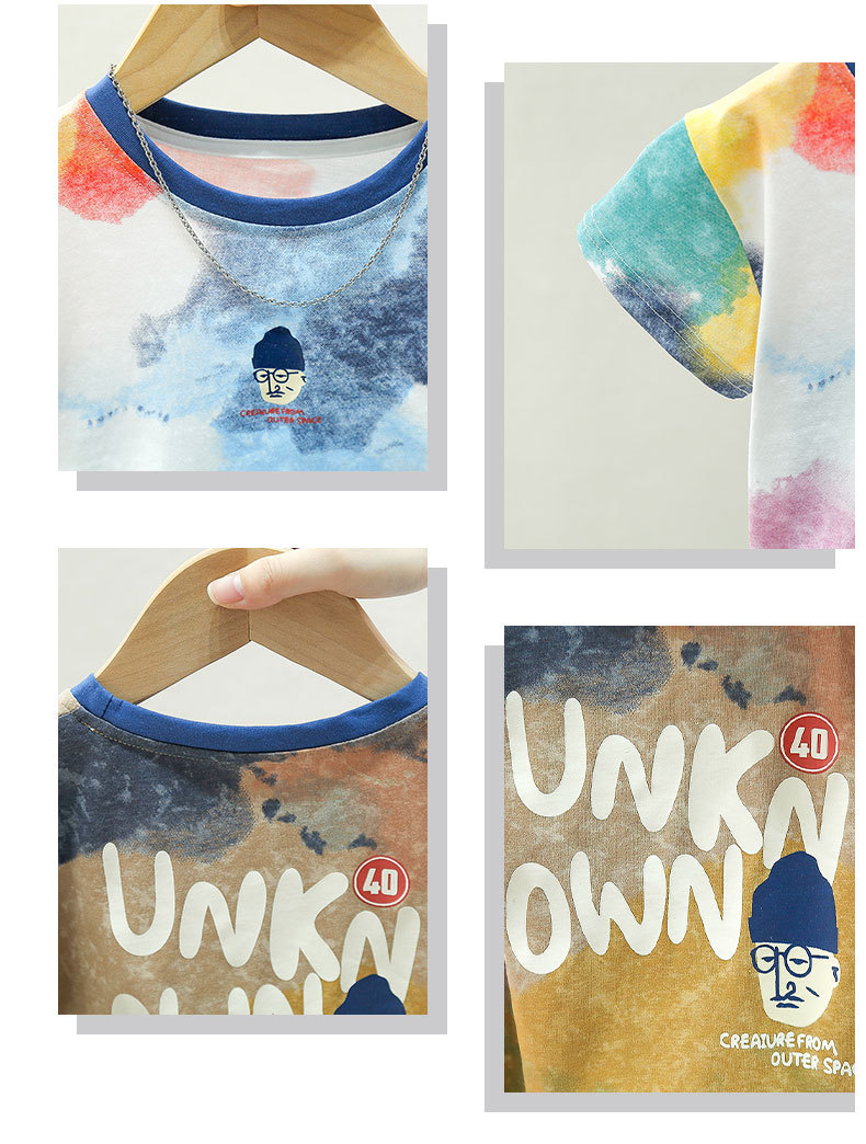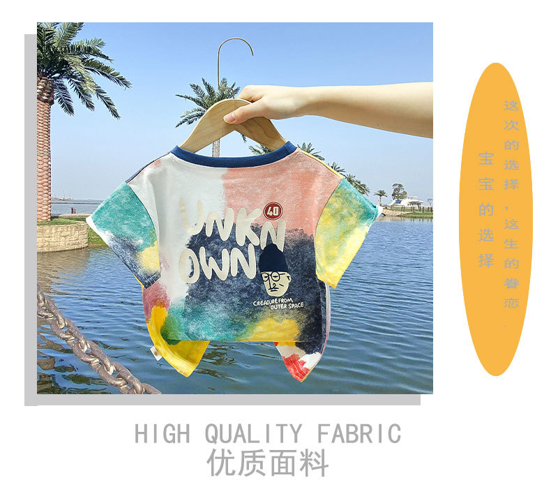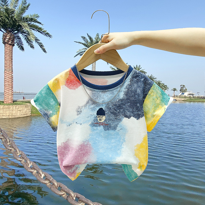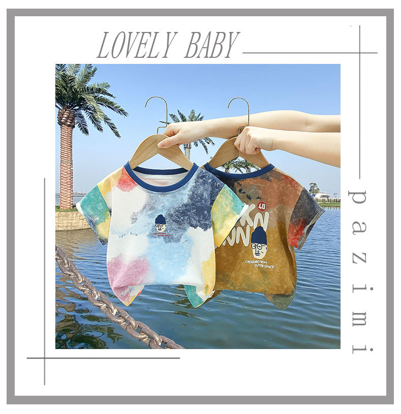 7832 Camiseta de manga corta de verano para niños Nueva versión coreana de la blusa de media manga de teñido anudado para bebés