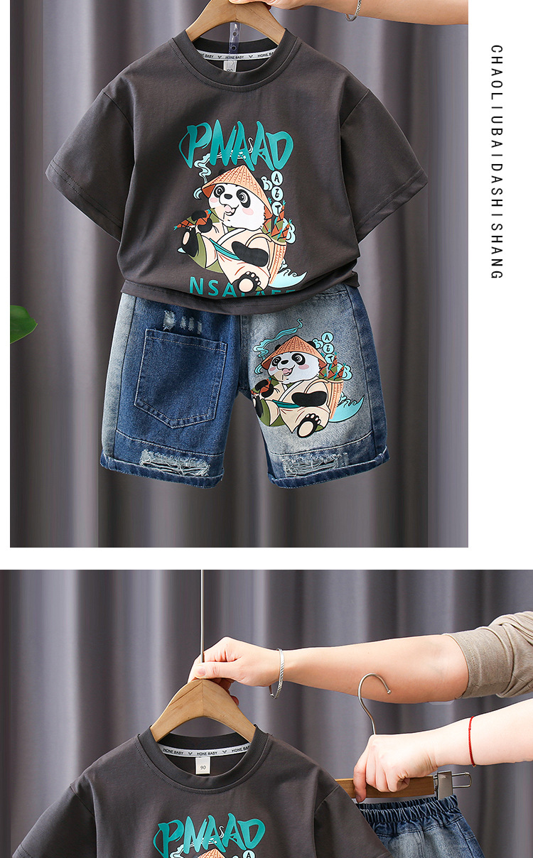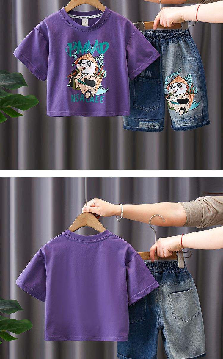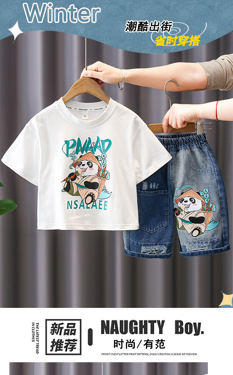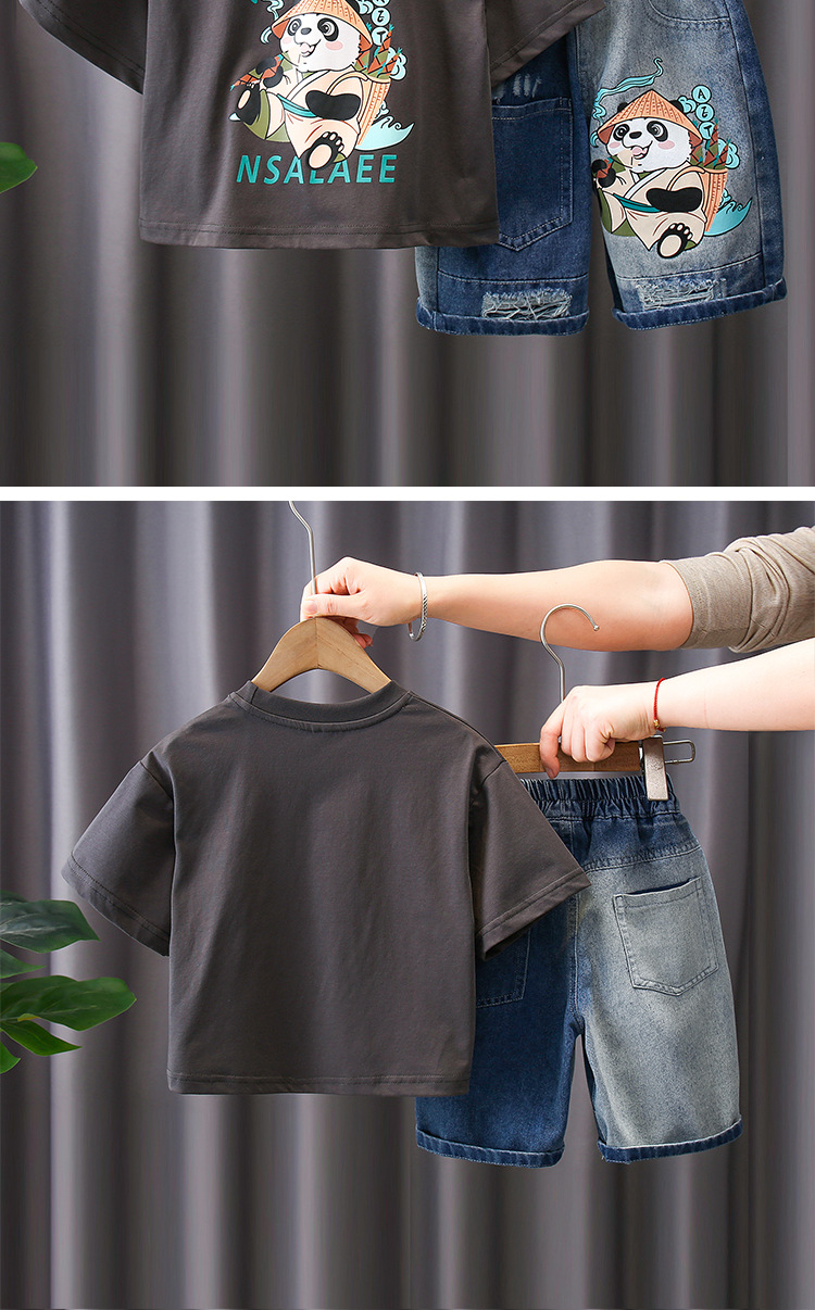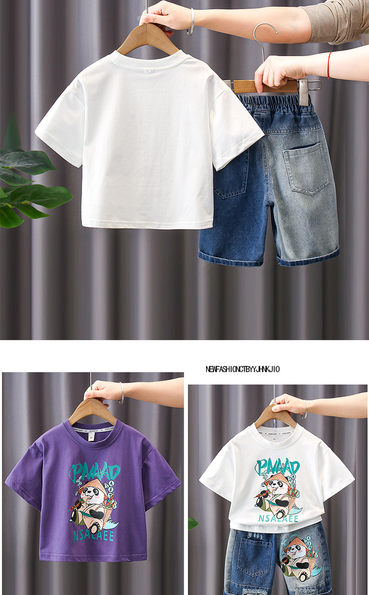 7188 traje de manga corta para niños 2025 verano nuevo estilo camiseta estampada para niños pantalones cortos de mezclilla traje de dos piezas marea de verano
