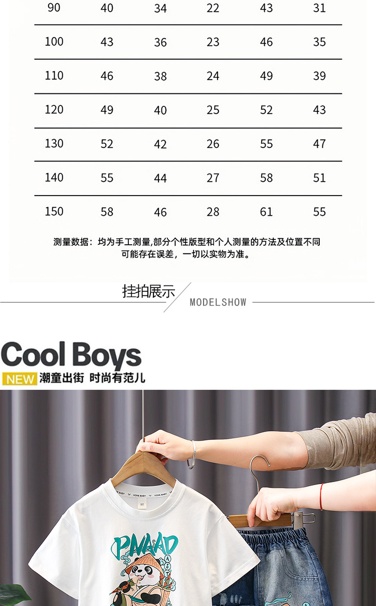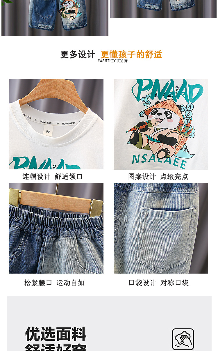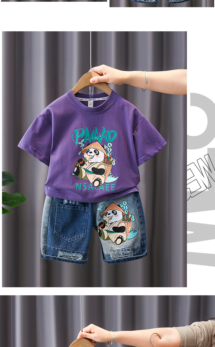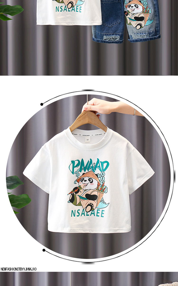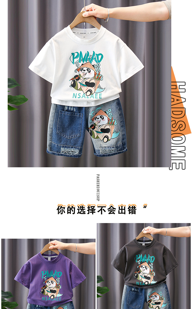 7188 traje de manga corta para niños 2025 verano nuevo estilo camiseta estampada para niños pantalones cortos de mezclilla traje de dos piezas marea de verano