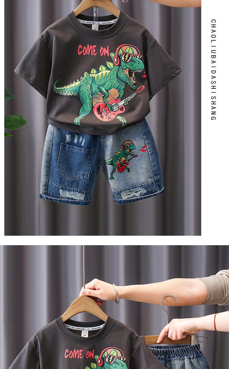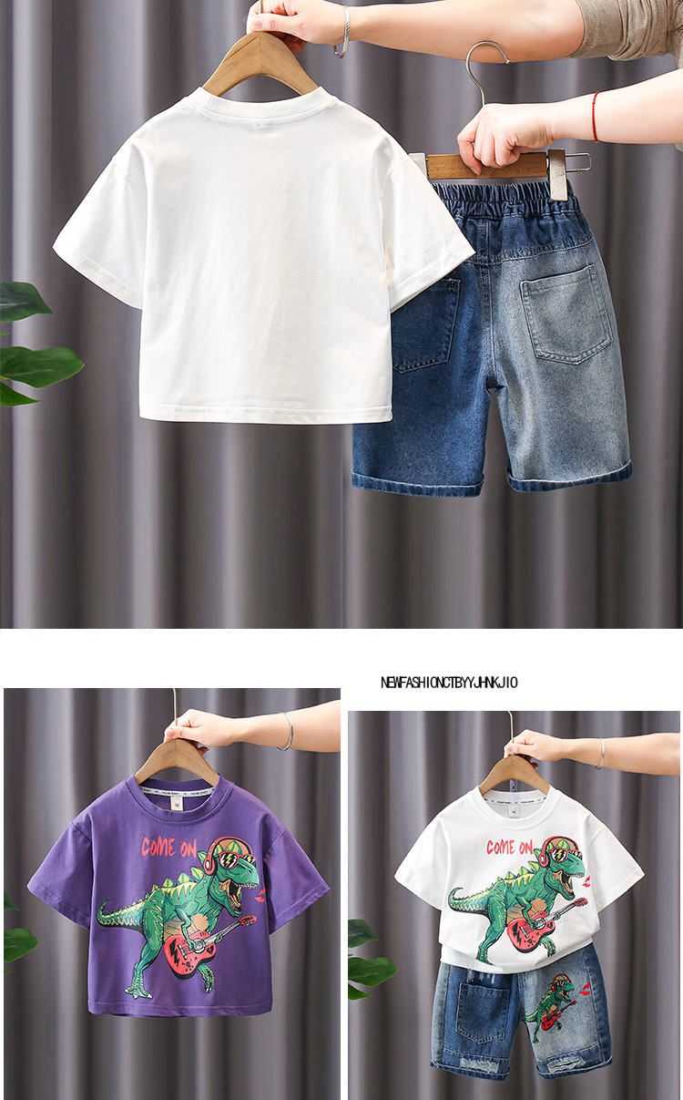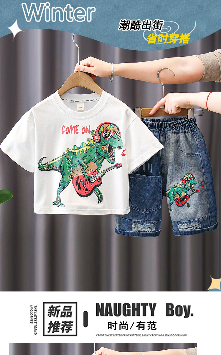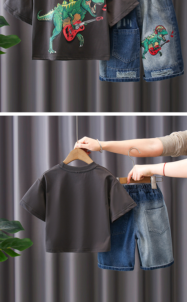 7187 Traje de verano para niños Pantalones cortos de mezclilla de manga corta con estampado de letras para niños Traje de dos piezas Moda de verano para bebés