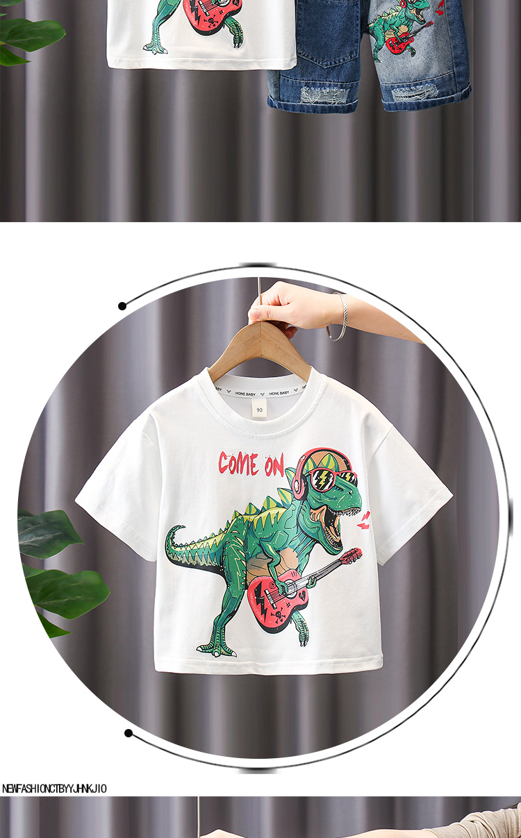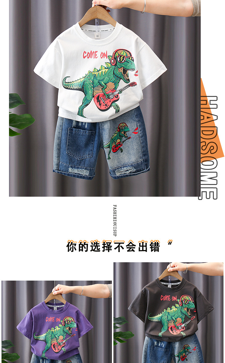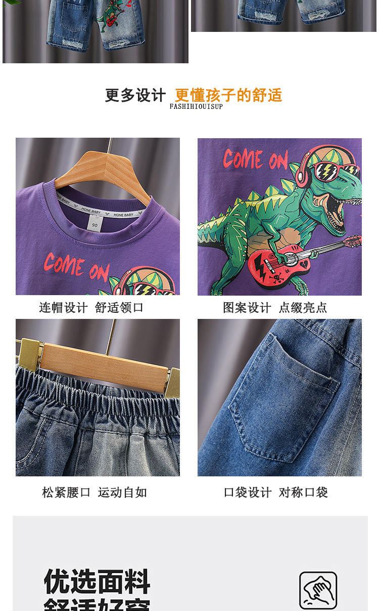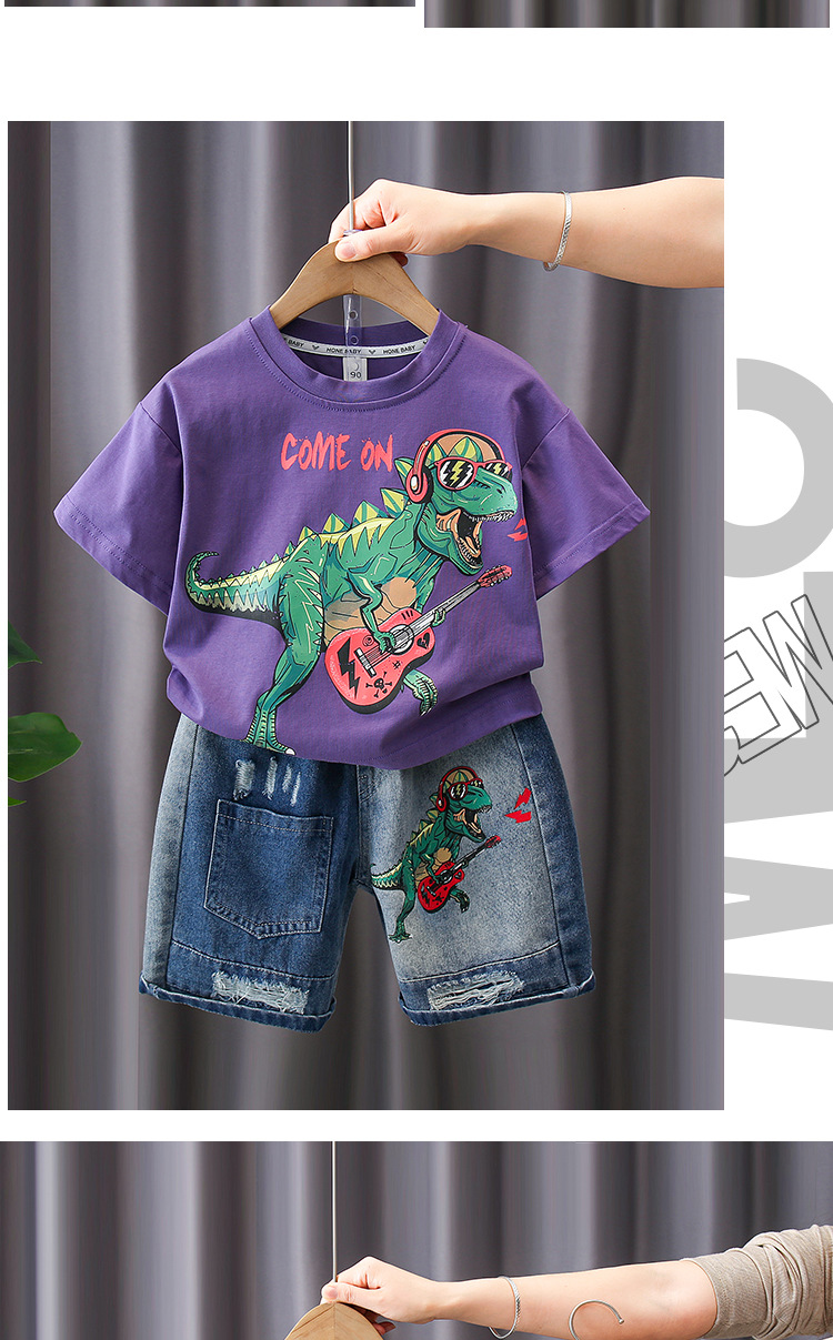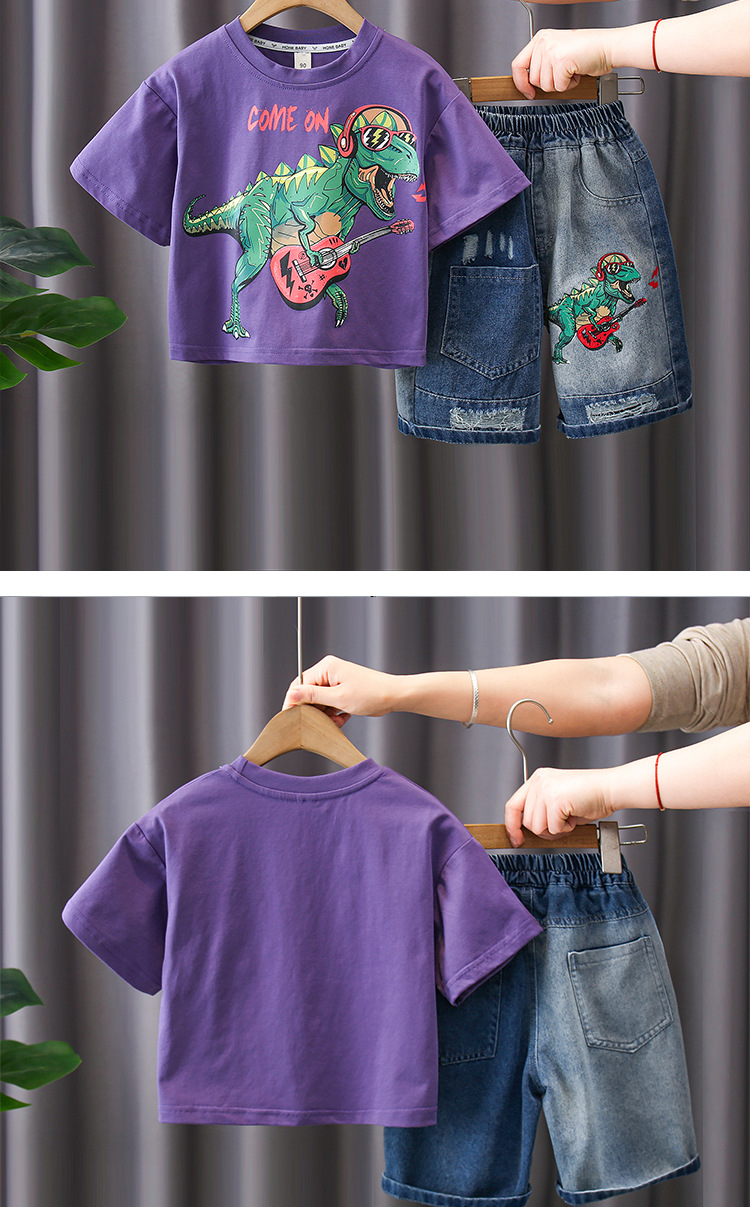 7187 Traje de verano para niños Pantalones cortos de mezclilla de manga corta con estampado de letras para niños Traje de dos piezas Moda de verano para bebés