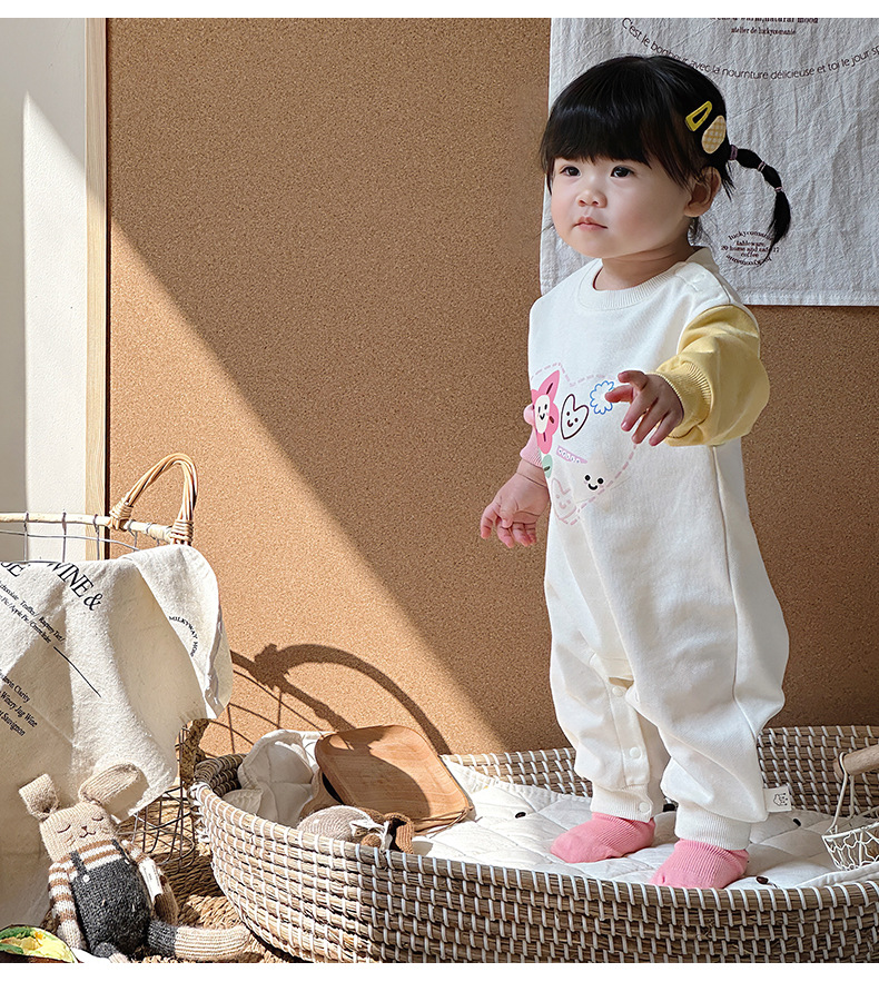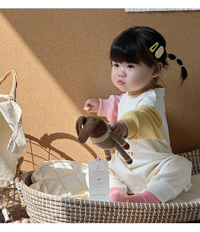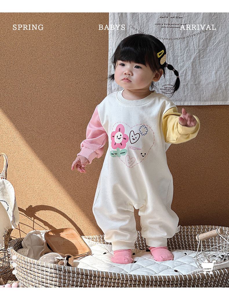 2024 primavera nuevo producto ropa de bebé estilo coreano recién nacido traje de escalada de bebé lindo estampado de dibujos animados mono de manga larga