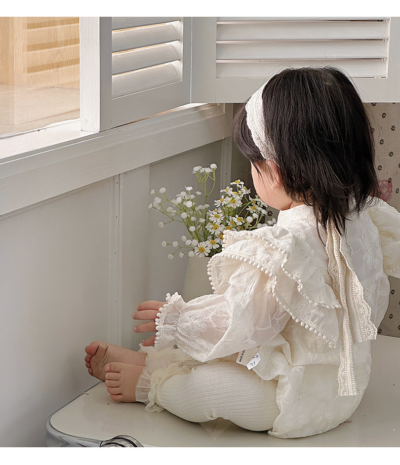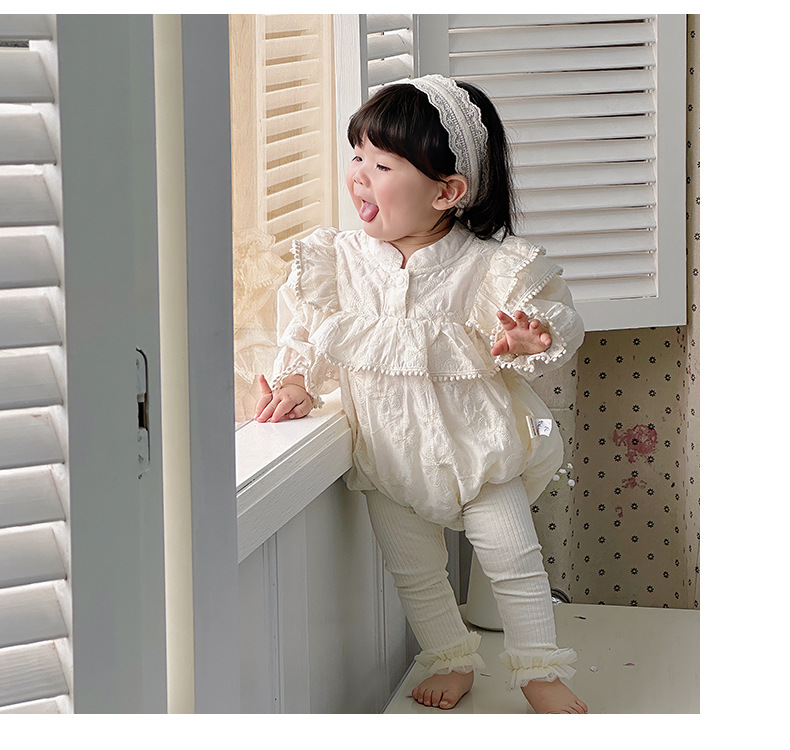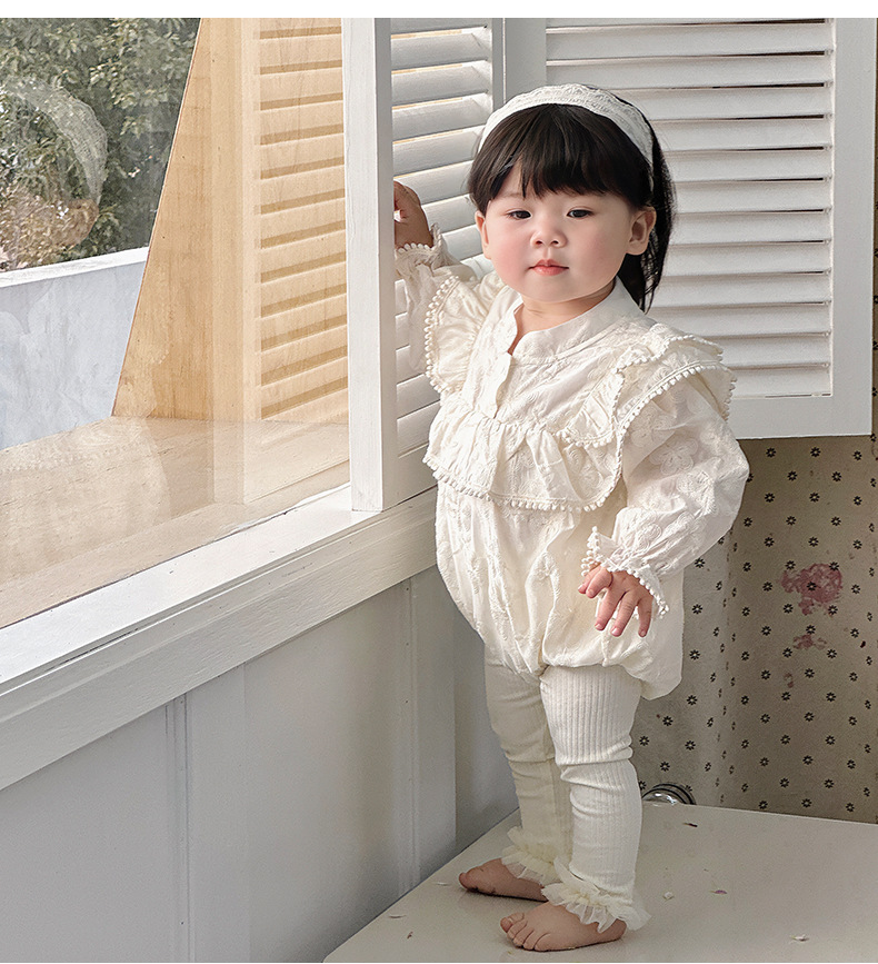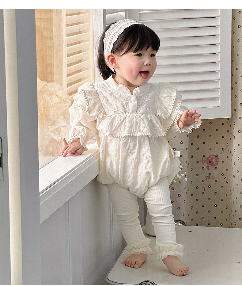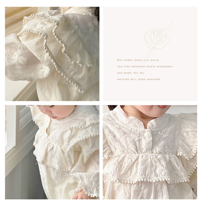 INS 2024 primavera niña bebé cien días princesa mameluco vestido de manga voladora de encaje niña bebé abrigo de manga larga