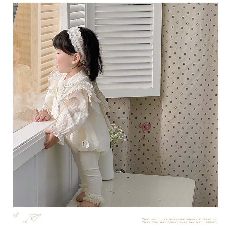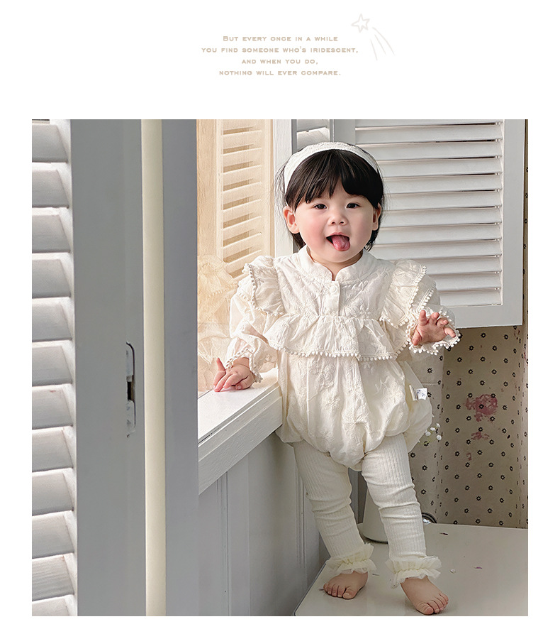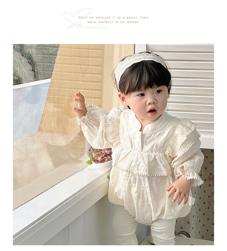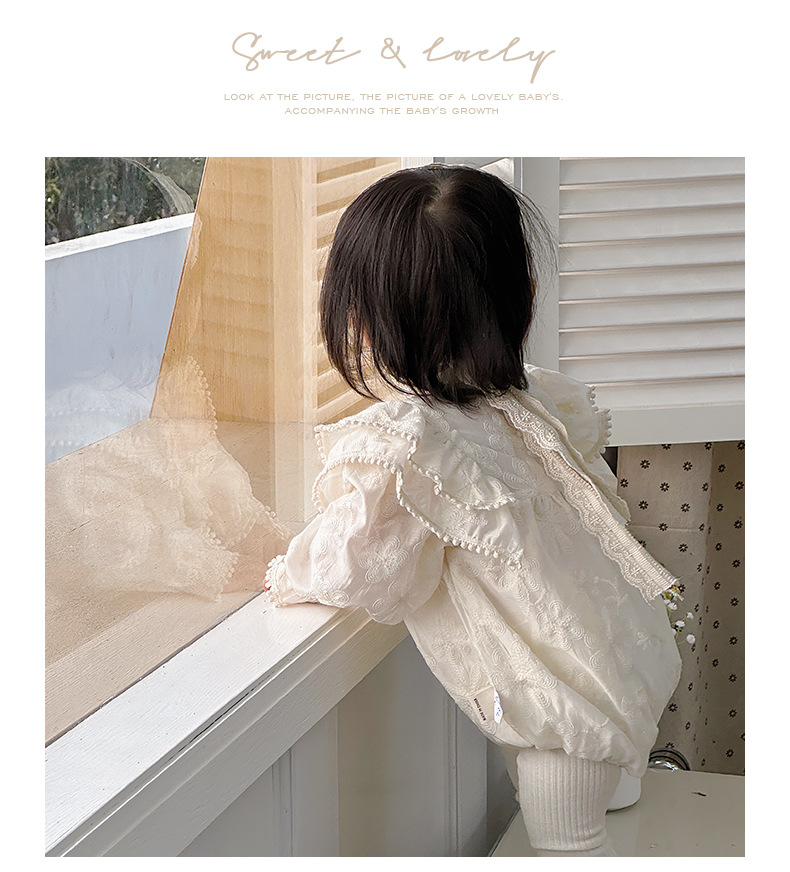 INS 2024 primavera niña bebé cien días princesa mameluco vestido de manga voladora de encaje niña bebé abrigo de manga larga