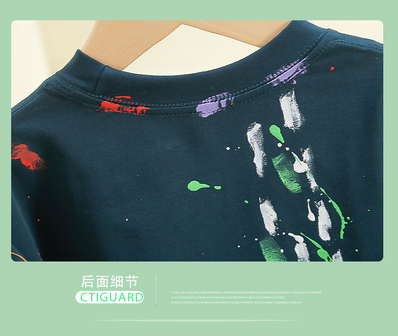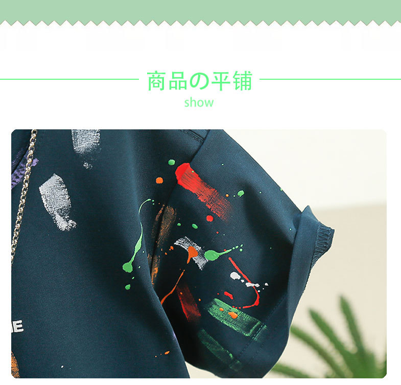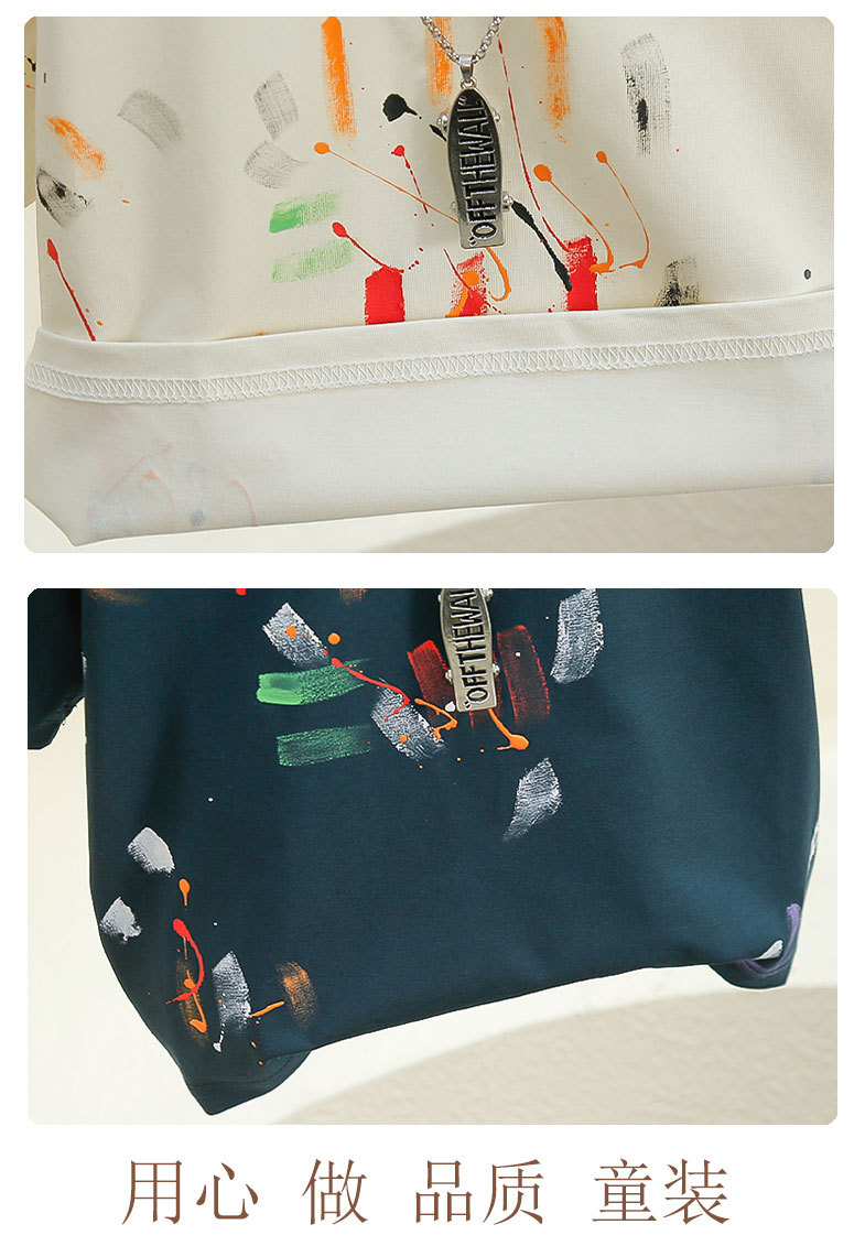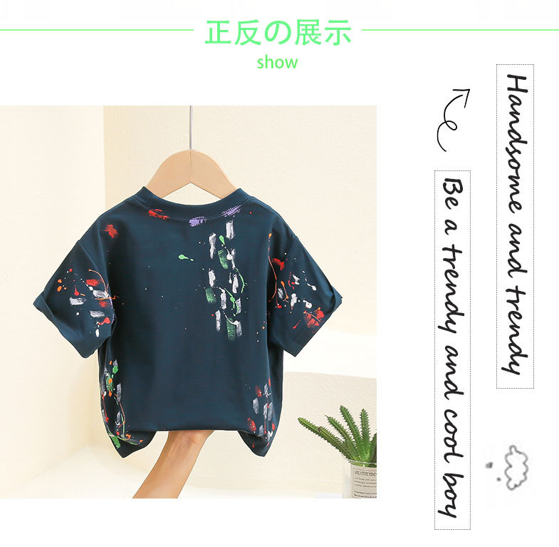 7834 Camiseta de manga corta de verano para niños 2025 nuevo estilo estilo occidental chico guapo vestido de media manga pintado a mano ropa de bebé