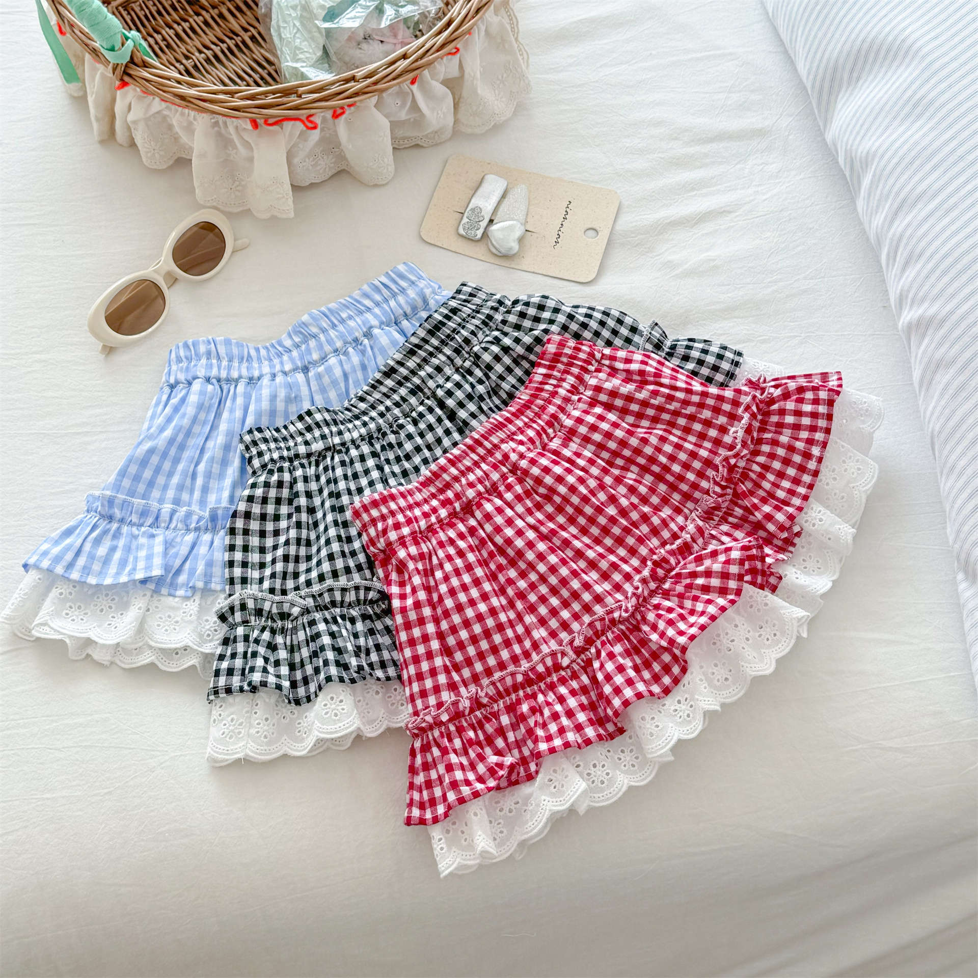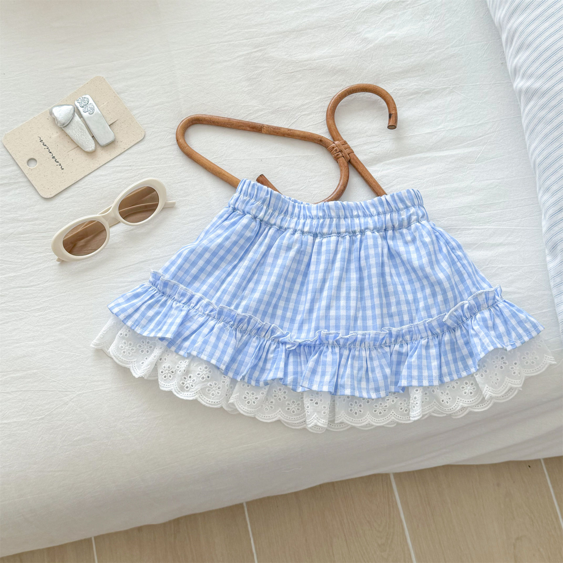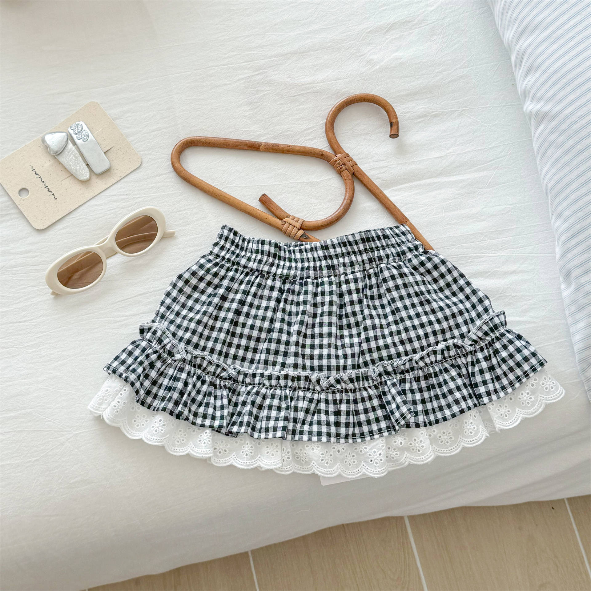Xianning siete ropa para niños falda corta para niñas 25 verano nuevo estilo estilo occidental bebé falda de pastel a cuadros única y hermosa