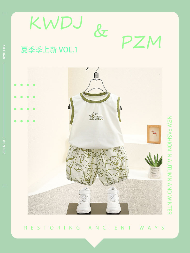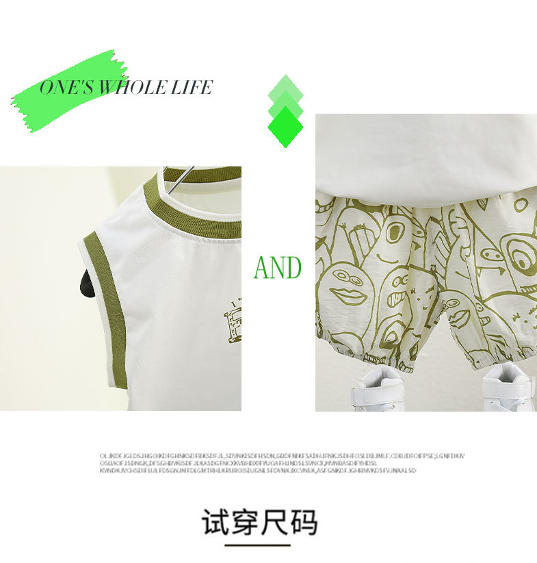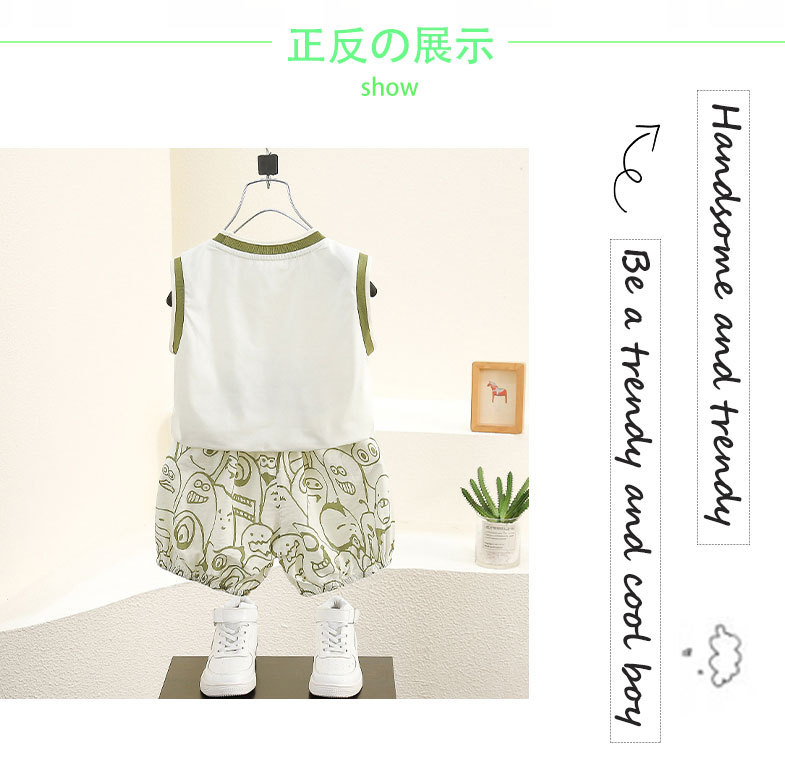 7808 traje de chaleco de verano para niños 2025 nuevo estilo estilo occidental moda para niños casual pantalones cortos de dibujos animados para bebés delgados