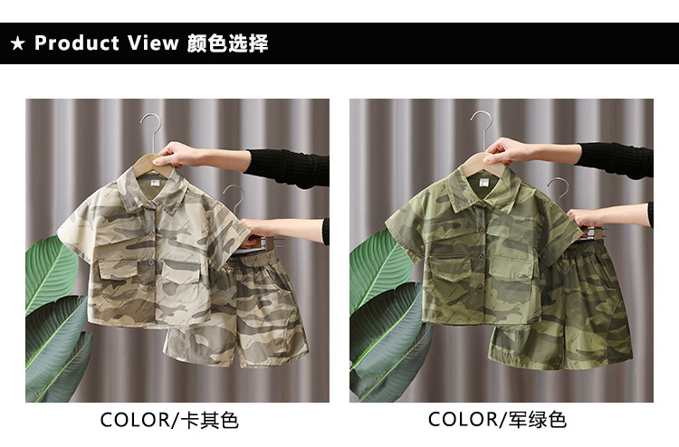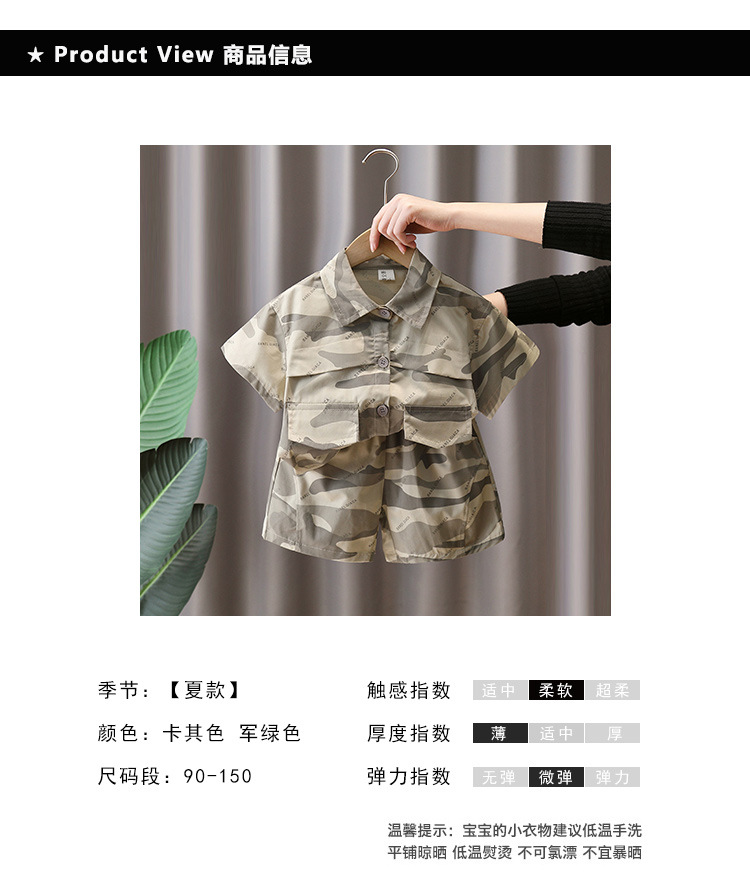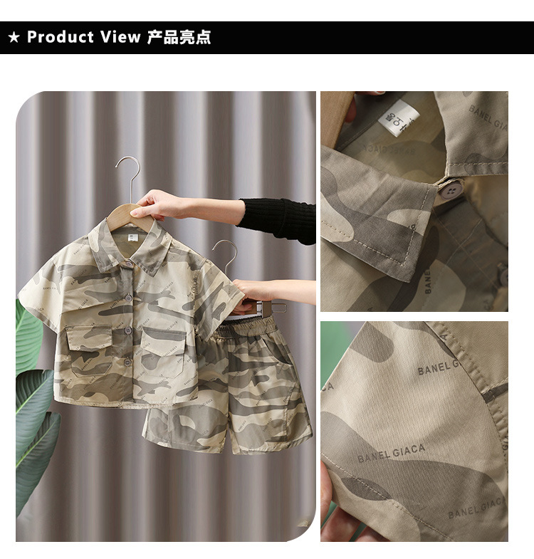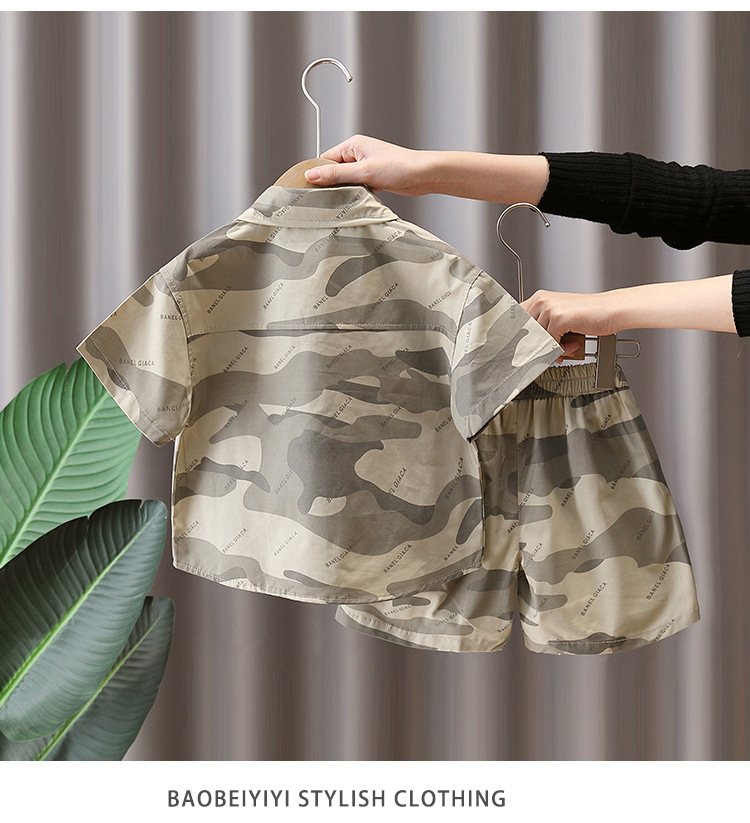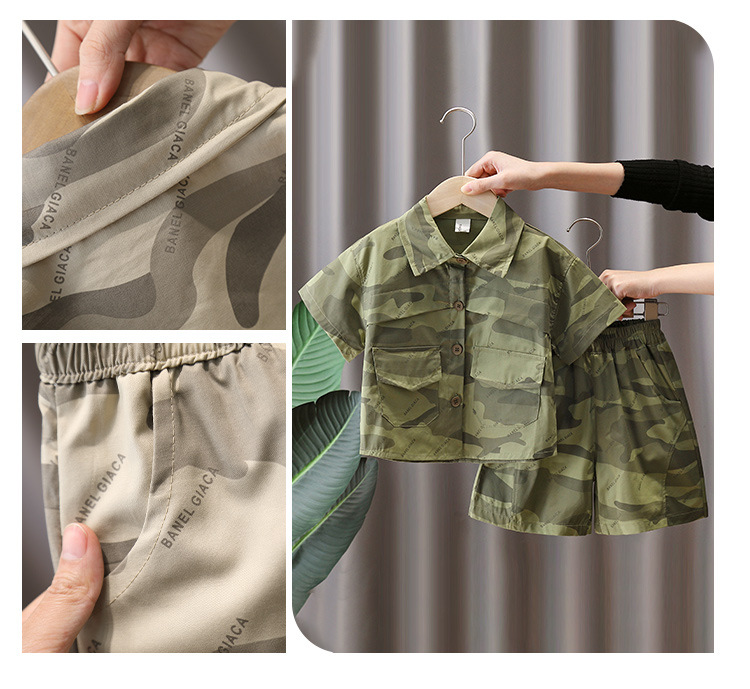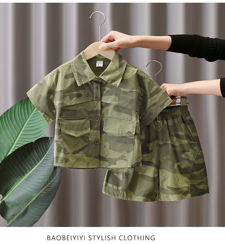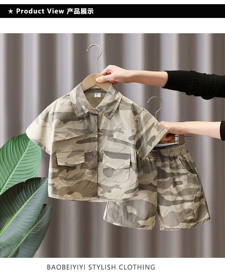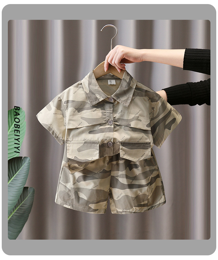 7179 Traje de camuflaje para niños 2025 nueva ropa de verano para niños, camisa de manga corta de moda fresca de verano de dos piezas