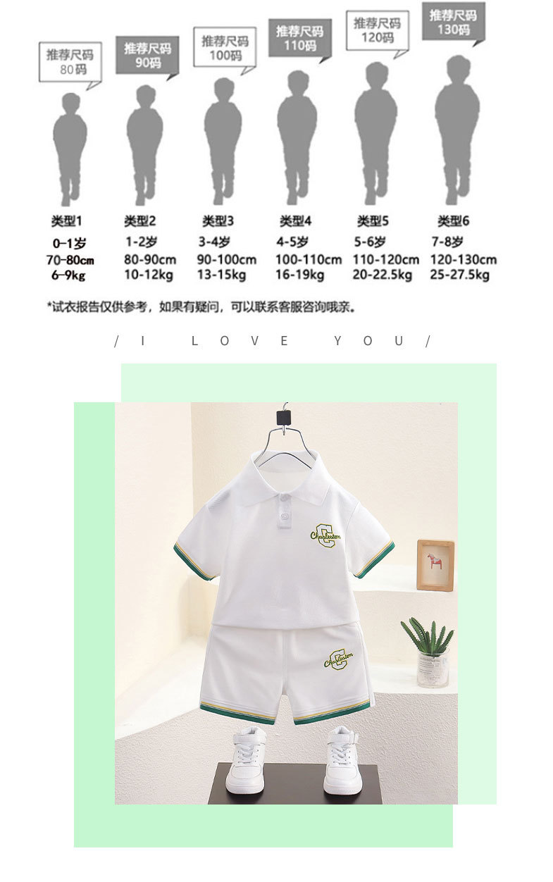 7826 traje de polo de verano para niños nuevo estilo deportes y ocio para niños pantalones cortos blancos de manga corta traje de dos piezas para bebés