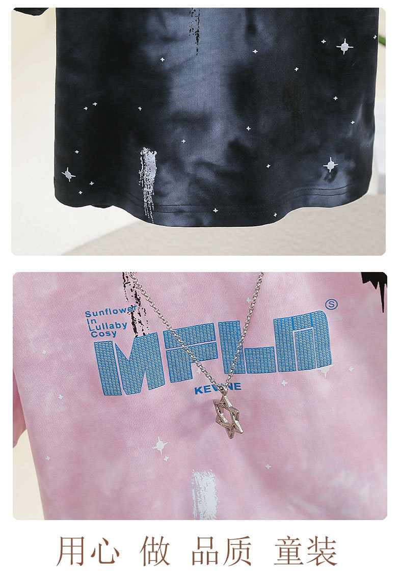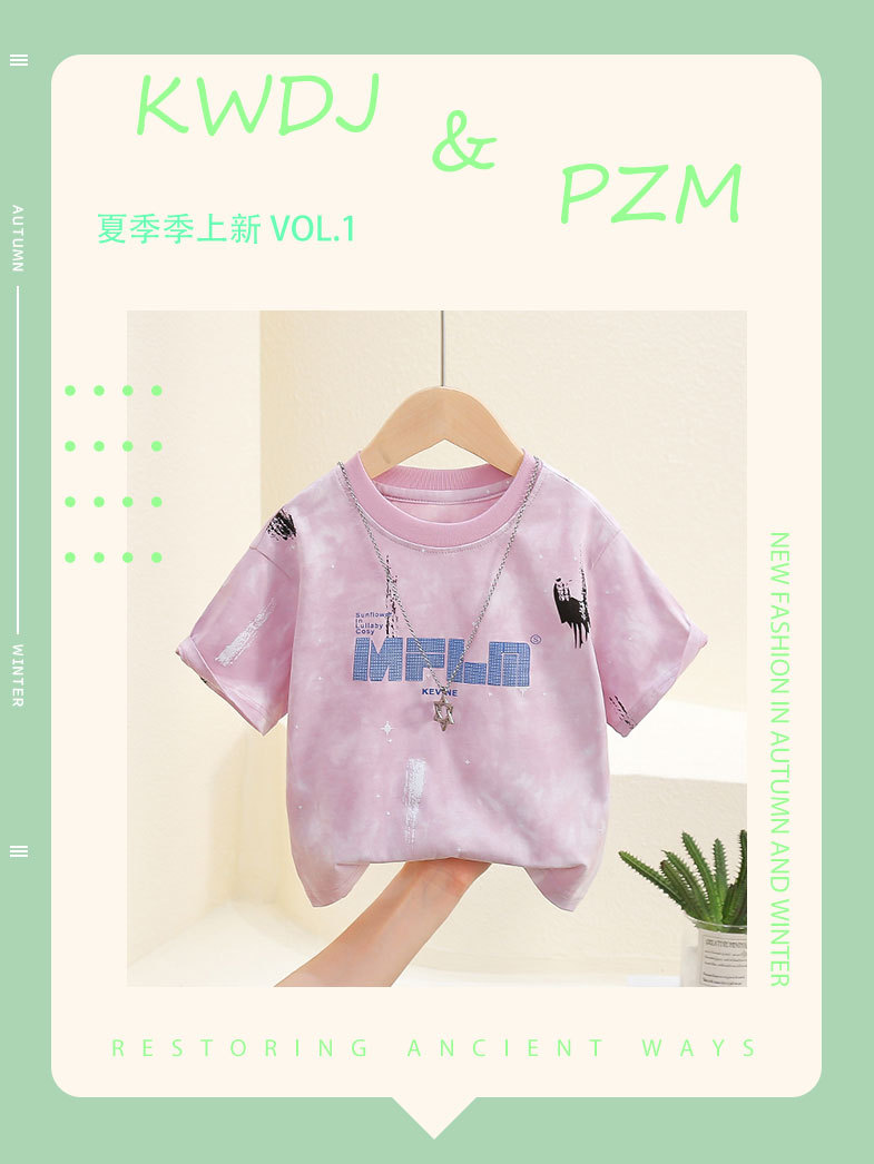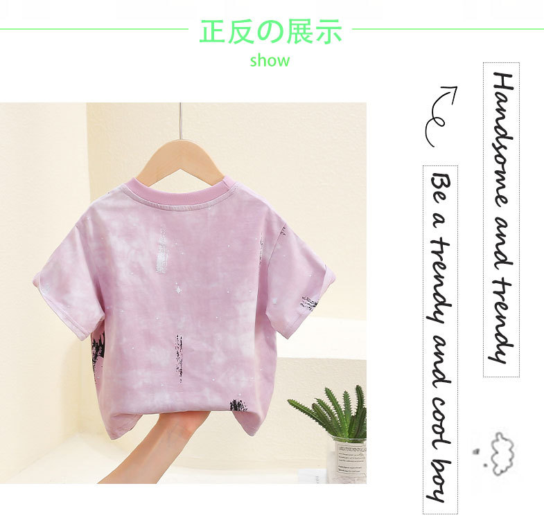 7821 Camiseta de manga corta de verano para niños 2025 nuevo estilo estilo occidental chico guapo rosa tie-dye media manga t top bebé