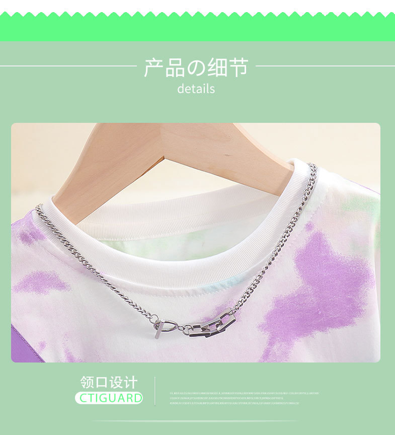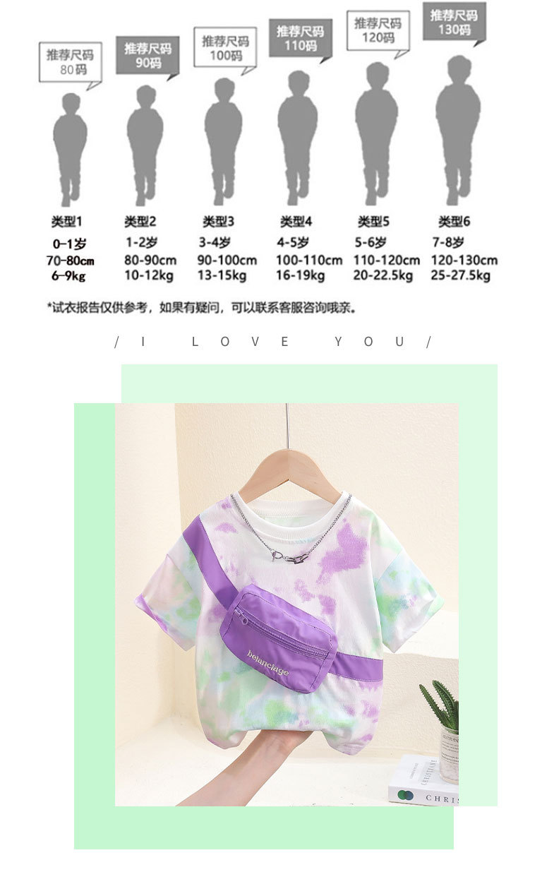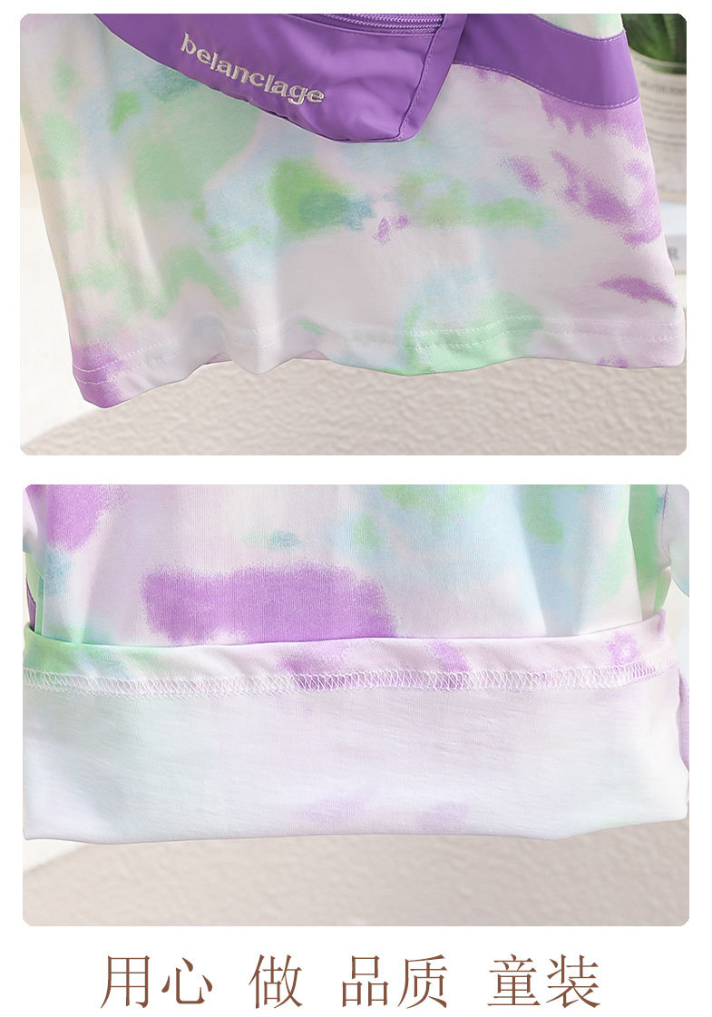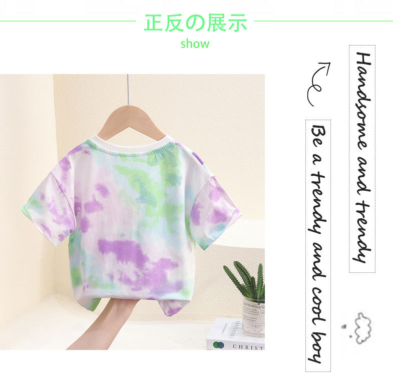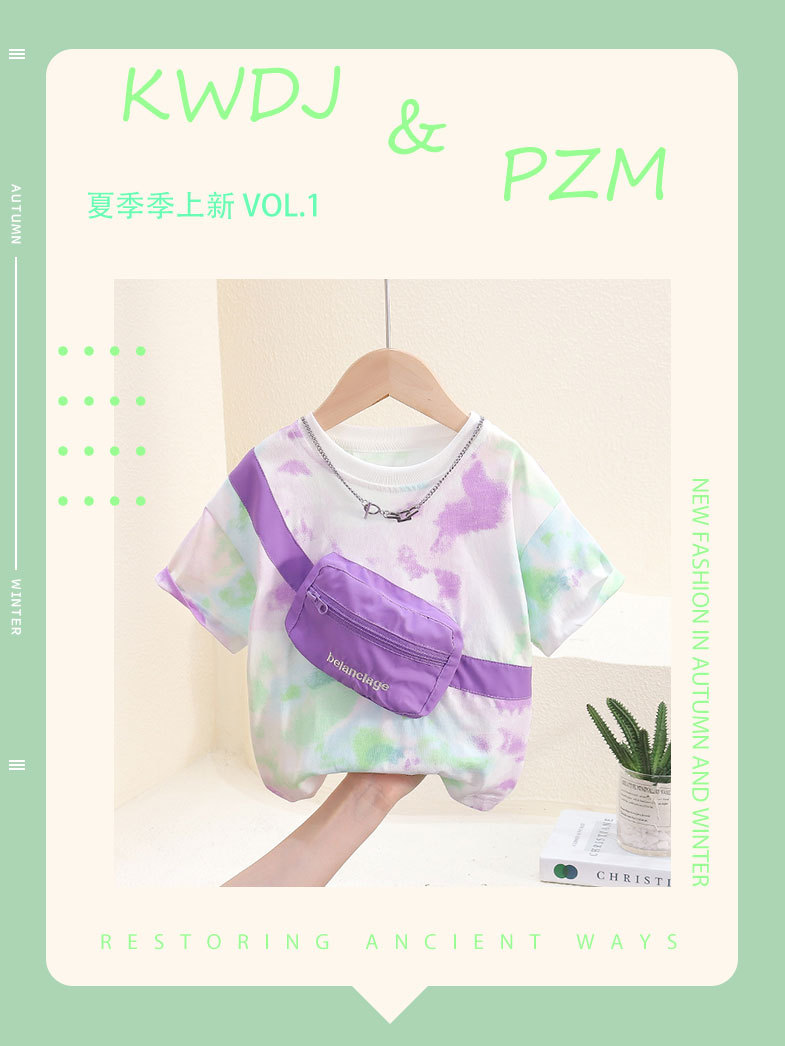 7817 Camiseta de manga corta de verano para niños nuevo estilo, bolso de hombro con personalidad guapo, top de media manga teñido anudado, vestido de verano para bebés