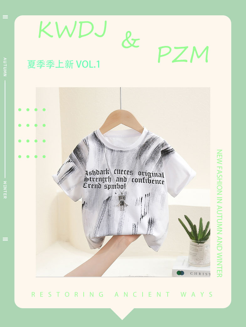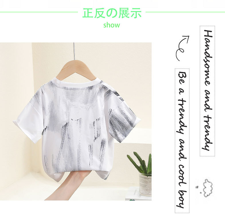 7907 camiseta de manga corta para niños verano chico fresco y guapo calle frita media manga camiseta 2024 nuevo top de verano para bebé
