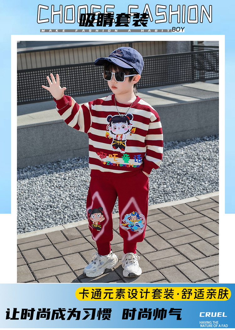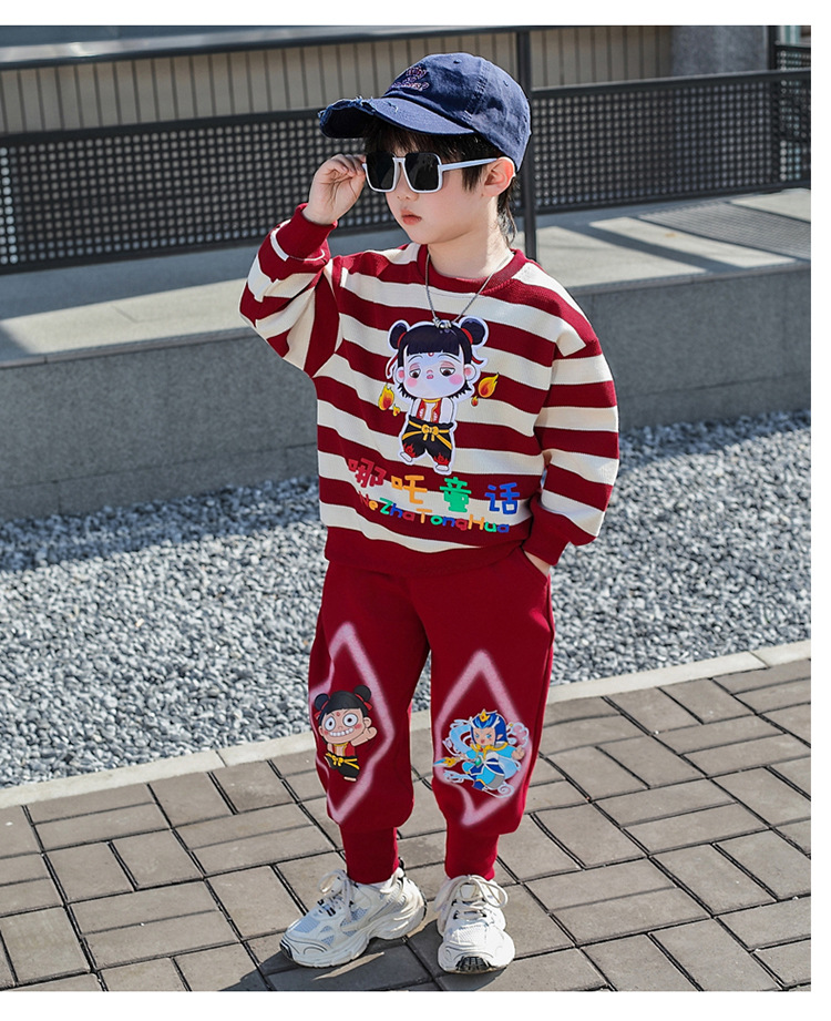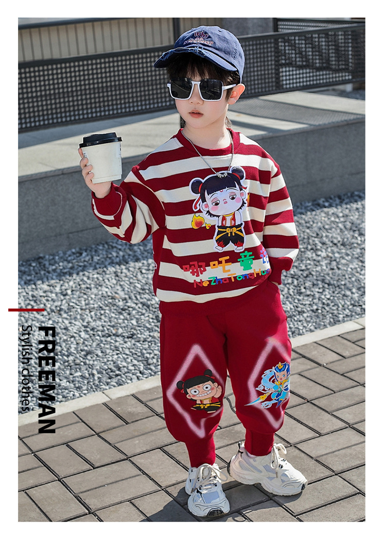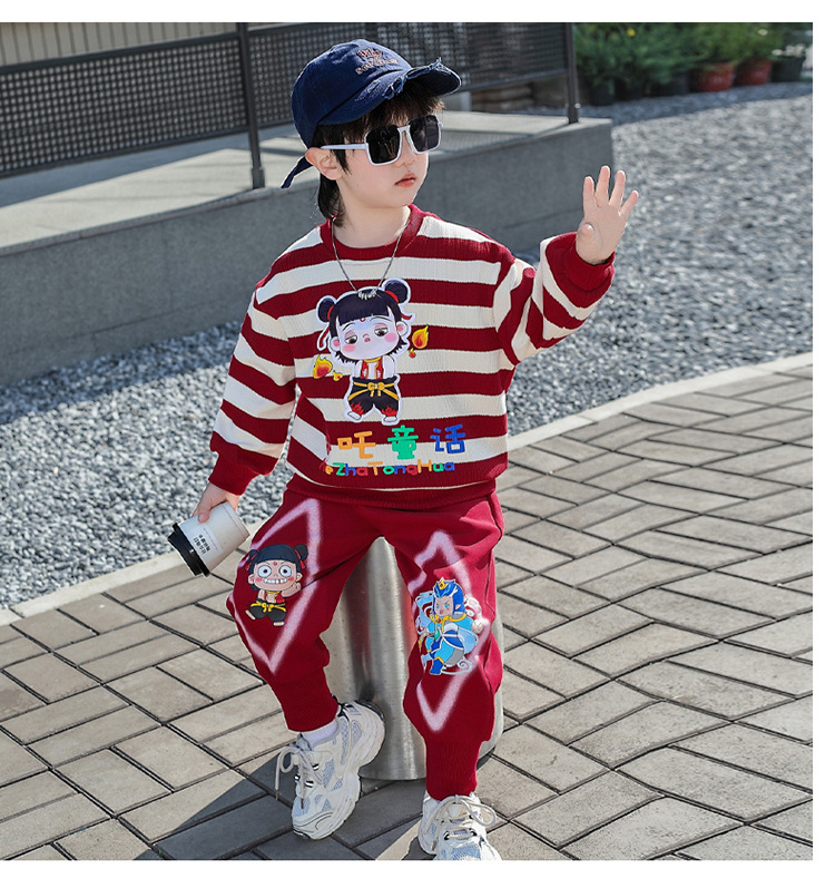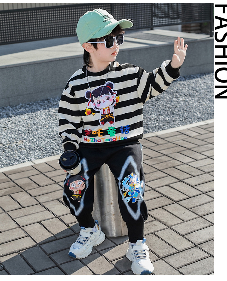 7852 traje de dos piezas para niñas traje de impresión de dibujos animados de estilo occidental de otoño para niños 2025 nuevo suéter para niños