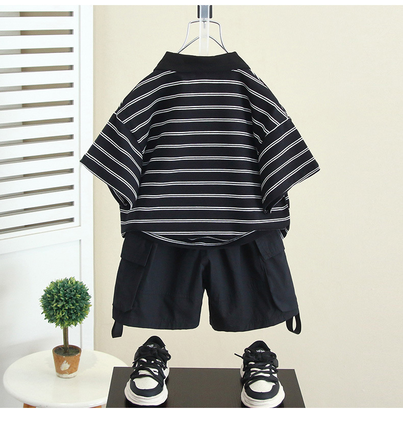 7153 Traje de manga corta con estampado para niños 2025 verano nuevo traje para niños bebé verano polo camisa de dos piezas marea