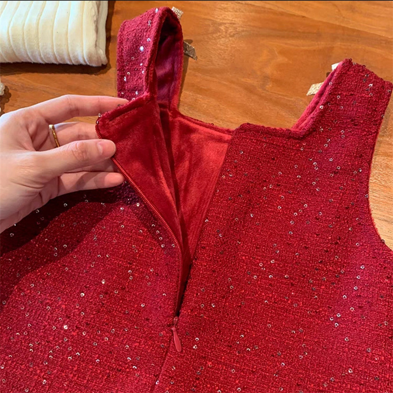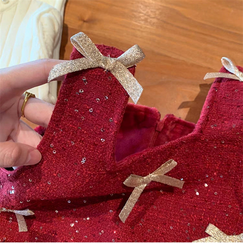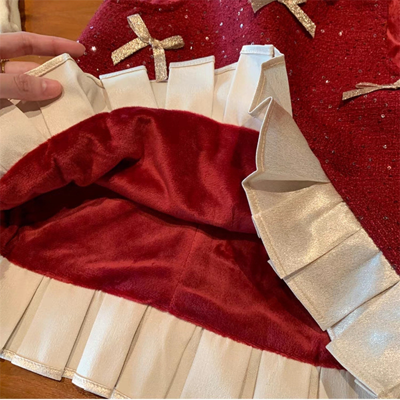 Vestido de Niña Dulce para Otoño e Invierno, Nuevo Estilo, Forrado de Felpa, Rojo, Ropa de Invierno para Niños, Vestido de Cumpleaños, Vestido de Princesa