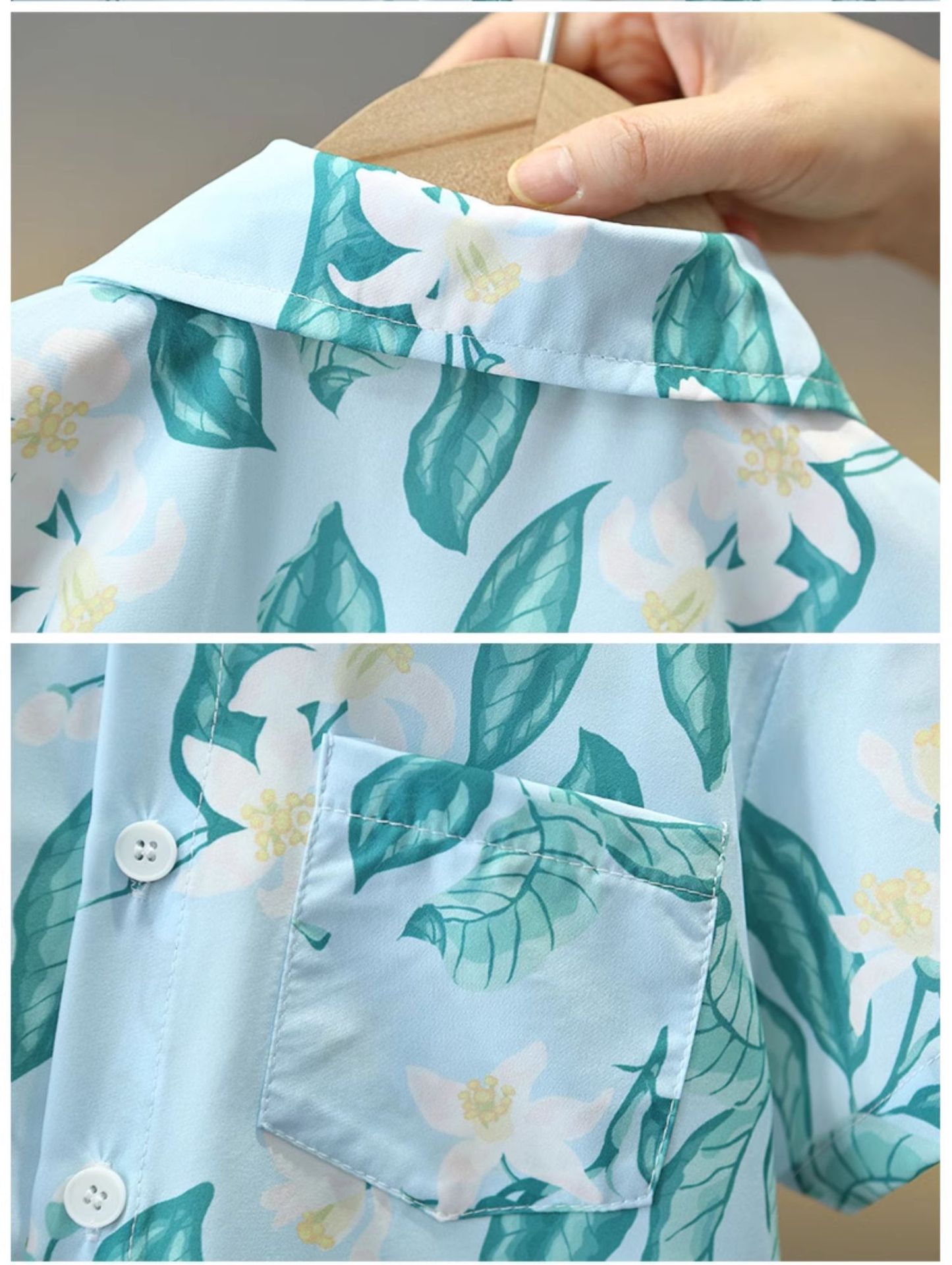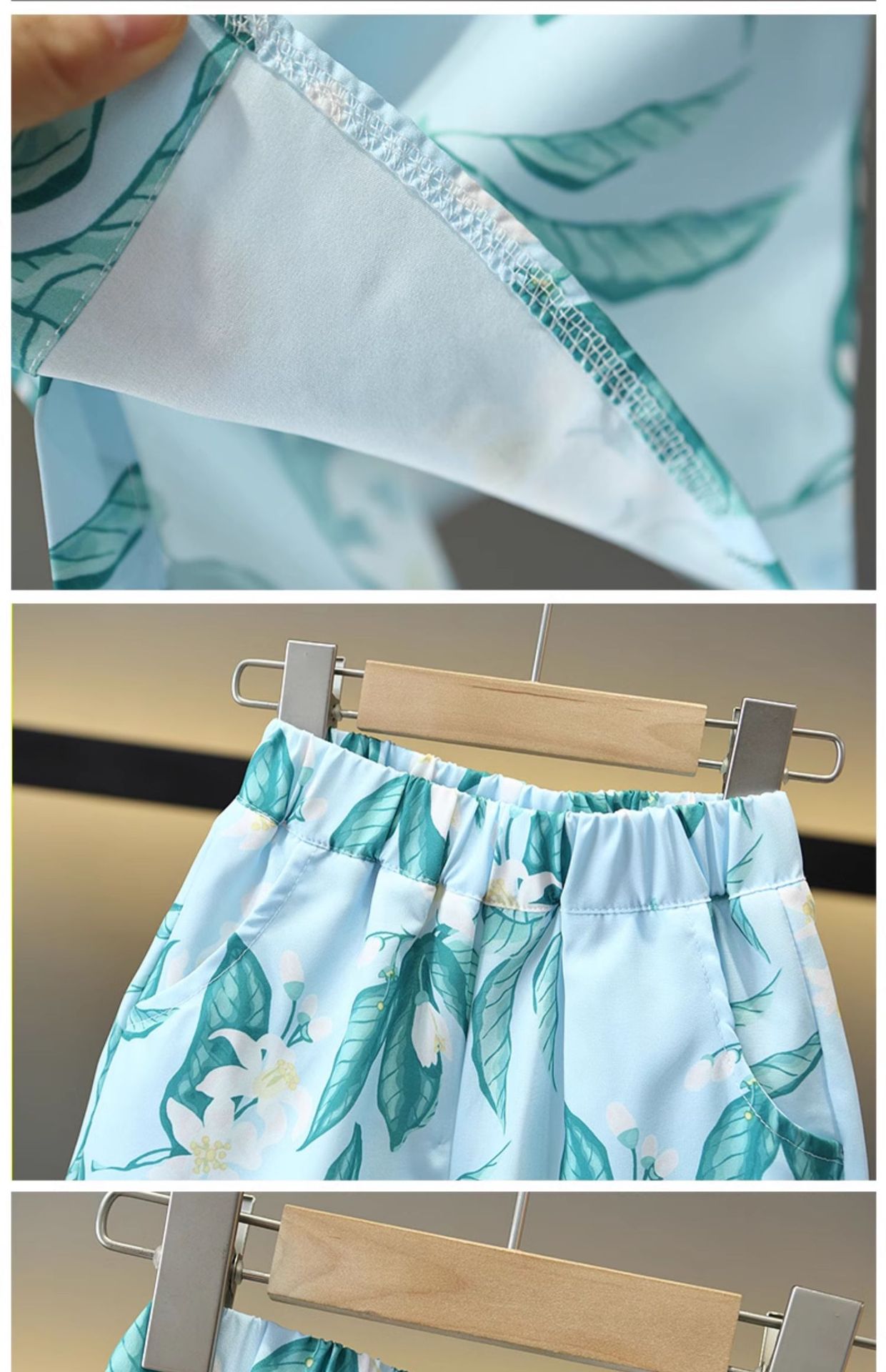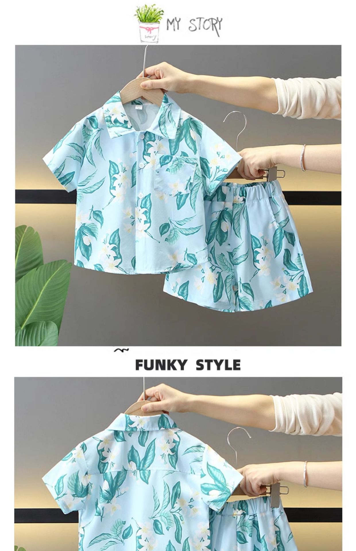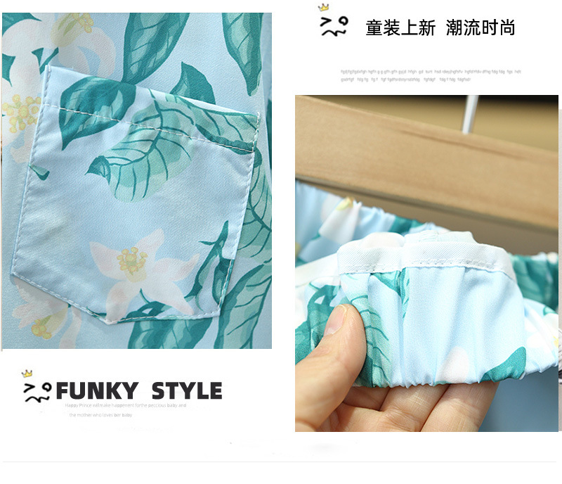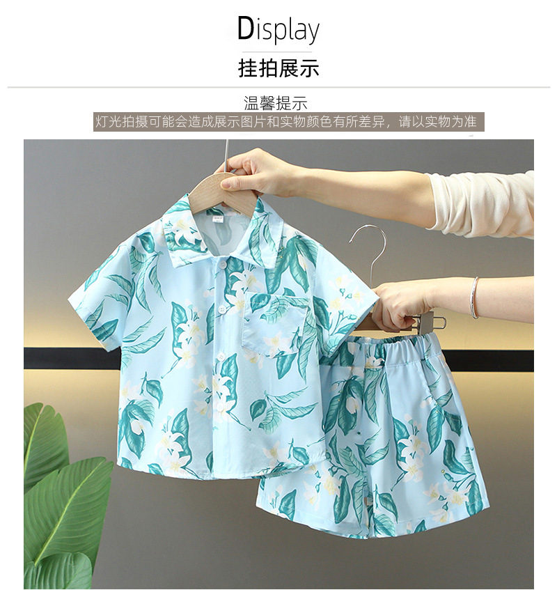 7858 traje de verano para niños 2025 nueva camisa de manga corta para niños de dos piezas ropa de estilo de playa de verano para bebés
