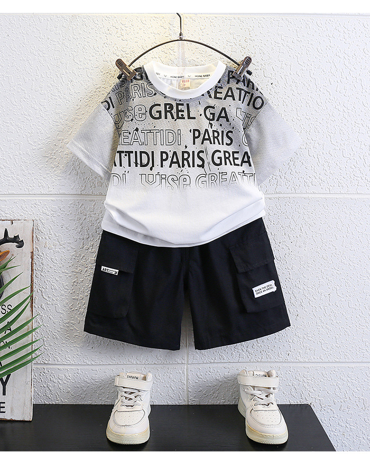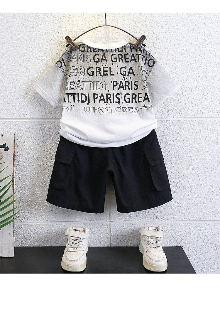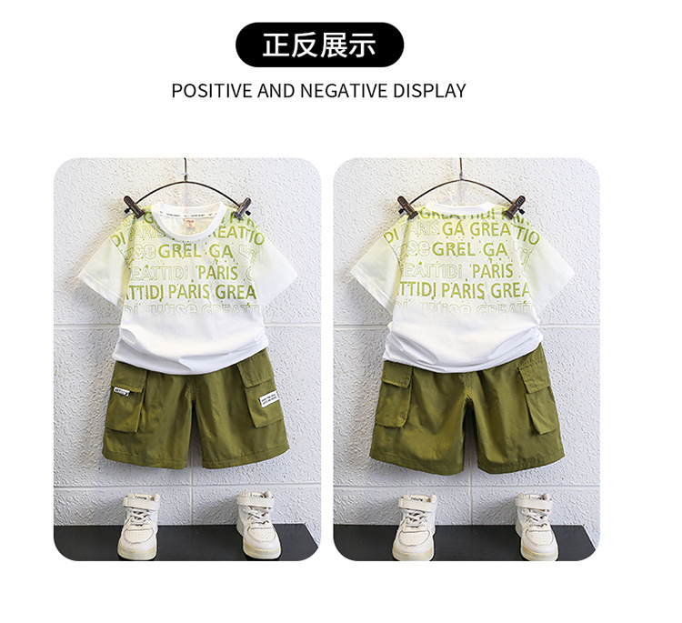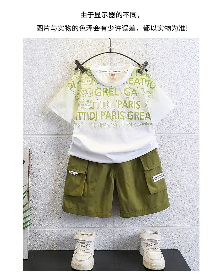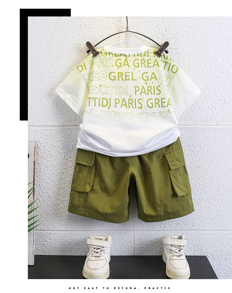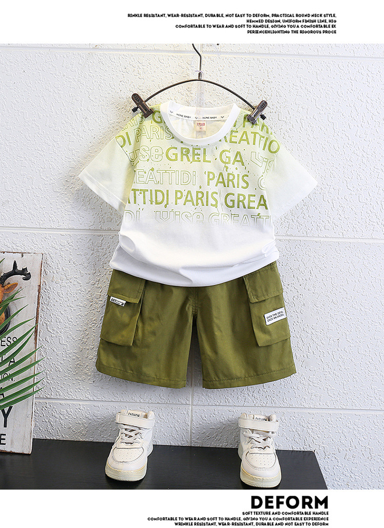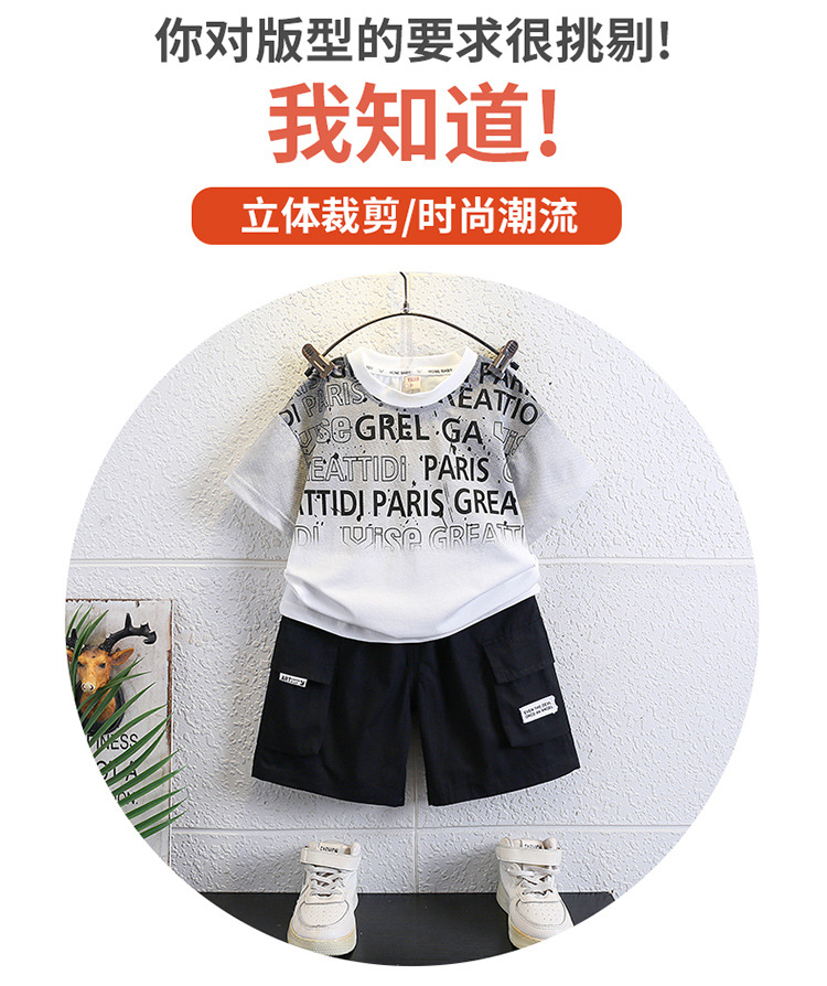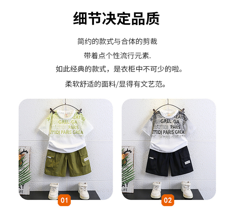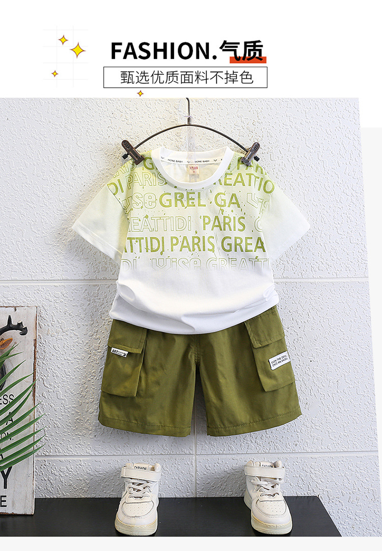 7147 Traje de verano para niños Traje de dos piezas de verano para niños de manga corta casual de Internet rojo bebé de moda de moda nueva 2025