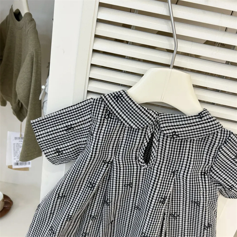 Niñas de verano nuevo vestido de estilo coreano para niños Mori muñeca cuello de arco impresa cuadrada vestido de princesa de manga corta